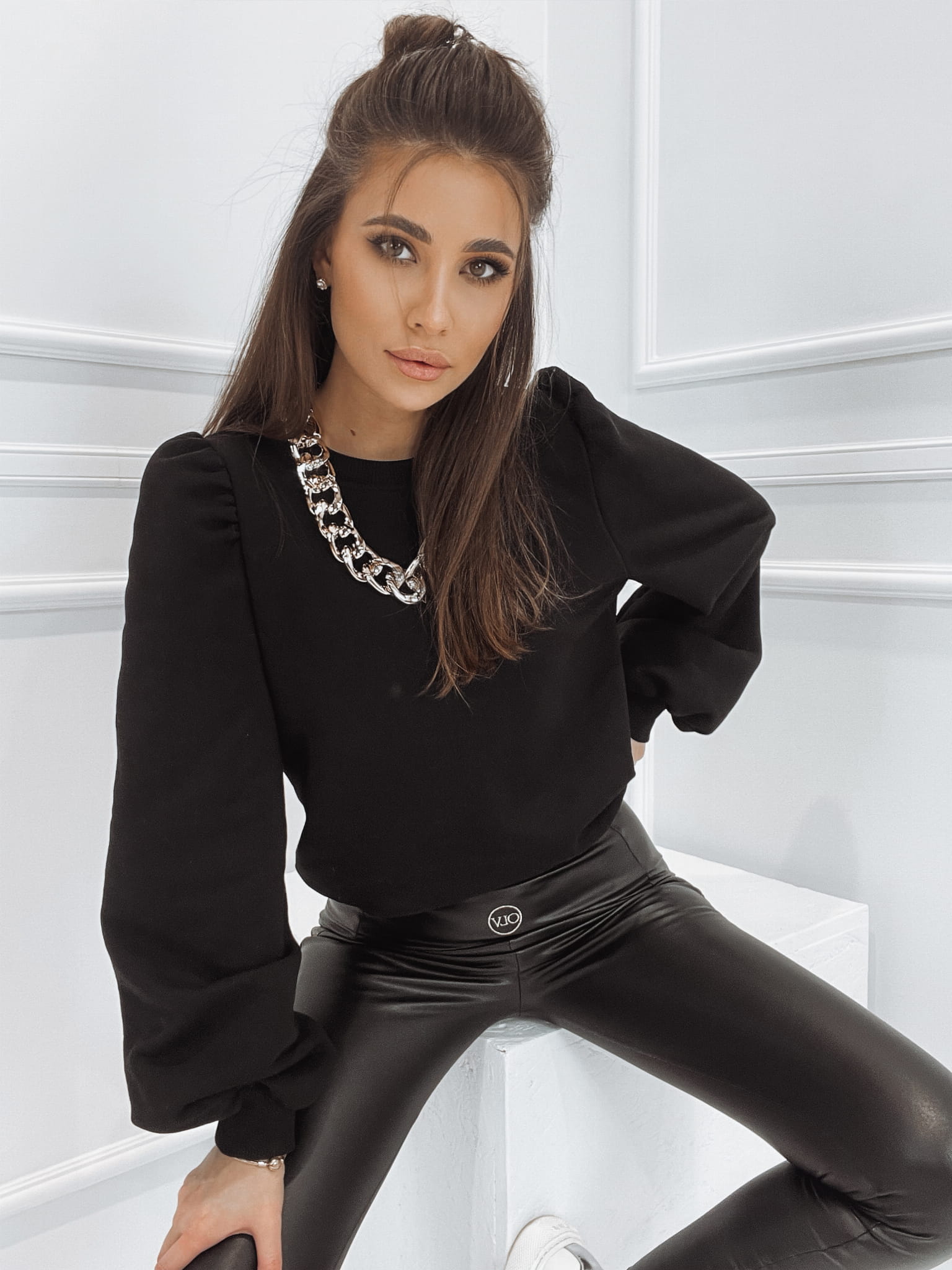 Elegancka bluza „CHAIN” wykonana z wysokiej jakości materiału. Pojawi się w szerokiej gamie kolorów. Dodatkowym atutem jest złoty masywny naszyjnik, który dodaje blasku i elegancji. Oversizowy krój i ozdobne bufiaste rękawki sprawią, że poczujecie się w niej elegancko i komfortowo.