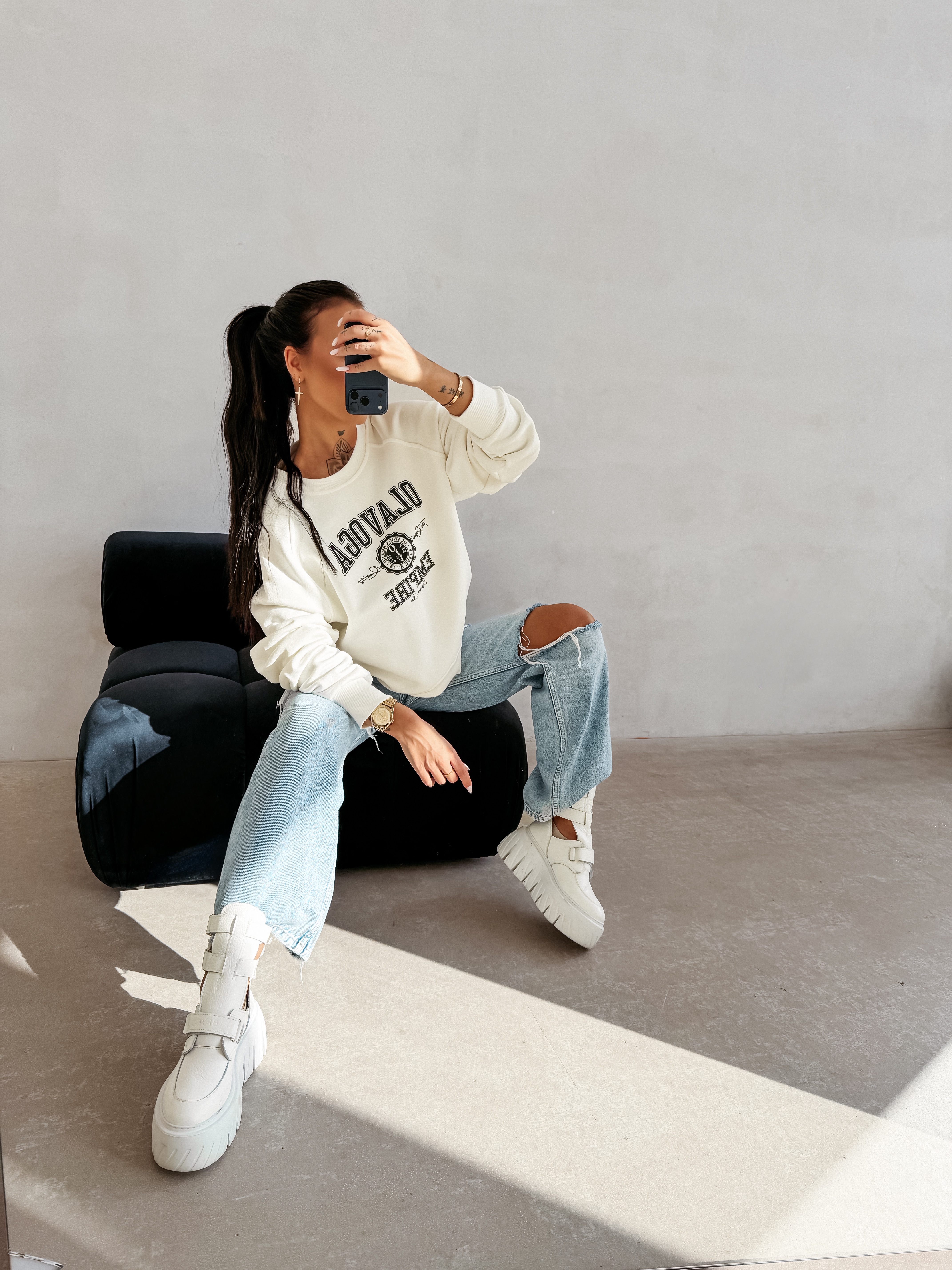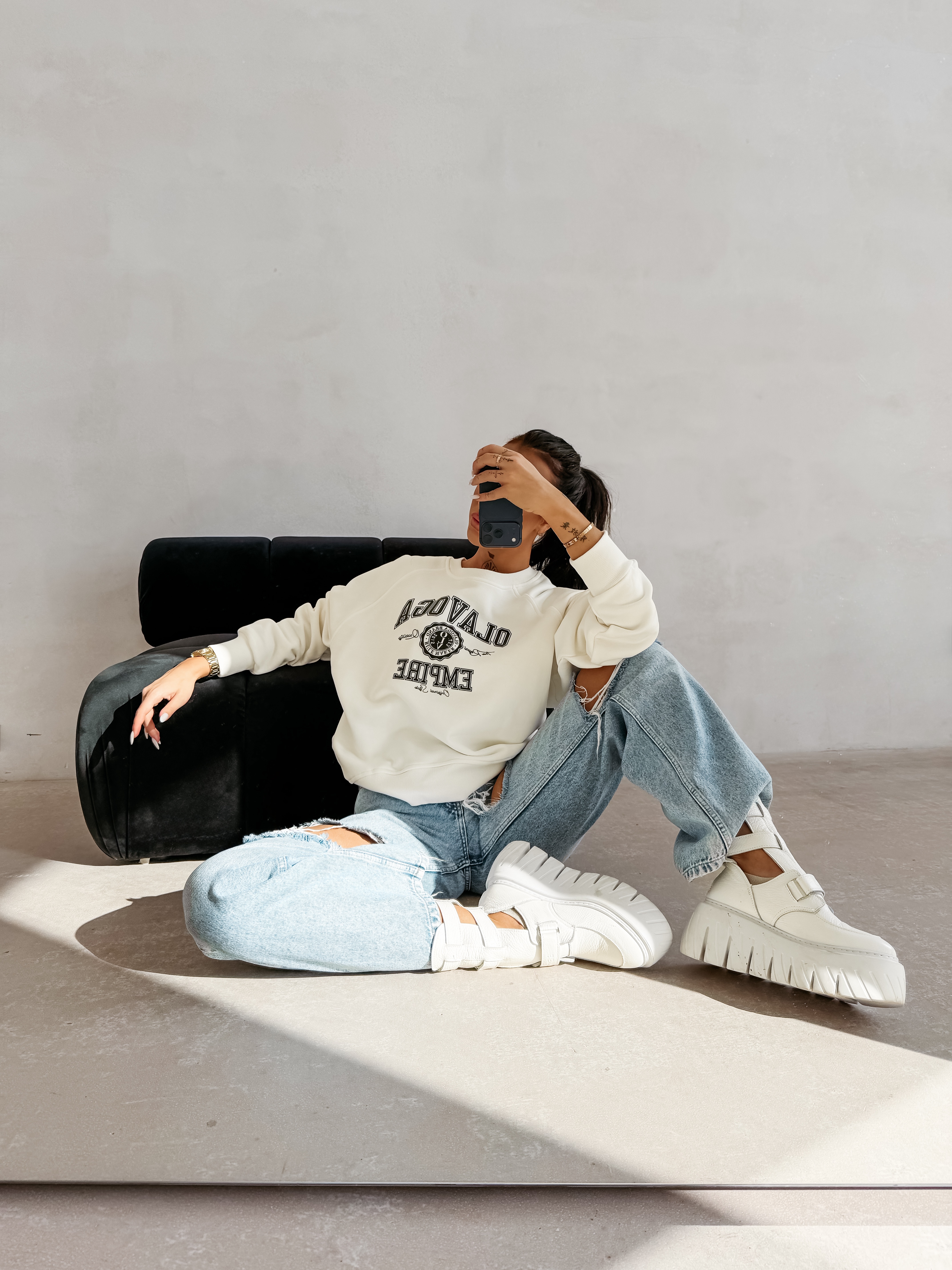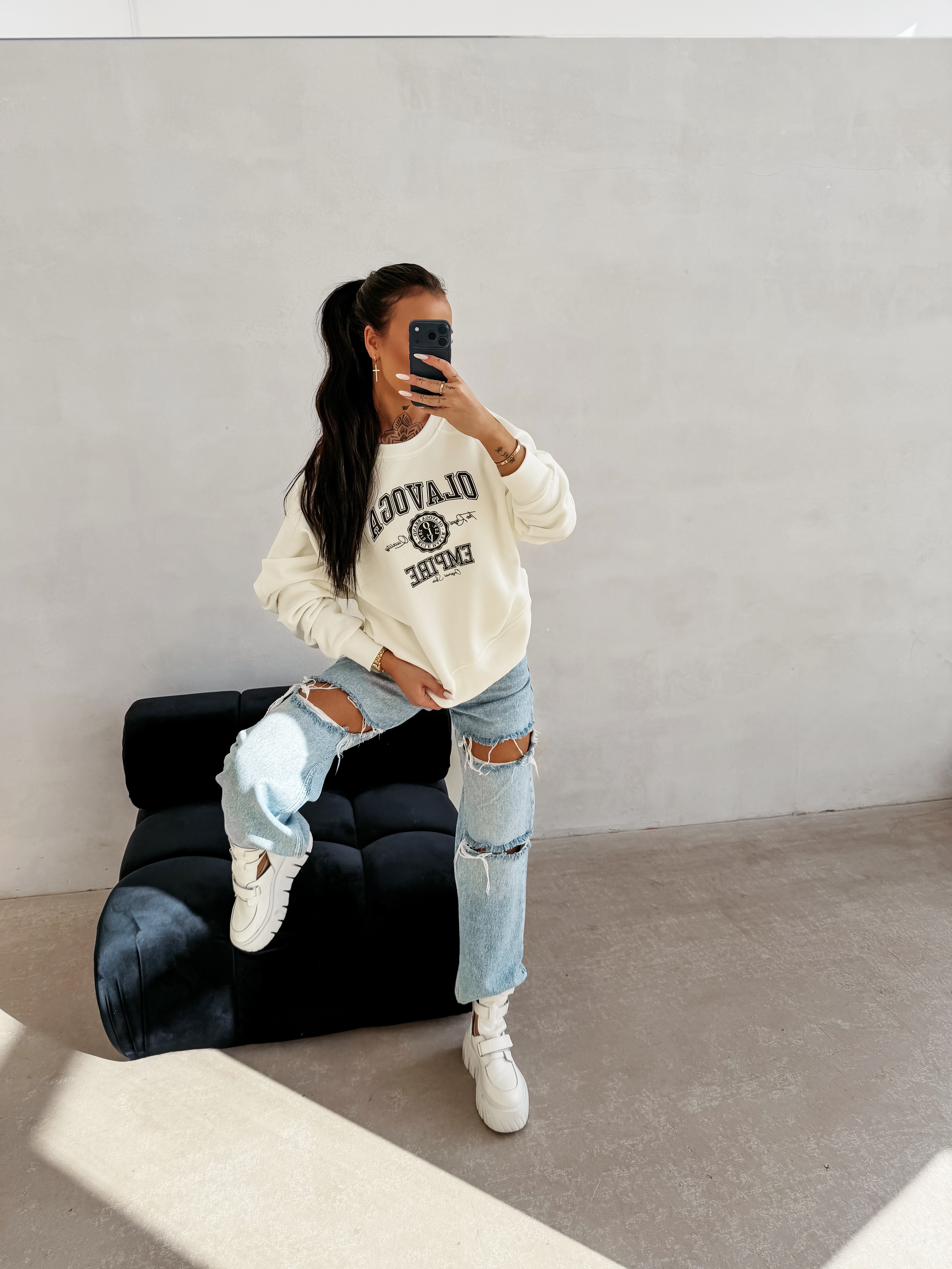 Luźny wygodny krój -bluza w stylu college/varsity - miękki wysokogatunkowy materiał - okrągły dekolt - ściągacze przy rękawach i u dołu - nadruk OLAVOGA EMPIRE na przodzie - casualowy sportowy charakter