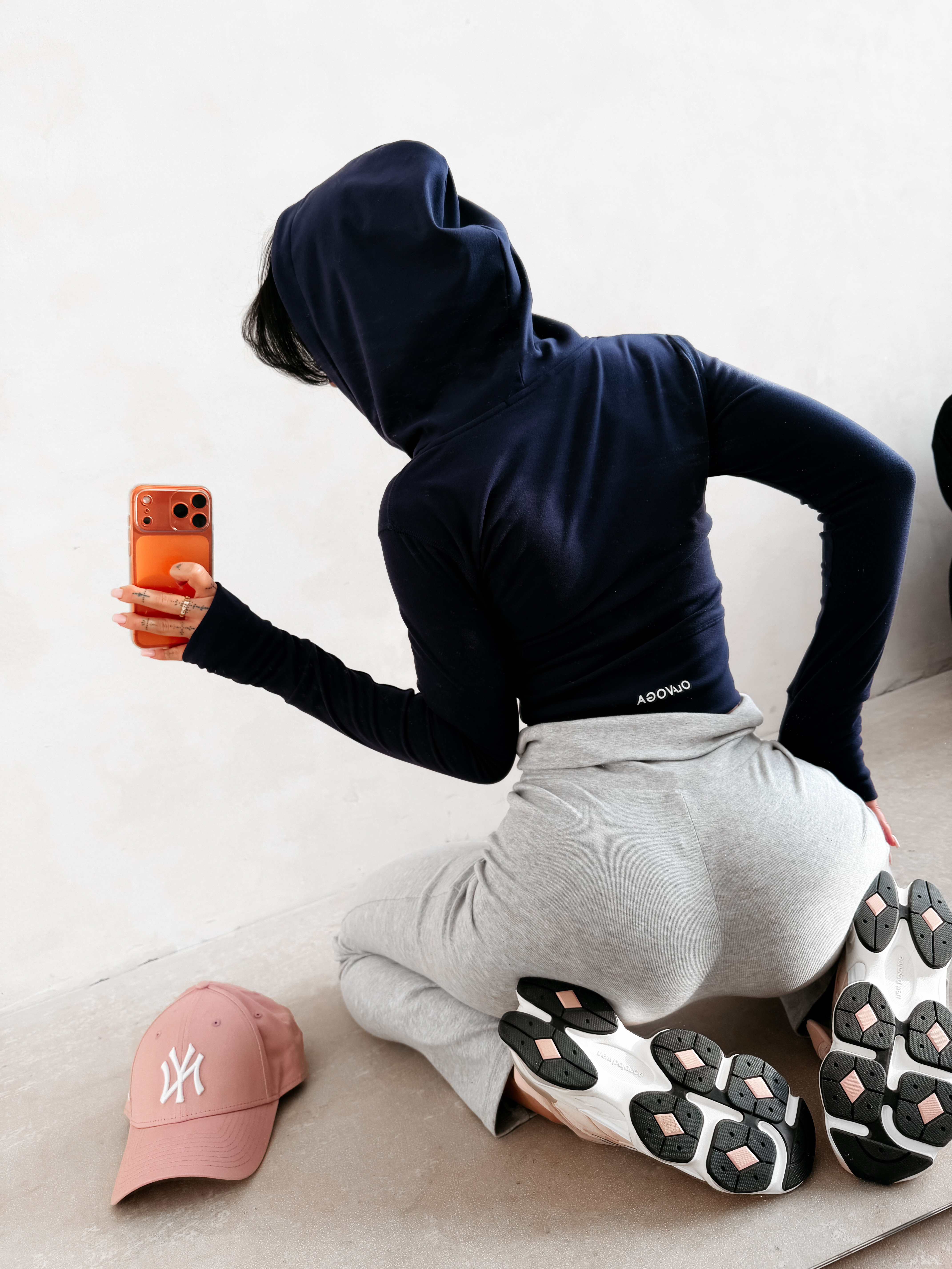 Dopasowana, rozpinana bluza z kapturem o wydłużonym kroju. Wykonana z wysokiej jakości, elastycznego i przyjemnego w dotyku materiału. Model wyróżnia się licznymi przeszyciami, które optycznie modelują sylwetkę. Rękawy z wycięciem na kciuk. Tył zdobi minimalistyczne logo marki OLAVOGA.
