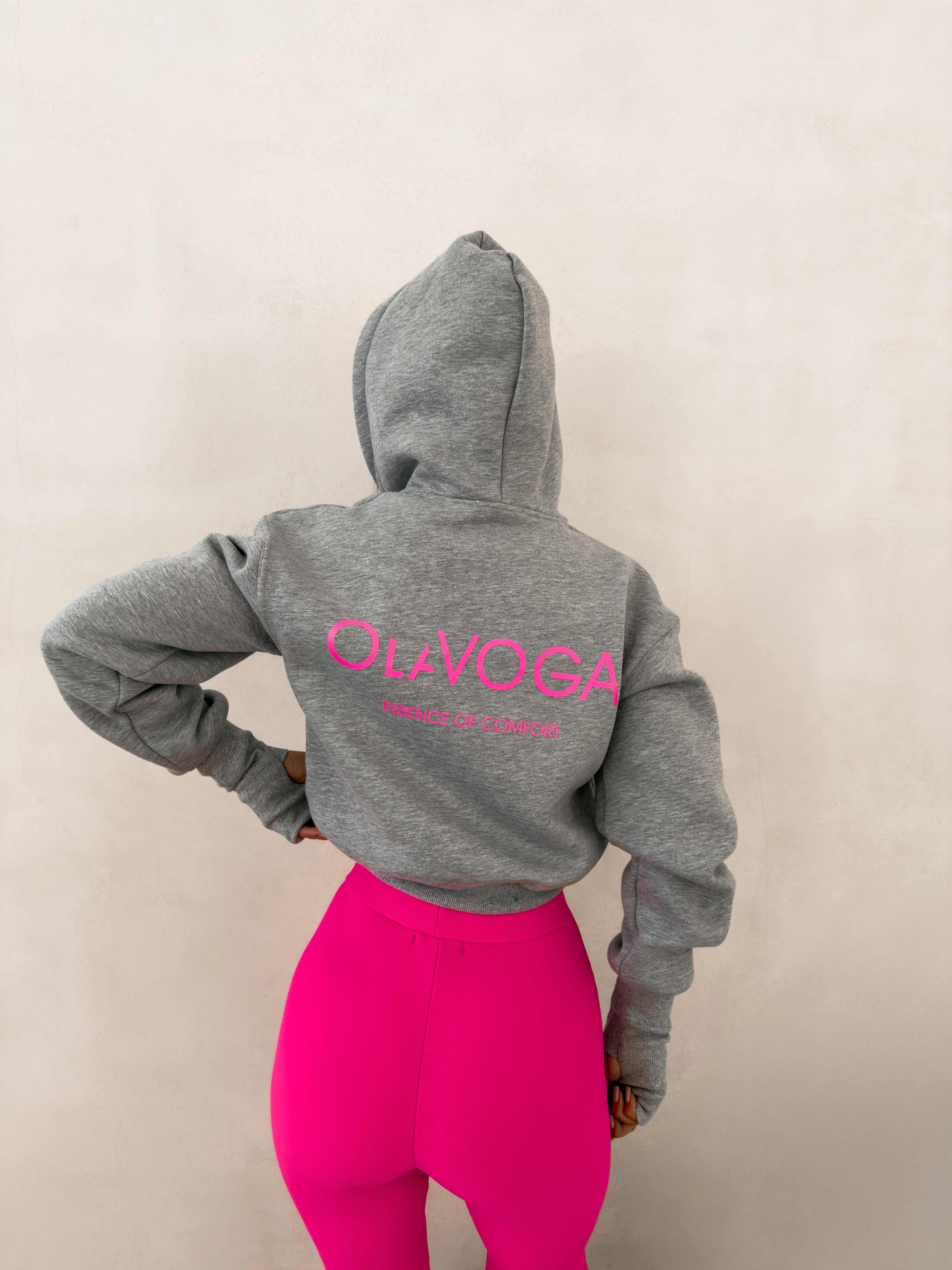 Casualowa bluza wykonana z miękkiej, elastycznej dzianiny o gładkiej, jednolitej strukturze. Model z kapturem, zapinany na suwak, o klasycznym kroju. Bluza z długim rękawem, wykończonym elastycznymi ściągaczami z wycięciem na kciuk. Dół wykończony ściągaczem. Na przodzie subtelne logo marki OLAVOGA w kontrastowym kolorze. Na plecach większy nadruk z logo brandu oraz hasłem Essence of Comfort.