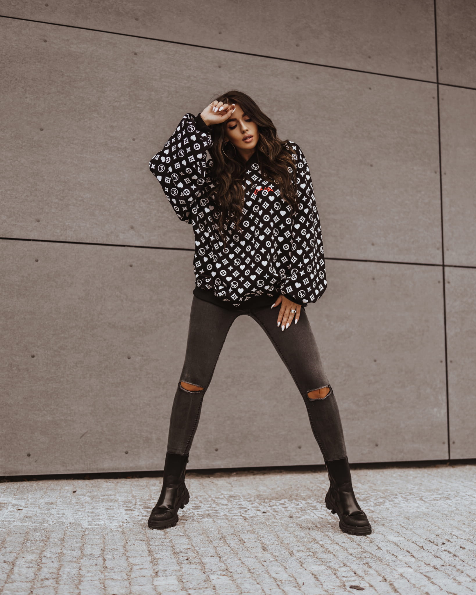 BLUZA FANCY PRINT CZARNY