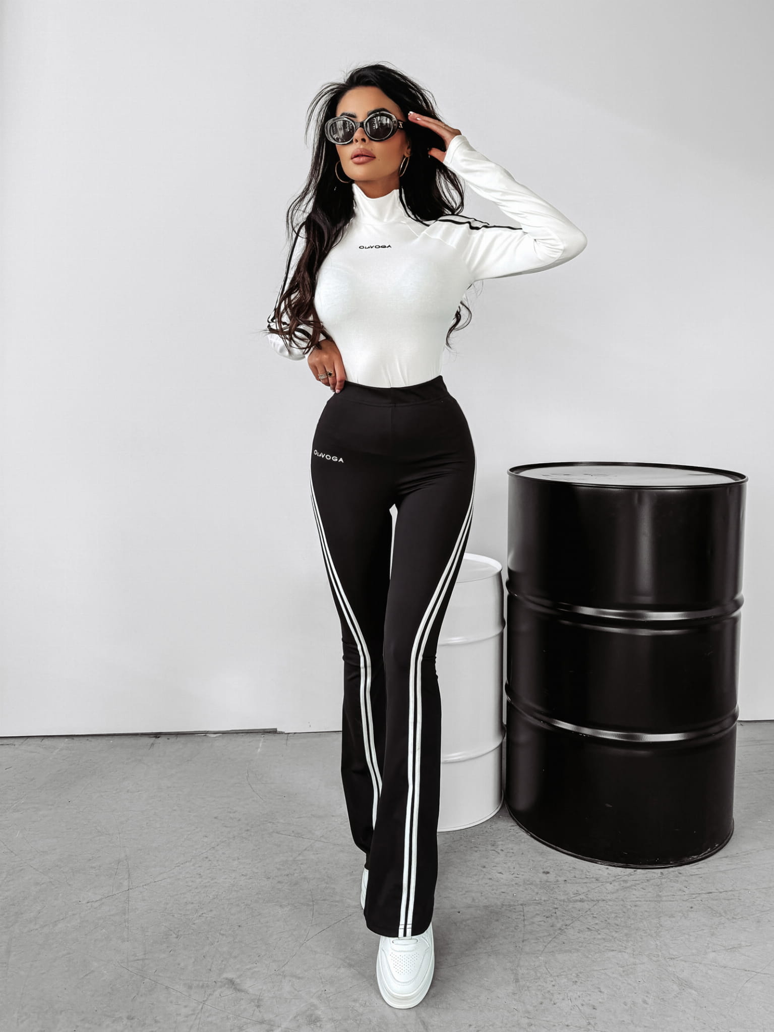 Dopasowana bluzka z długim rękawem. Posiada delikatny półgolf. Na przodzie delikatne logo marki. Na bokach lampasy.