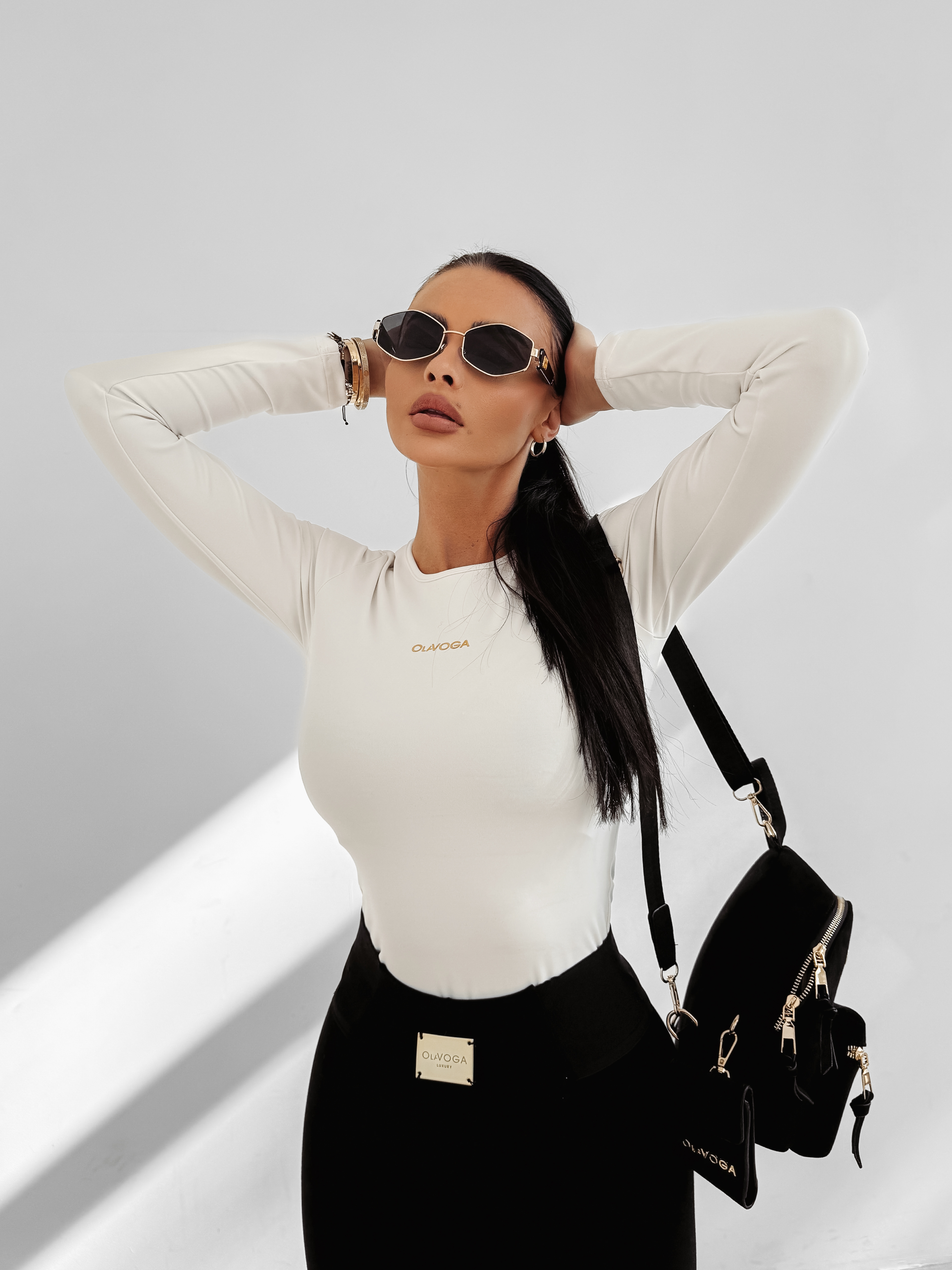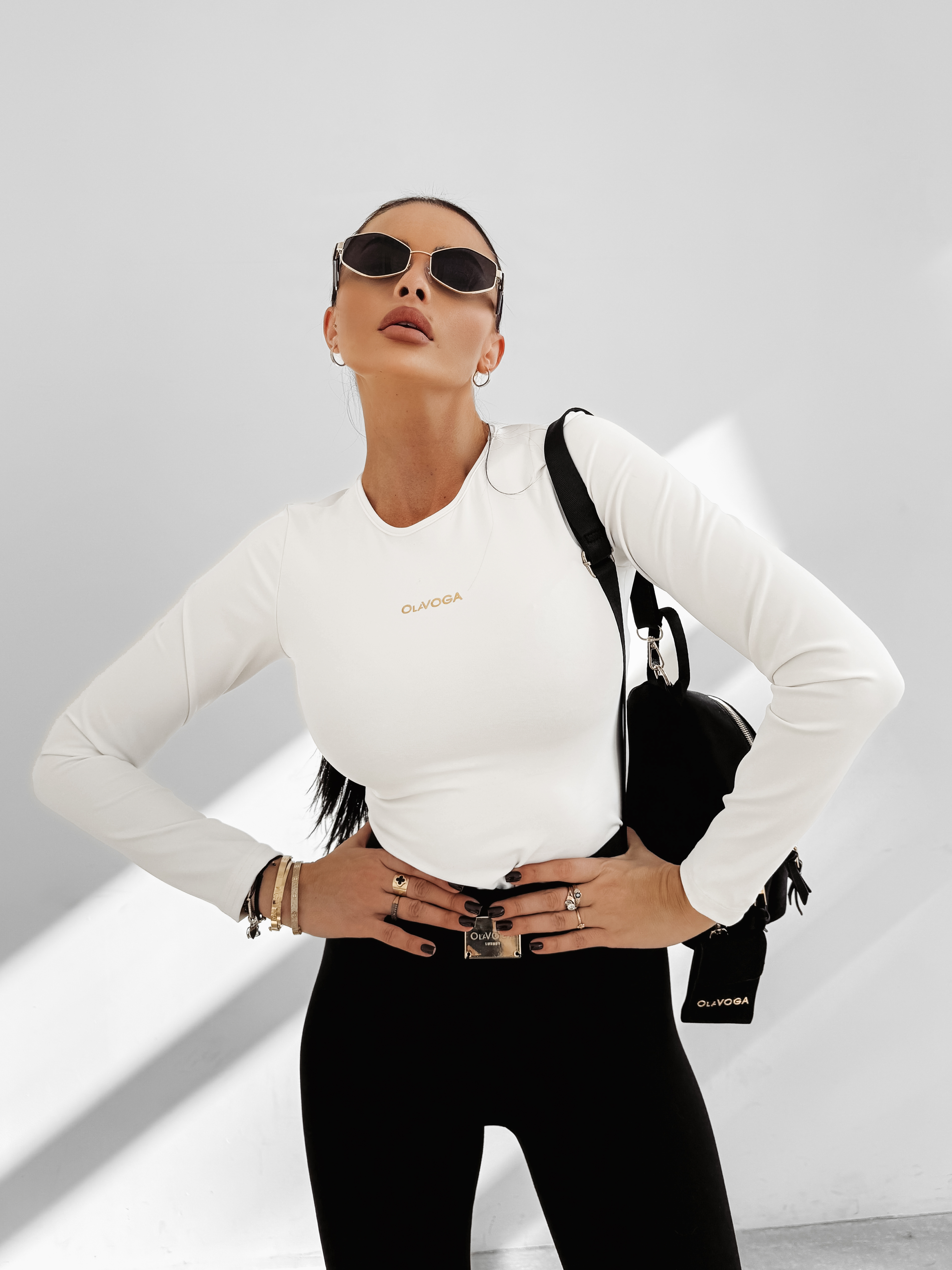 Dopasowana bluzka z długim rękawem o minimalistycznym designie. Wykonana z wysokiej jakości elastycznego materiału. Posiada dłuższy krój. Z przodu subtelne logo marki OLAVOGA w metalicznym wykończeniu.