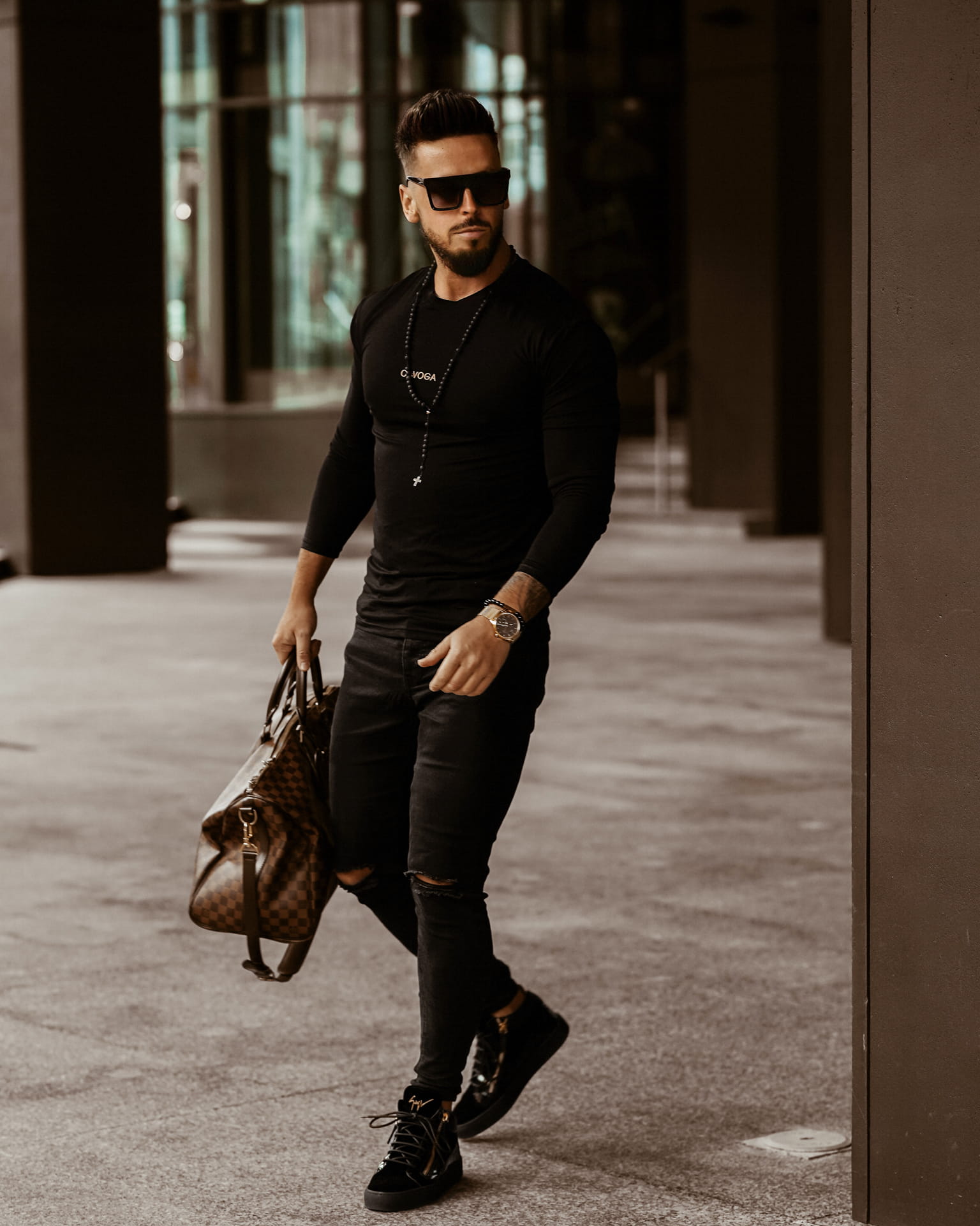 BLUZKA MĘSKA LONGSLEEVE SIMPLE LOOK CZARNY