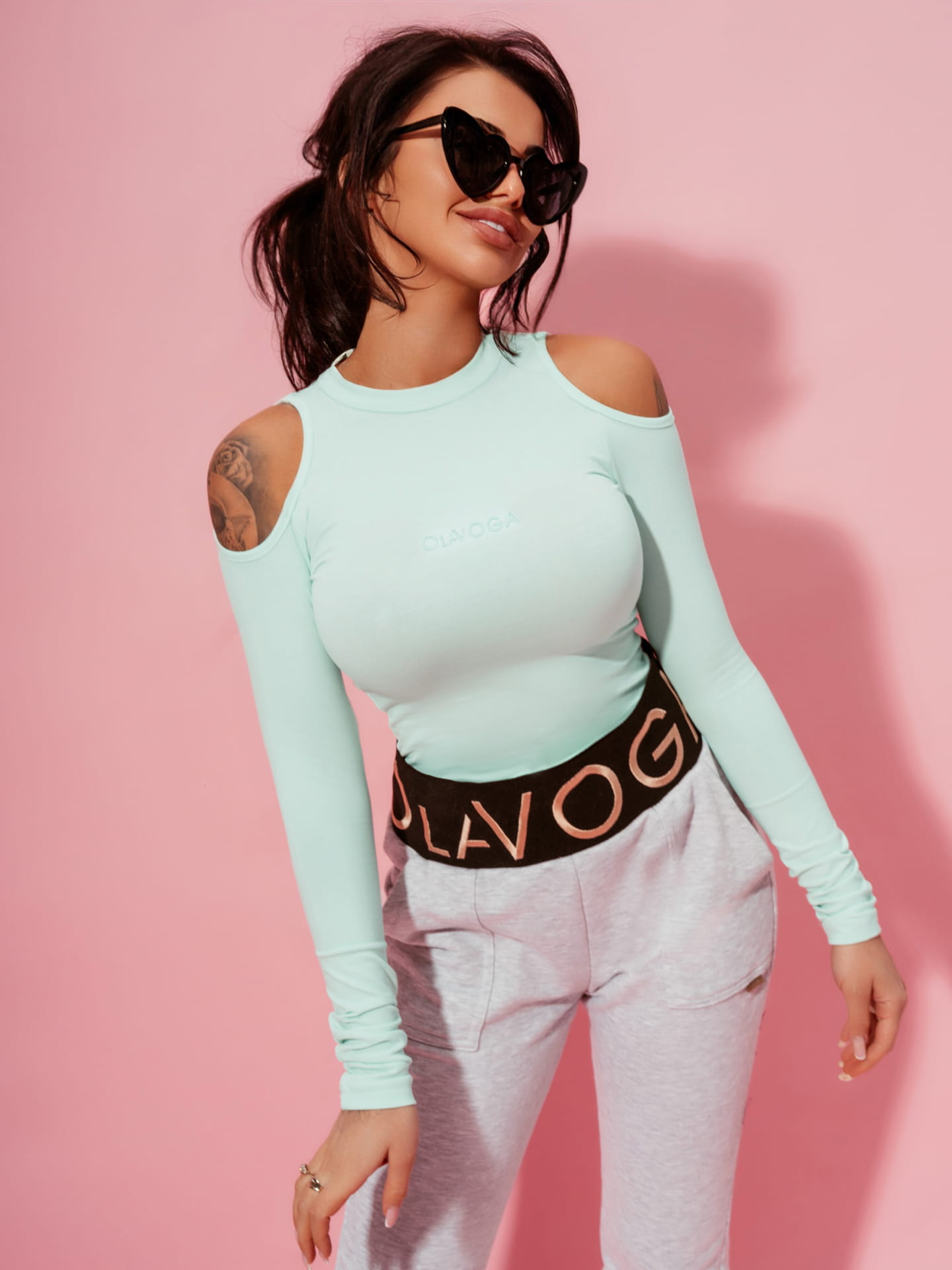 Bluzka „ NECK” z długim rękawem i odkrytymi ramionami dodaje zmysłowości. Dopasowana idealnie podkreśla figurę. Na biuście logo marki .