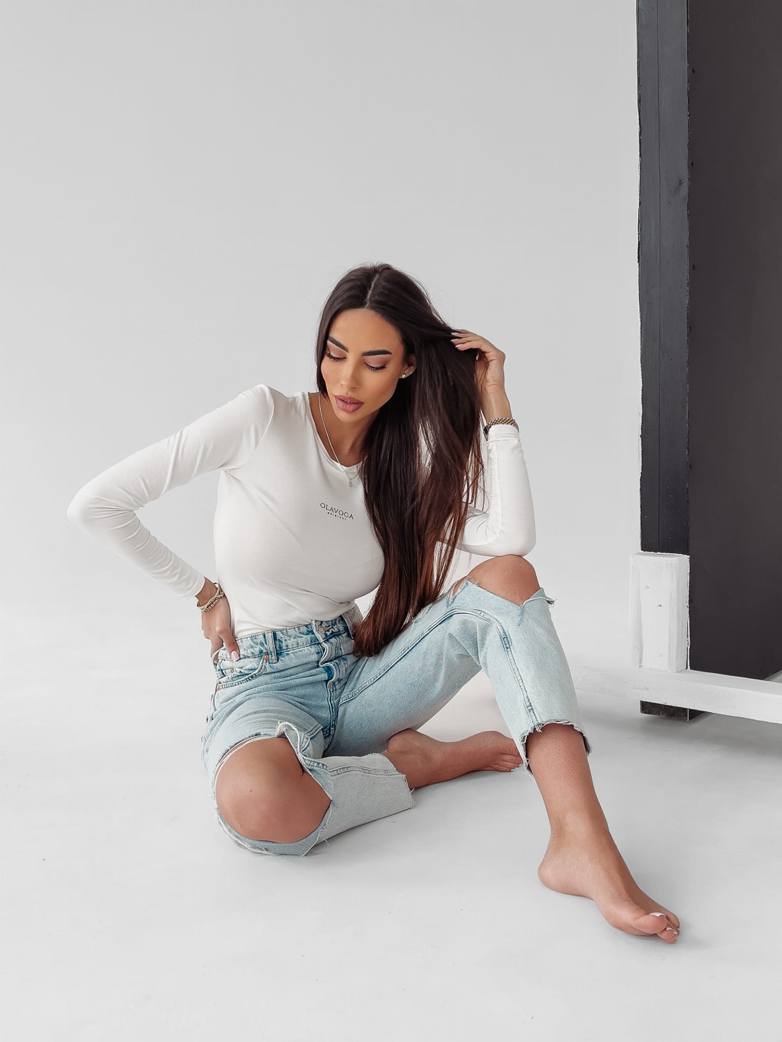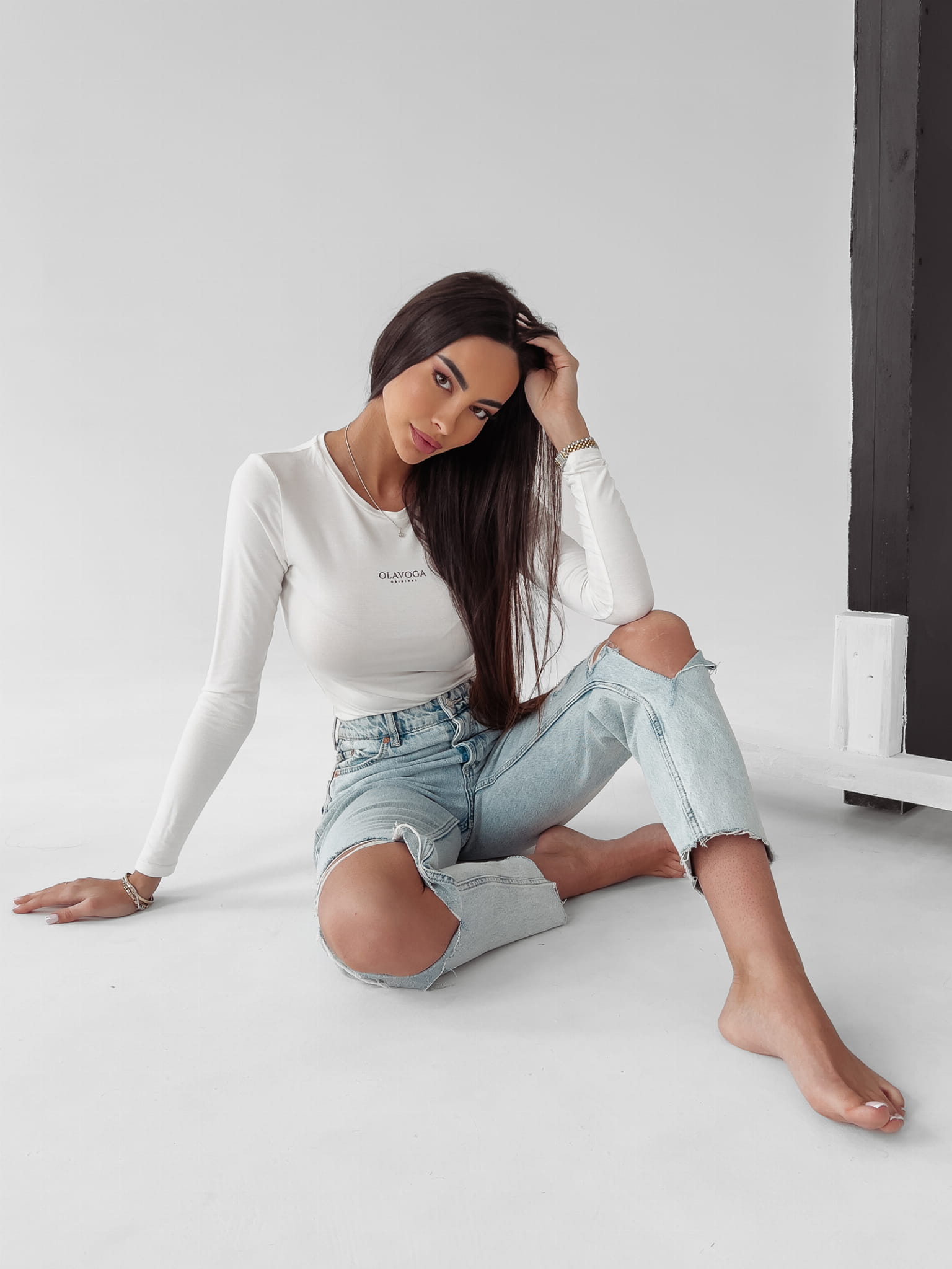 Gładka, basicowa bluzka z długim rękawem i małym, klasycznym dekoltem. Na przodzie dyskretny nadruk OLAVOGA ORIGINAL. Dostępna w trzech wariantach kolorystycznych.