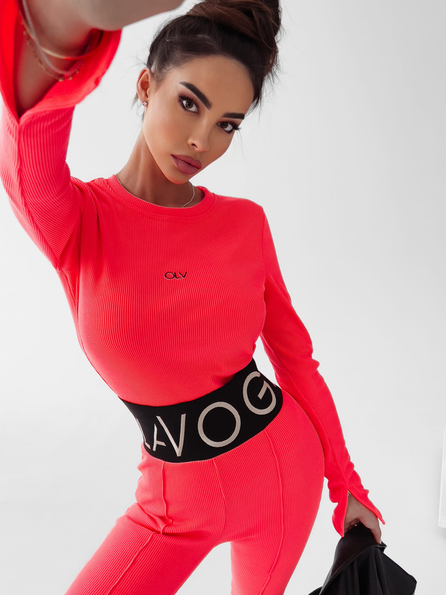 Dopasowany top z długim rękawem, z prążkowanej, miękkiej dzianiny. Fason o dopasowanym kroju, idealnie przylega do ciała, dając bazę do stworzenia casualowej stylizacji. Rada stylisty: dobrze komponuje się z legginsami SUSAN.