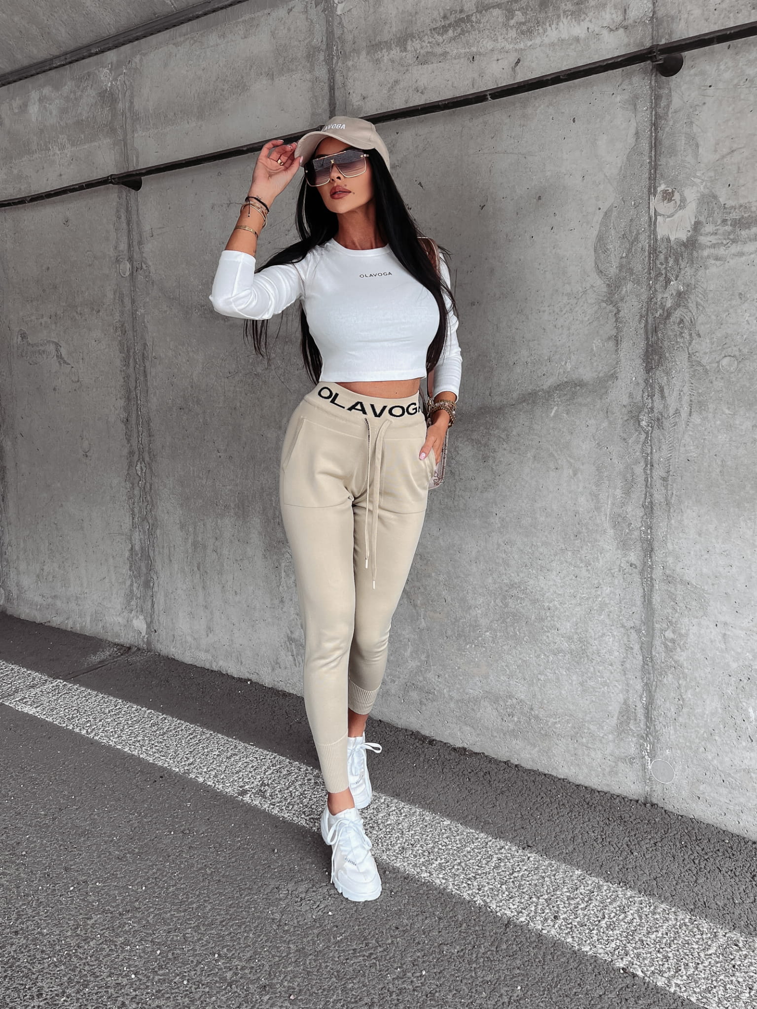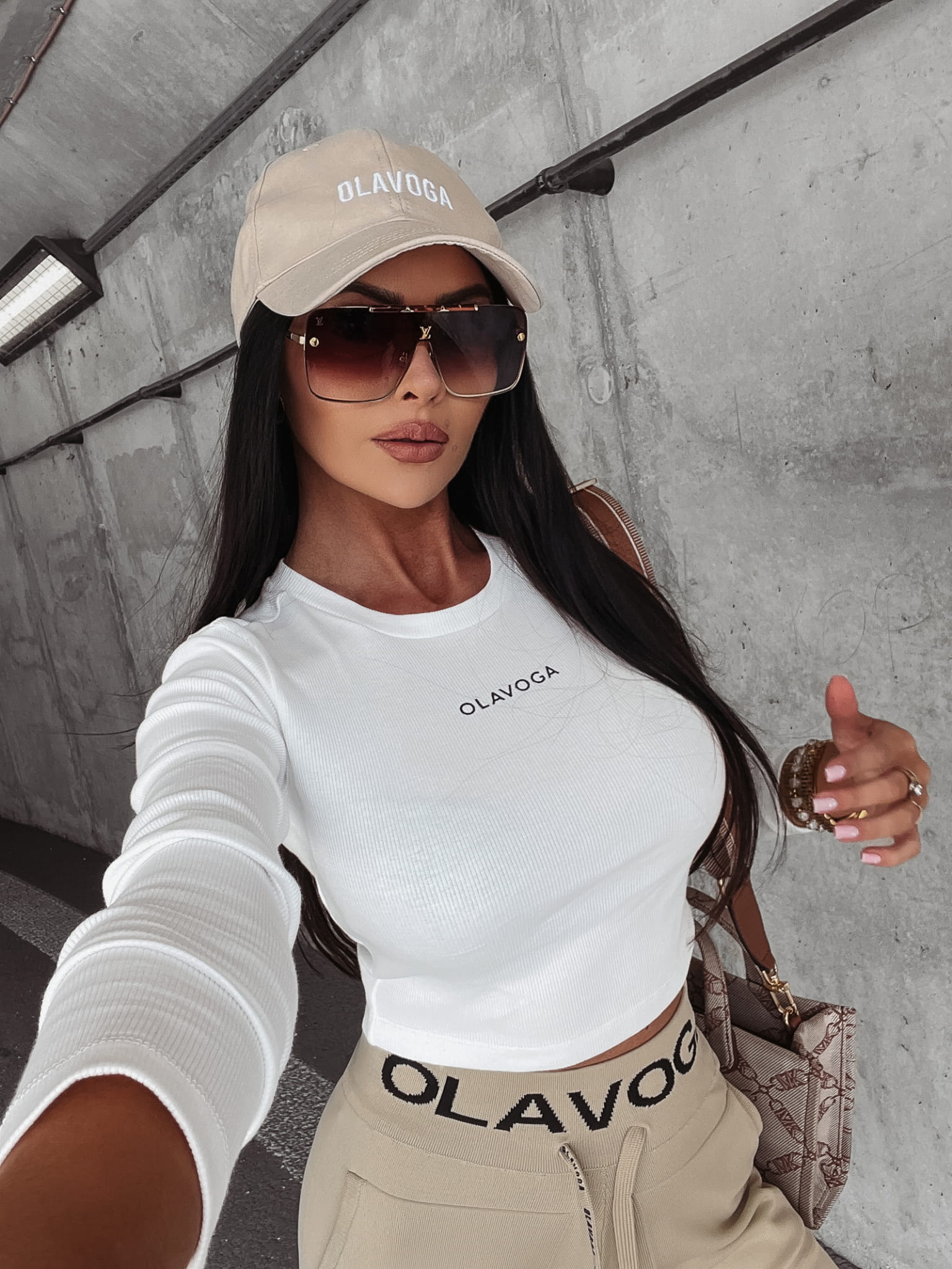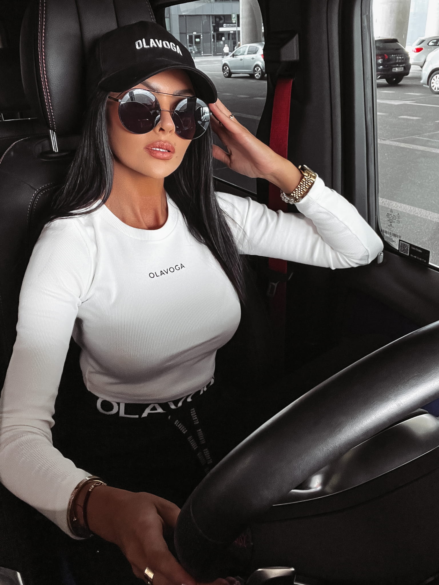 Dopasowana bluzka z długim rękawem i zabudowanym dekoltem, z nadrukiem Ola Voga na środku. Basicowa i pasująca do wielu stylizacji