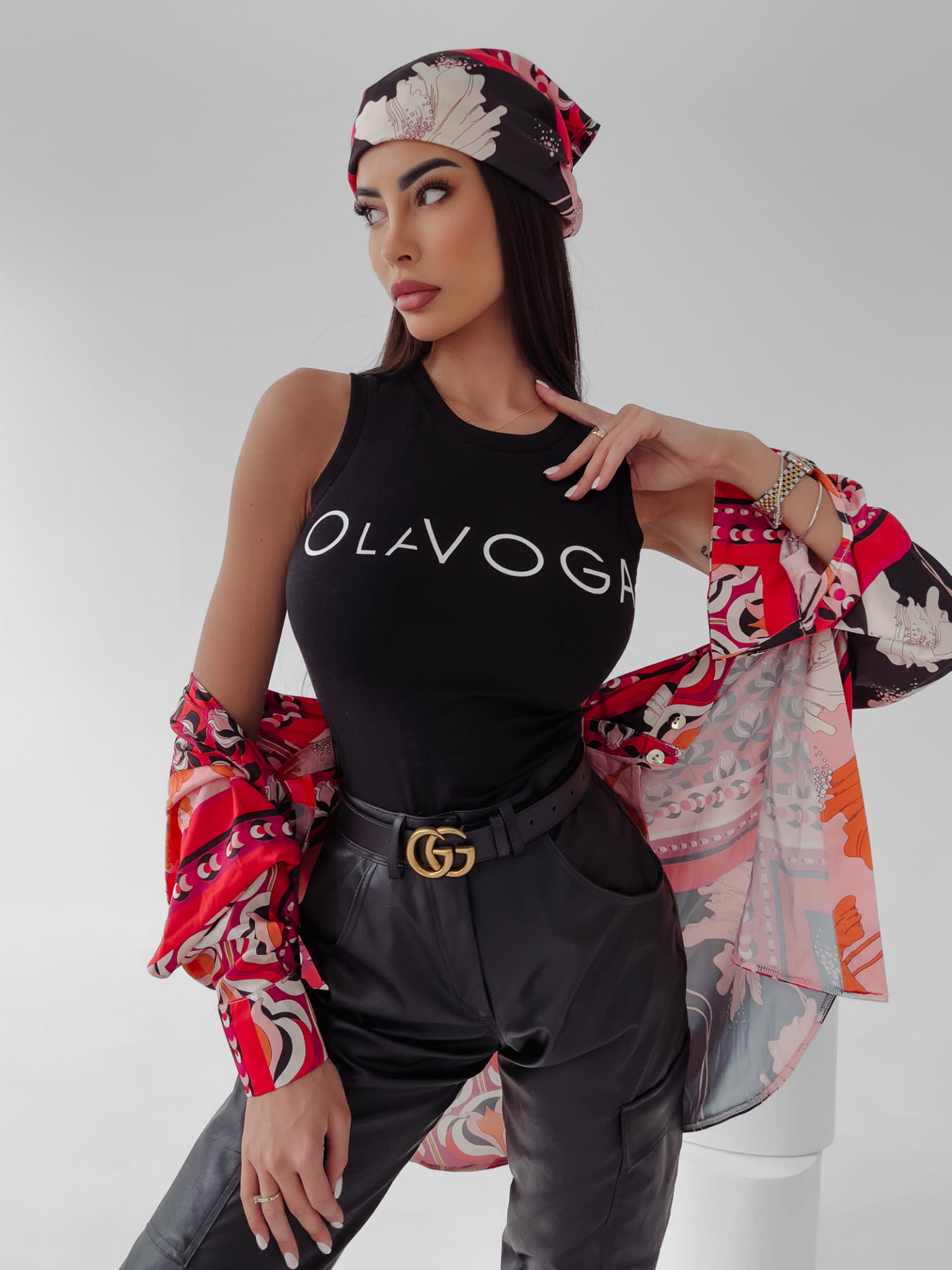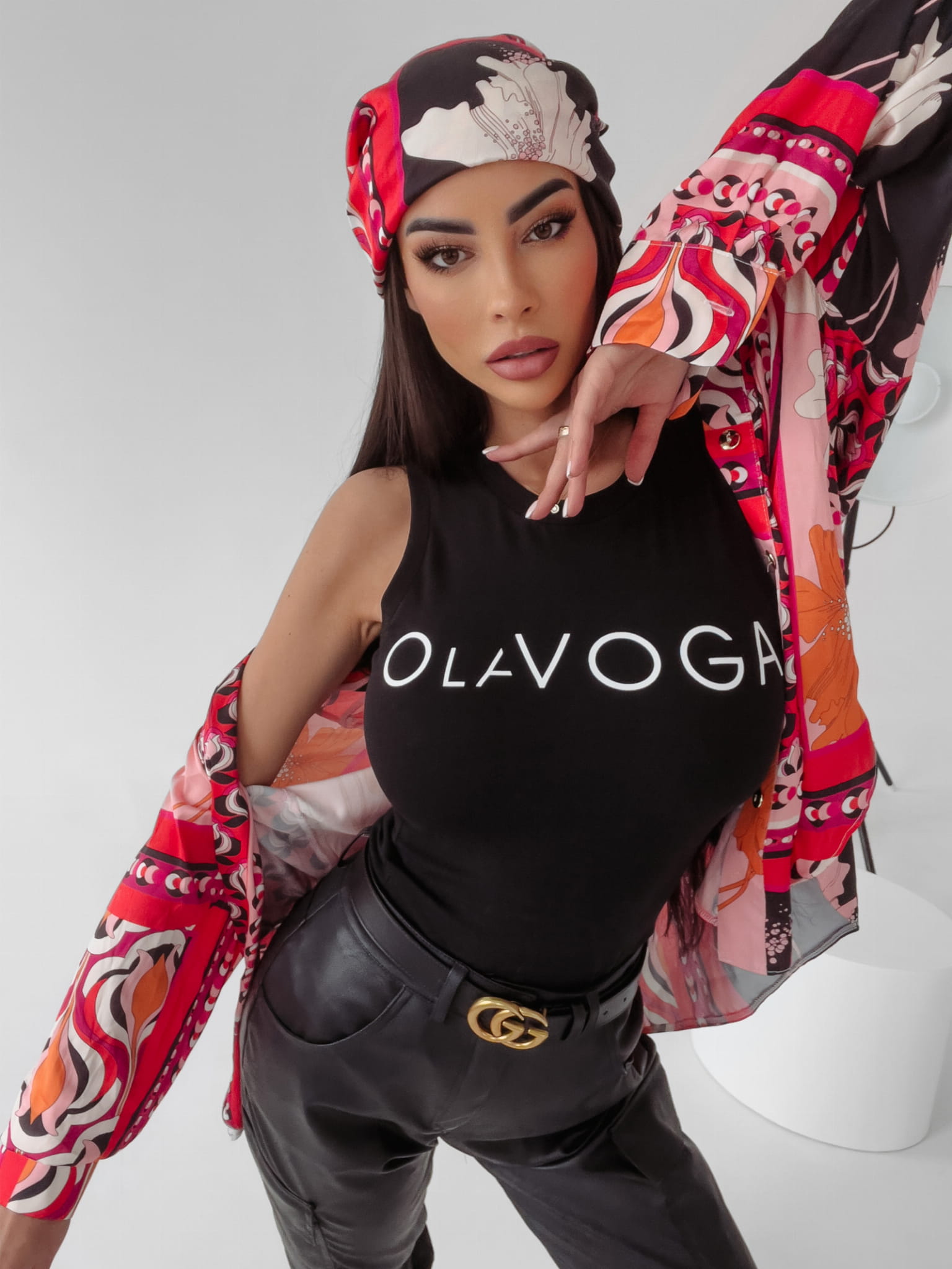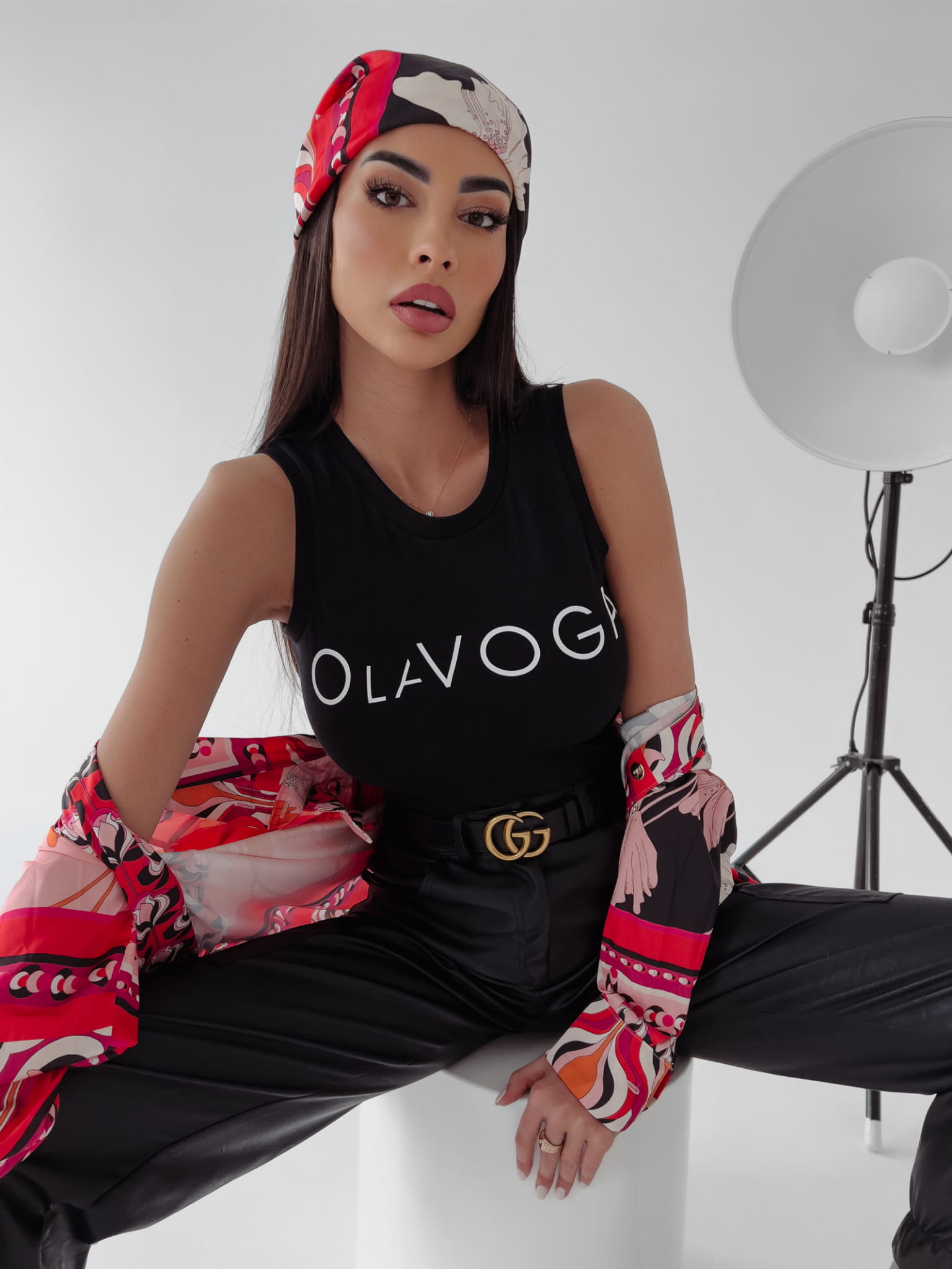 Dopasowane, idealnie przylegające do ciała body z nadrukiem logo OLAVOGA na przodzie. Zapinane na haftki. Baza do stworzenia wielu wiosennych stylizacji, idealne pod marynarkę, jeansową katanę czy skórzaną ramoneskę.