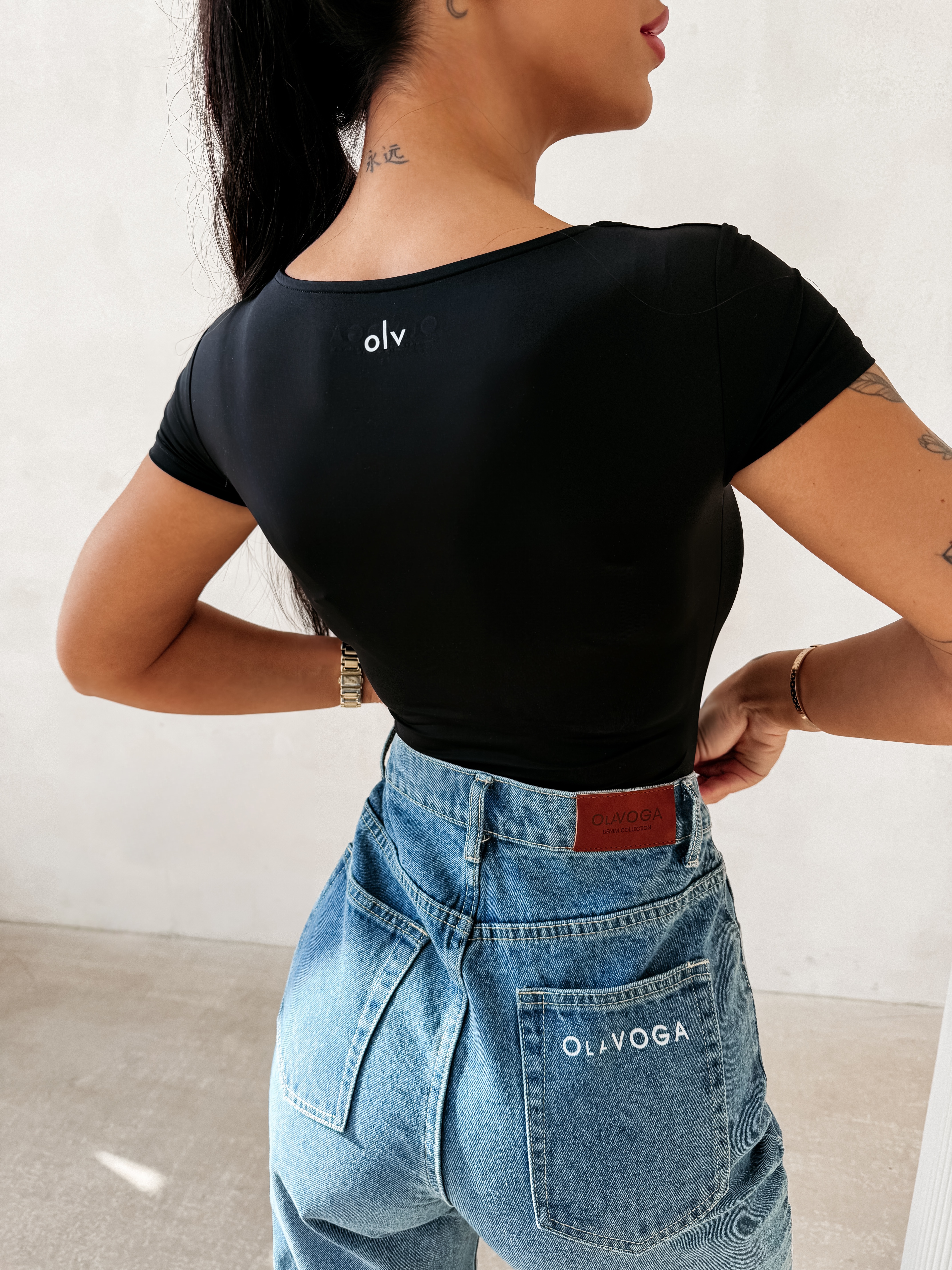 Dopasowane body - elastyczna tkanina - model podkreślający sylwetkę - komfortowy fason - krótki rękaw - okrągły dekolt - subtelne logo OLV na plecach