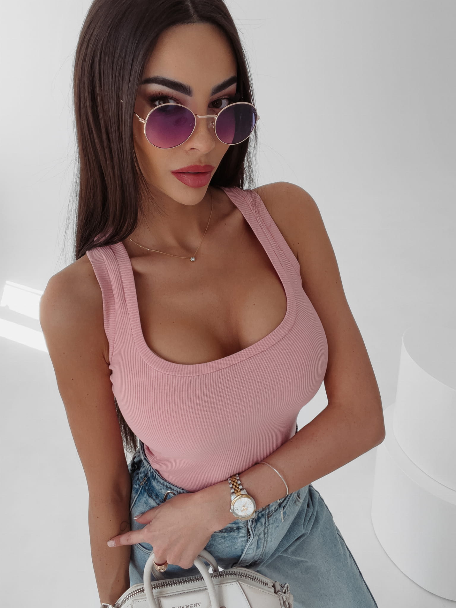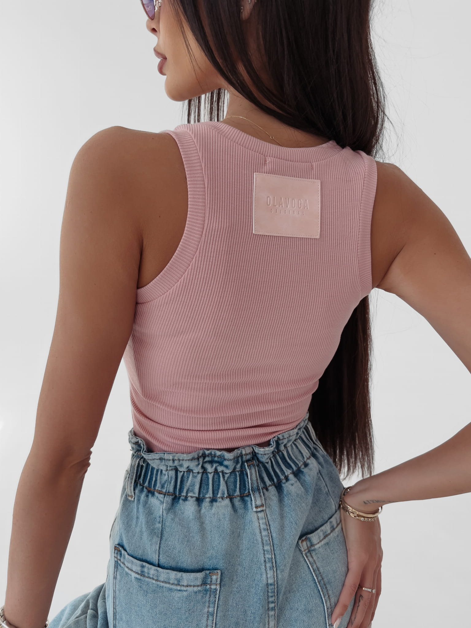 Body uszyte z prążkowanej, miękkiej i przewiewnej bawełny. Model na szerokie ramiączka, z dużym, kwadratowym dekoltem. Na tyle naszyta skórka z logiem marki. Body idealnie sprawdzi się do jeansów, szortów czy dopasowanej spódniczki.