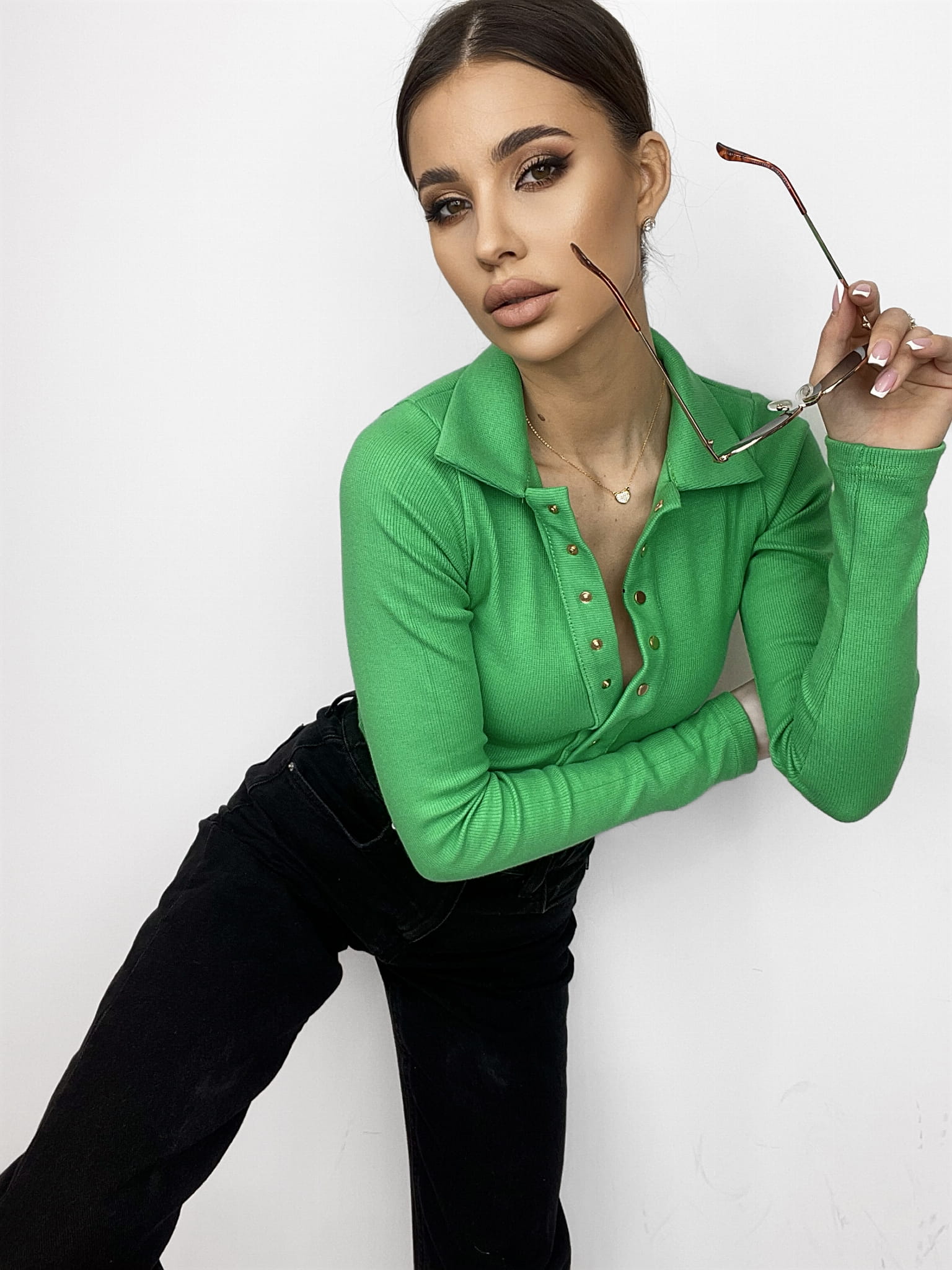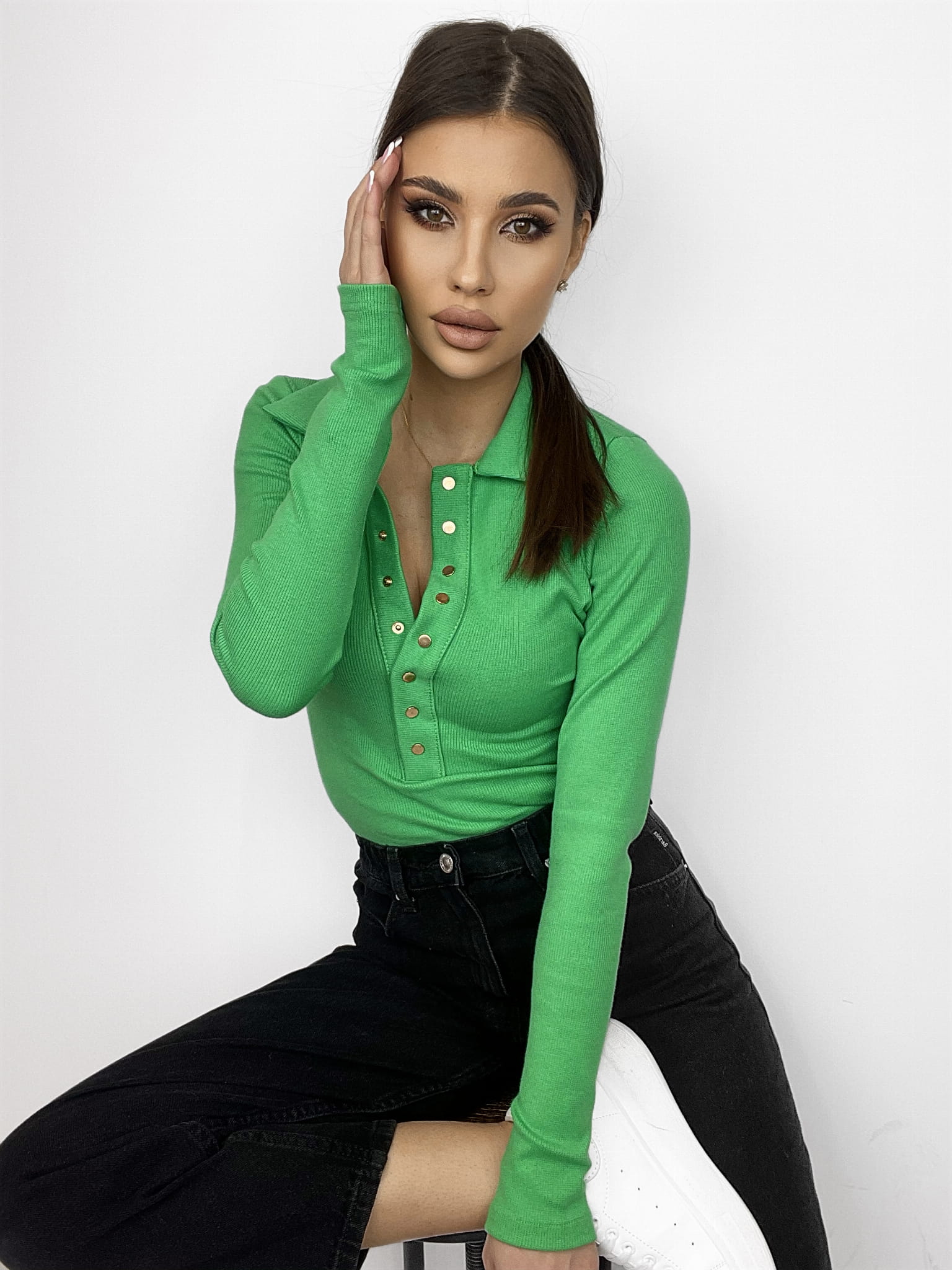 Eleganckie body „LUNA” to model który przyda się każdej kobiecie. Dopasowany do ciała z długim rękawem i kołnierzykiem będzie idealnym wyborem do biznesowych stylizacji. Ozdobne zapięcia z przodu dodają mu blasku.
