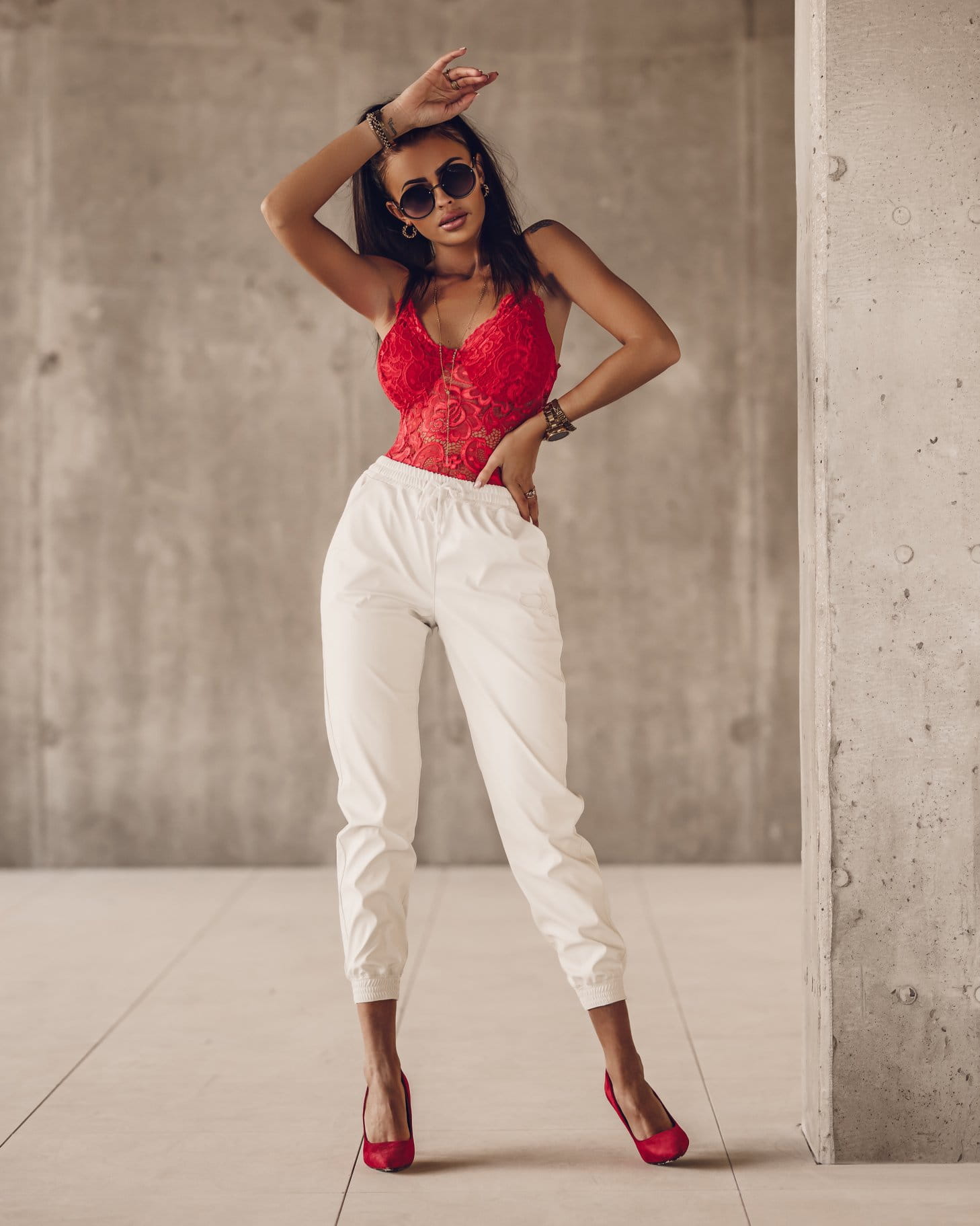 BODY MERLETTO CZERWONY