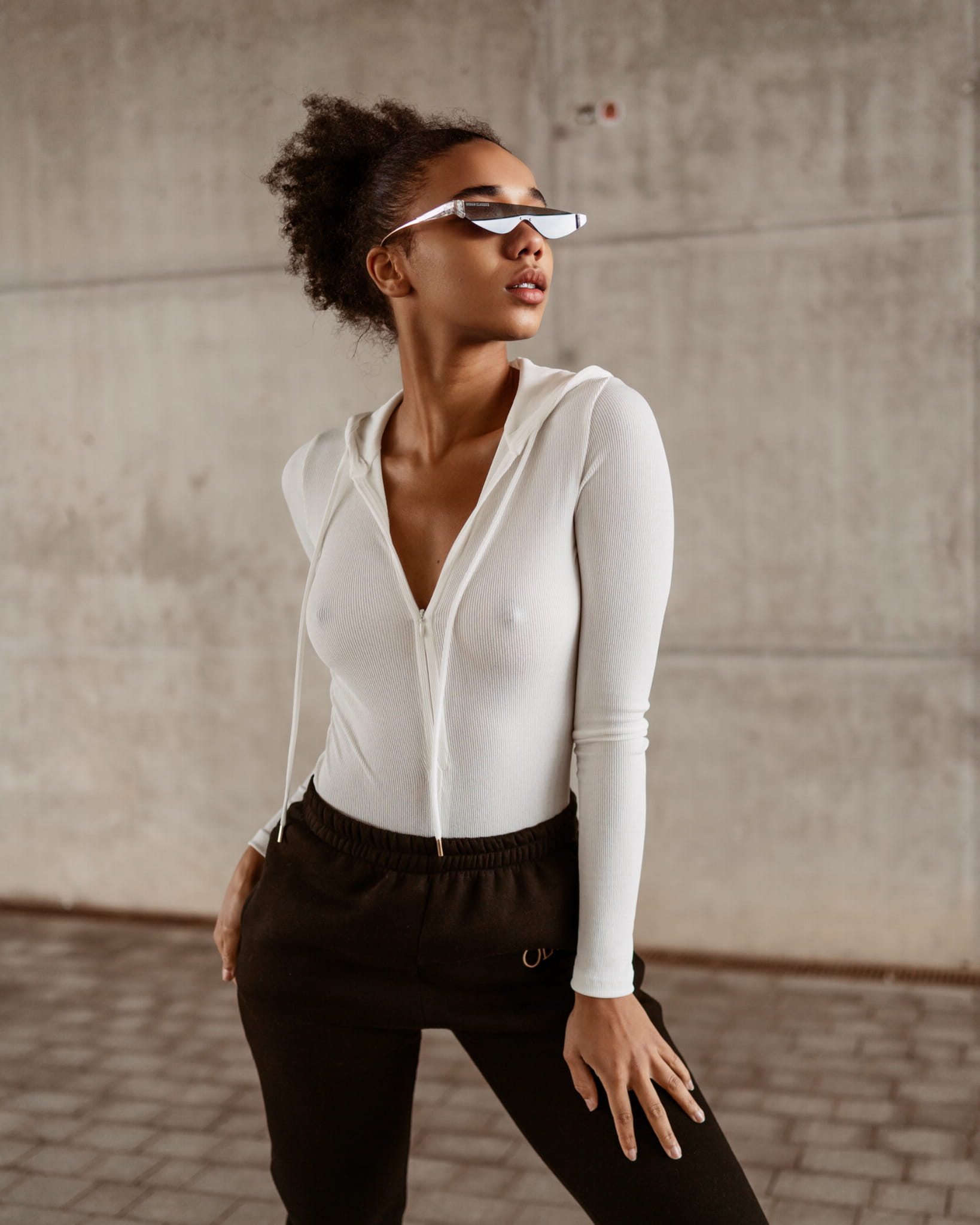 Przylegające do ciała najnowsze body SPORTY HOOD bez wątpienia podkreśli atuty Twojej sylwetki. Perfekcyjne połączenie sportowego luzu z domieszką elegancji. Body posiada kaptur, a także suwak znajdujący się pośrodku, dzięki któremu możesz regulować głębokość dekoltu.