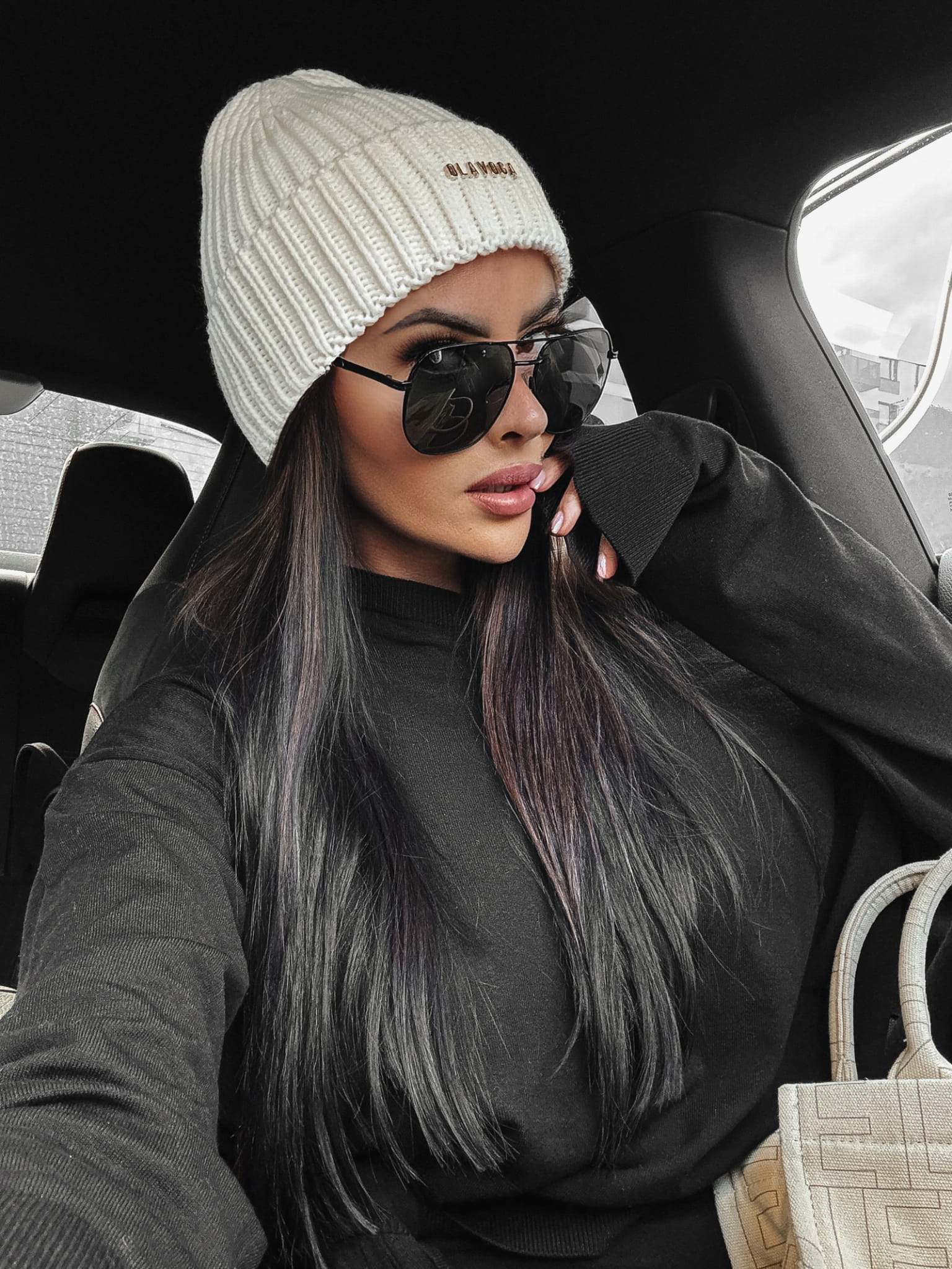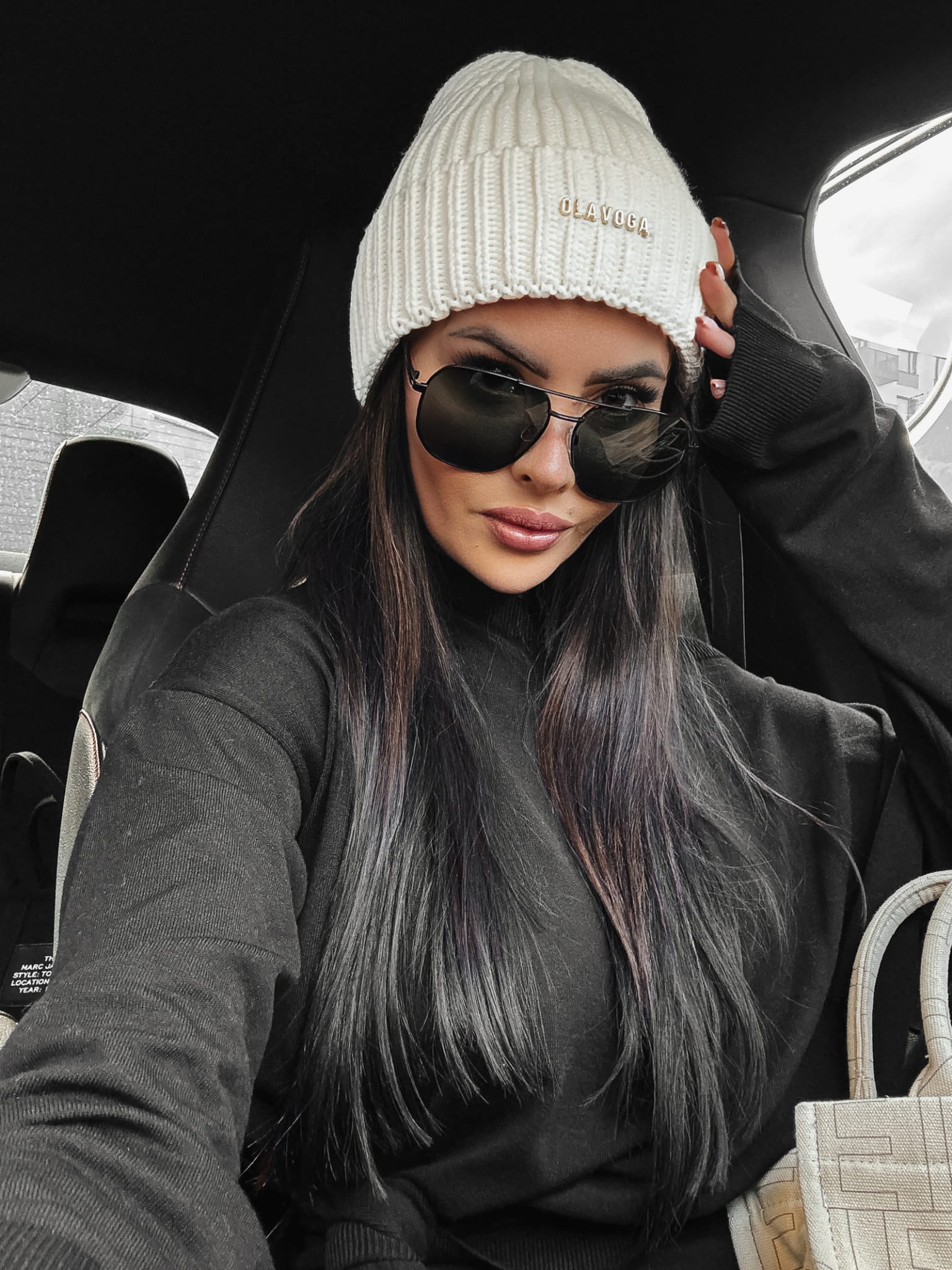 Czapka typu beanie, z prążkowanej dzianiny. Model zdobiony złotym metalowym napisem z logiem marki.