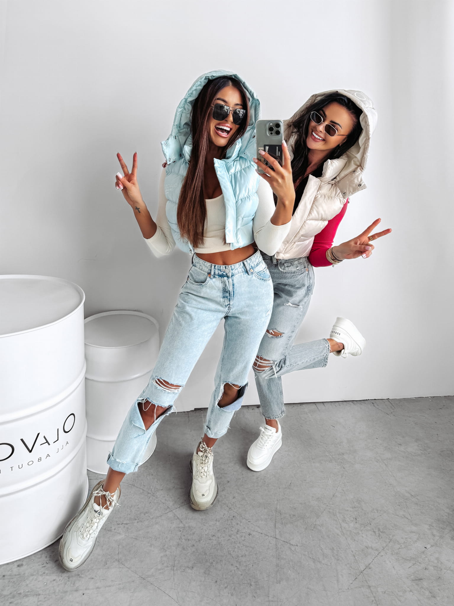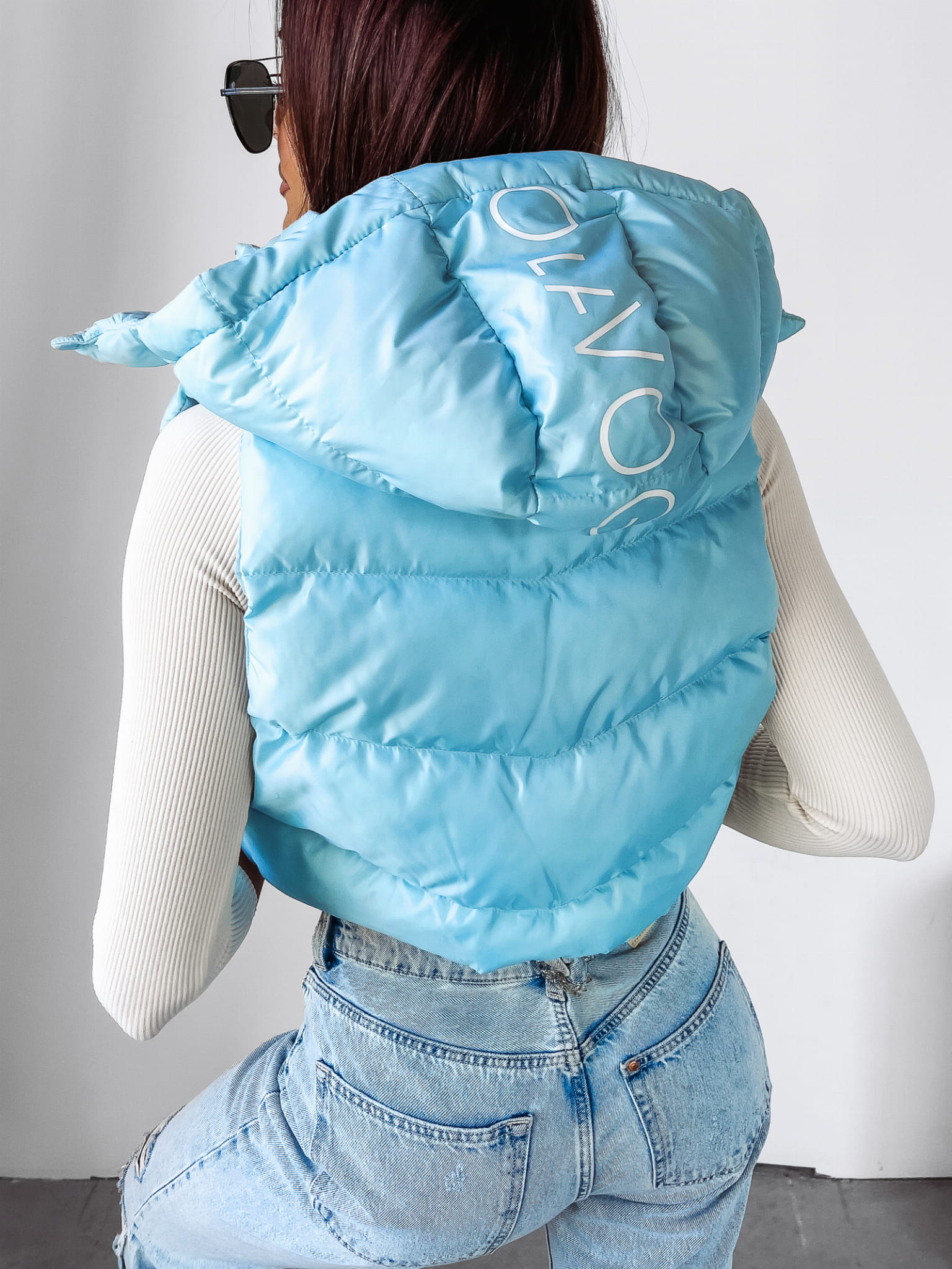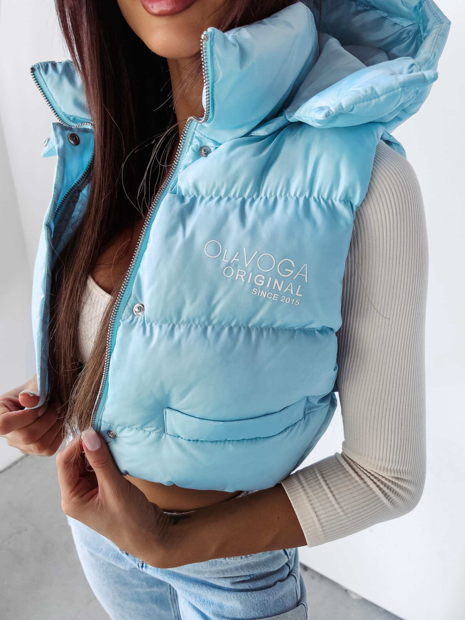 Pikowana, wiosenna kamizelka z kapturem. Długość sięgająca talii, na przodzie dwie kieszenie oraz suwak zabezpieczony guzikami. Na przodzie znajduje się delikatne logo OLAVOGA ORIGINAL SINCE 2015. Na kapturze logo marki.
