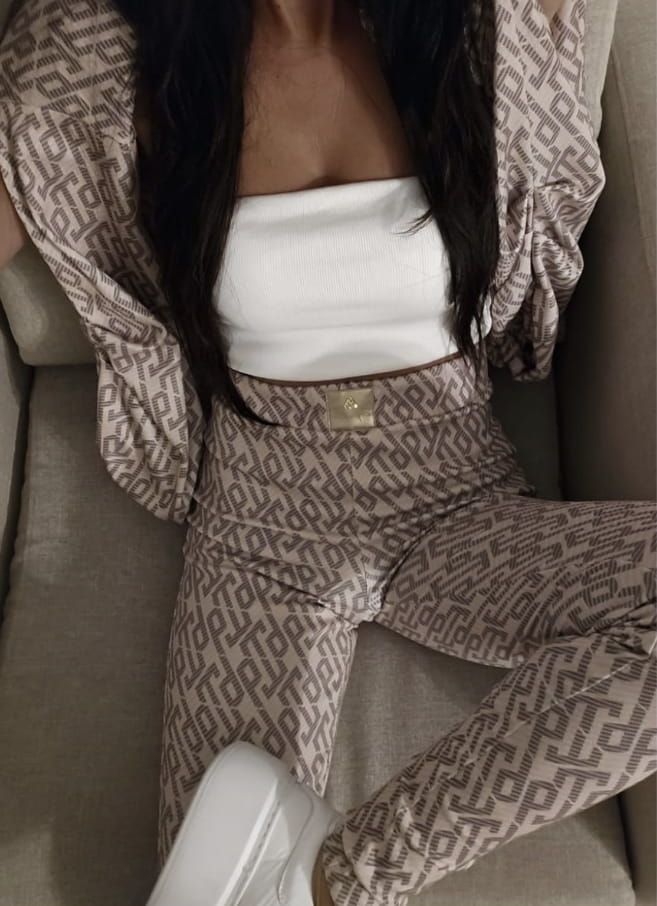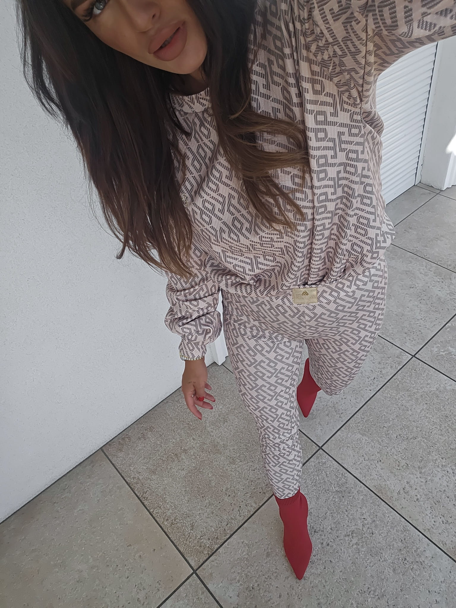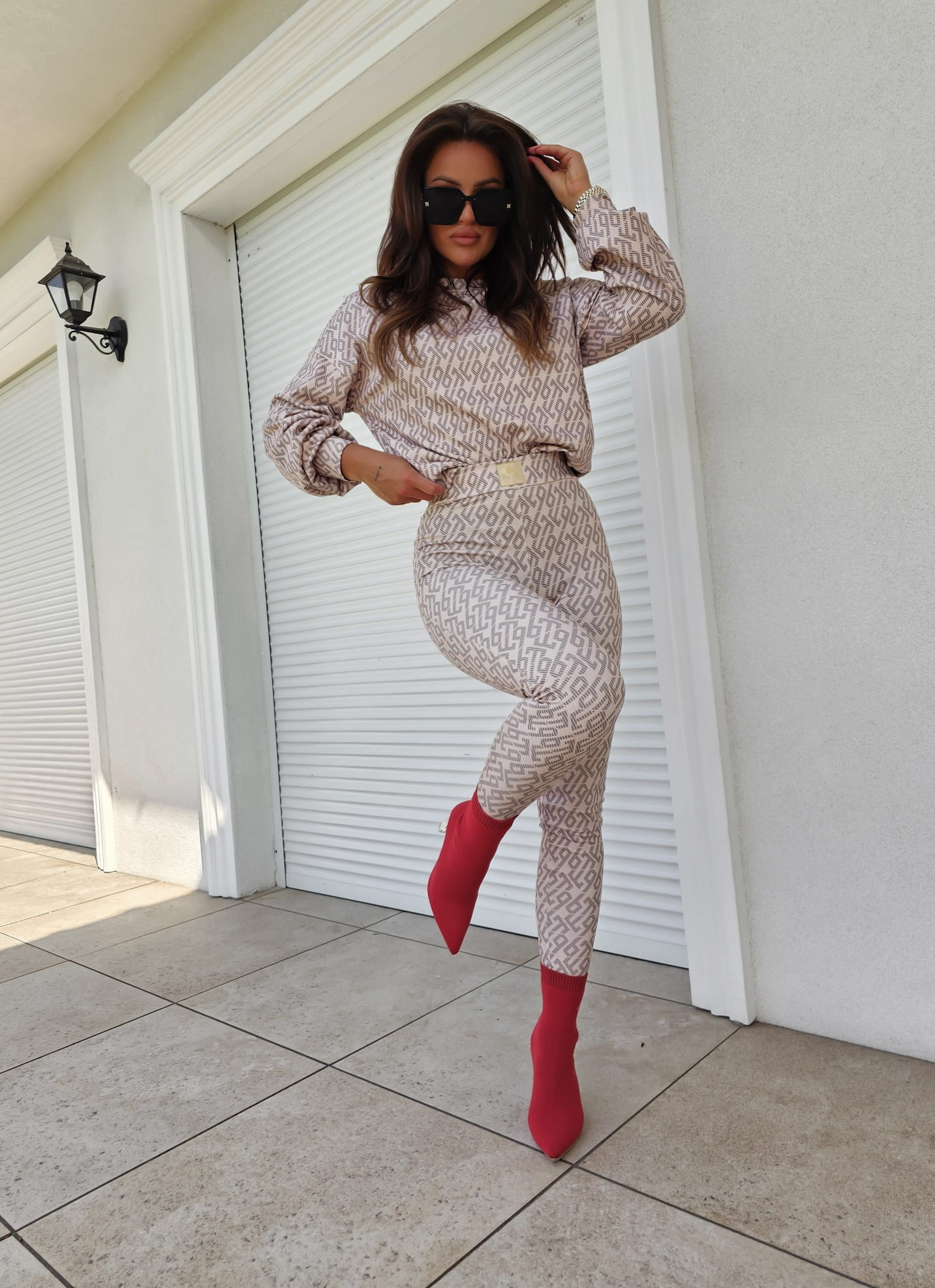 Komplet ACTIVE wykonany z najwyższej jakości materiału. Składa się z bluzy o luźnym kroju z małym, złotym haftem oraz prostych legginsów z gumką w pasie.