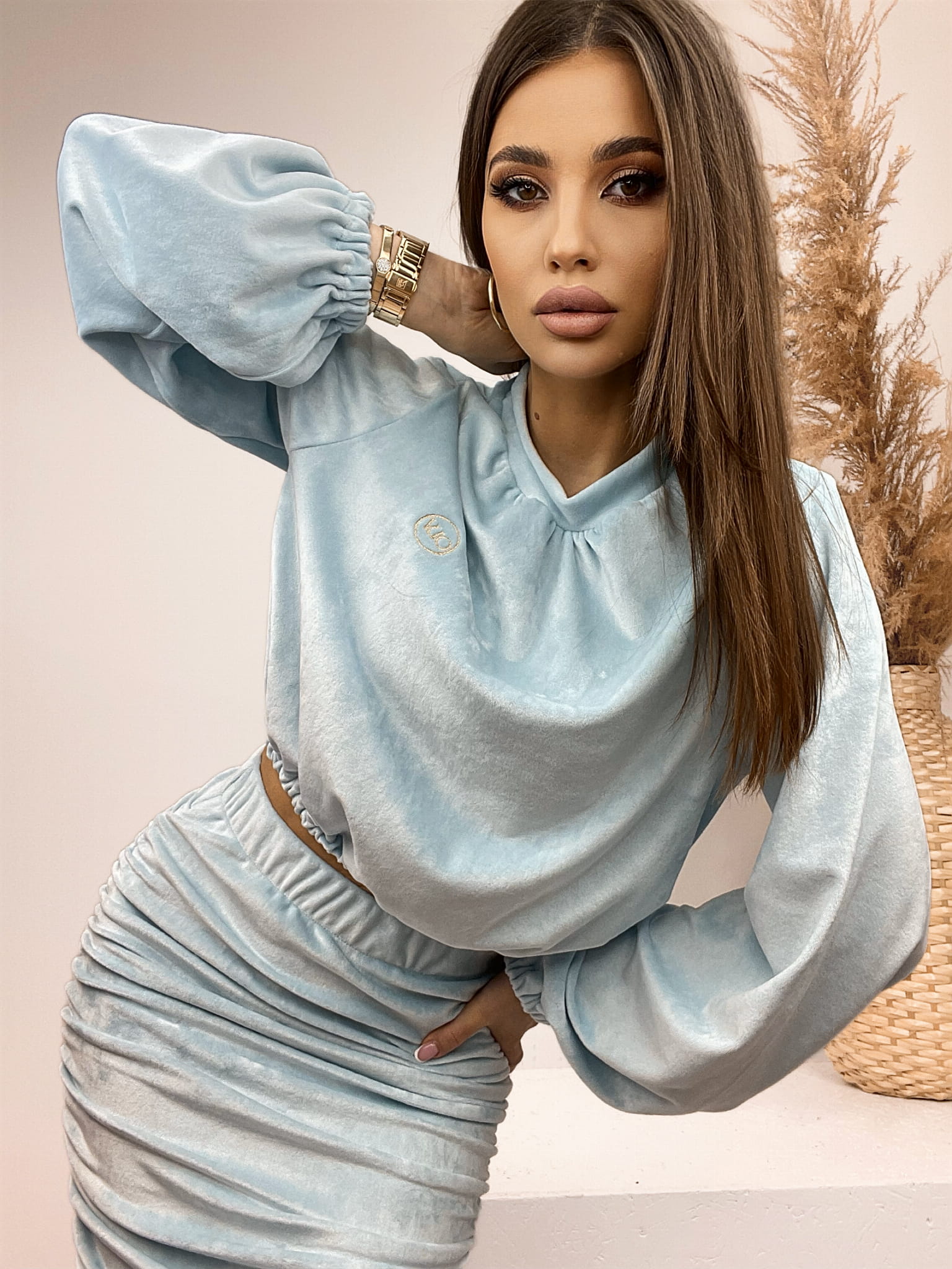 Elegancki komplet damski „BELLA” to idealny wybór na szczególne okazje. Kobiecy fason podkreśli sylwetkę. Długi bufiasty rękaw nada zmysłowości a drapowanie na biodrach seksapilu. Zbliżają się walentynki a to idealna okazja na ten zestaw !
