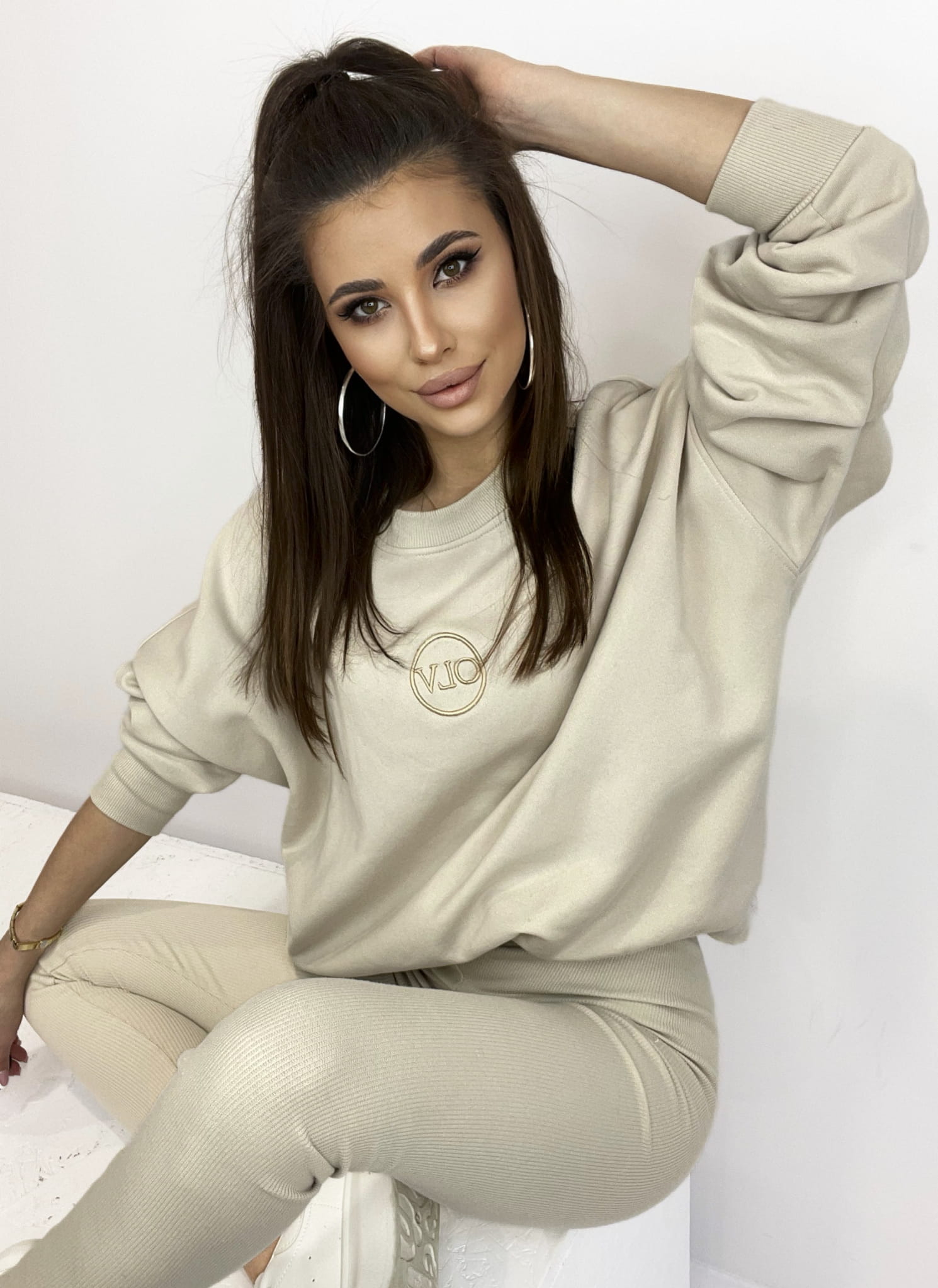 Niesamowicie komfortowy, wykonany z bawełny komplet LAID BACK to jeden z tych zestawów, w którym zakochasz się od pierwszego przymierzenia. Wygodne, dopasowane legginsy i oversize`owa bluza z minimalistycznym haftem na przodzie tworzą bardzo stylową, codzienną stylizację.