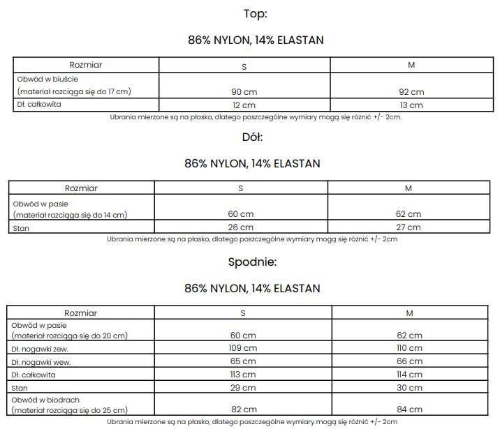 Wakacyjny komplet damski składający się z trzech części. Góra - wiązany top, bez ramiączek, na środku złote V. Dół - figi, zabezpieczone prześwitujących długimi spodniami rozszerzanymi ku dołowi. Logowana guma w pasie