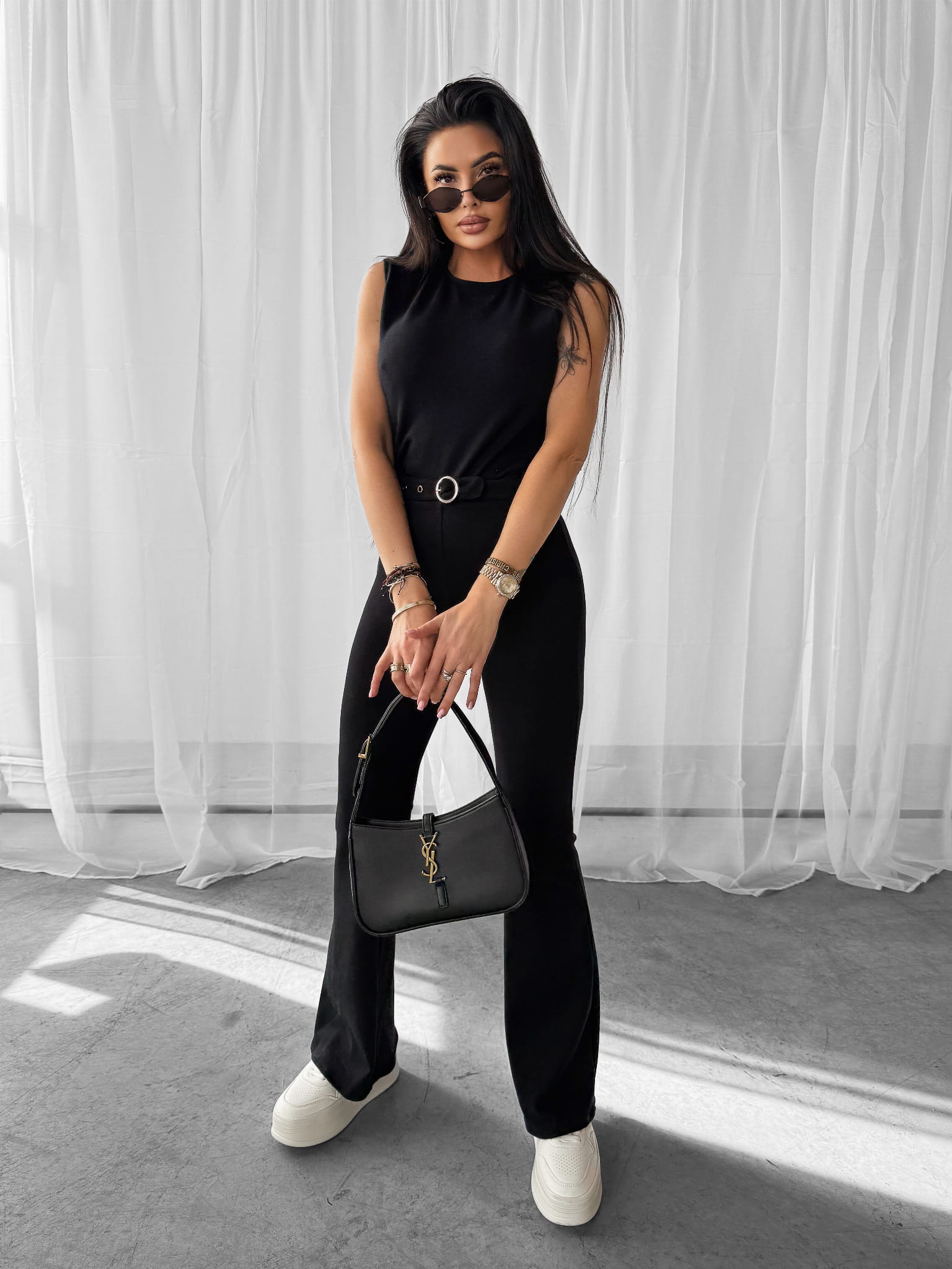 Casualowy komplet, wykonany z wysokiej jakości elastycznej bawełny. Góra - idealnie przylegający top bez rękawów. Tył posiada rozcięcie na plecach z regulowaną talią. Na przodzie haft z logo marki OLAVOGA z odpowiadającym mu wariantem kolorystycznym. Dół - spodnie z regulowaną talią. Nogawki rozszerzane ku dołowi. Na przodzie minimalistyczny haft z logo brandu.