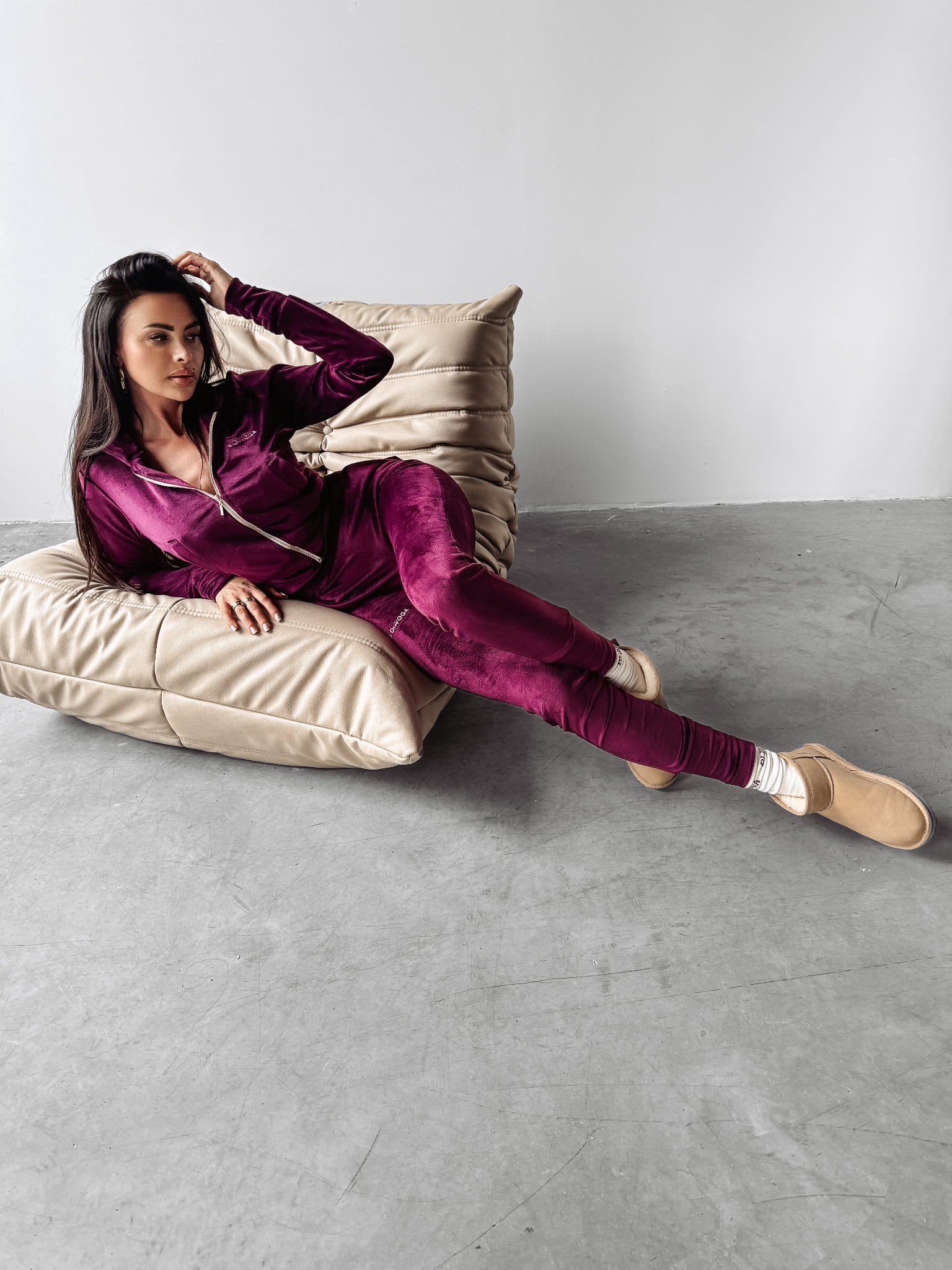 Komplet damski, wykonany z miękkiego w dotyku weluru. Góra - rozpinana bluza z kapturem, o krótszym kroju. Po bokach kieszenie. Produkt posiada minimalistyczny haft z logo marki OLAVOGA. Na tyle obszerny haft 3D z logo brandu. Dół - sportowe spodnie z wysokim stanem. Po bokach kieszenie. Na przodzie minimalistyczne logo marki.