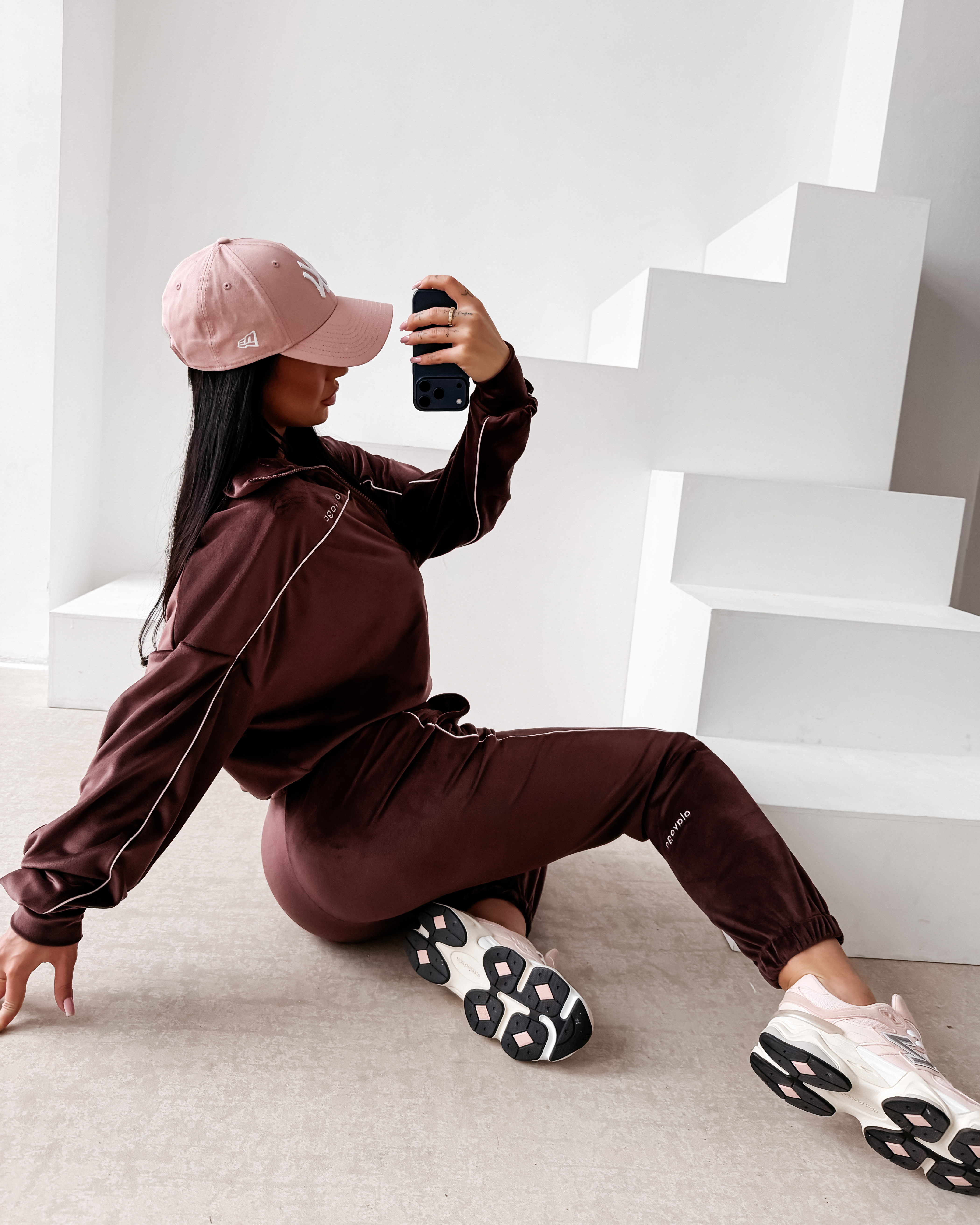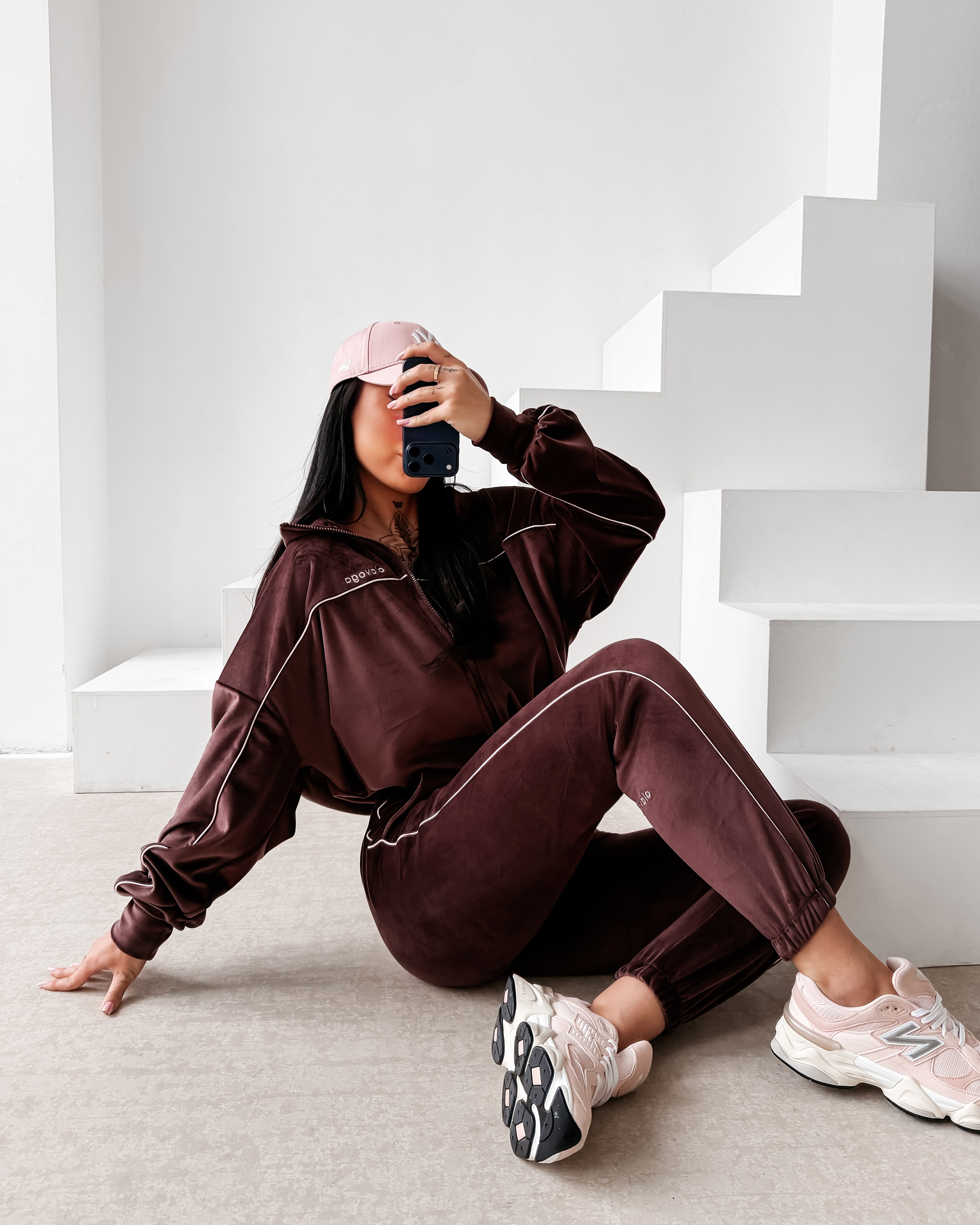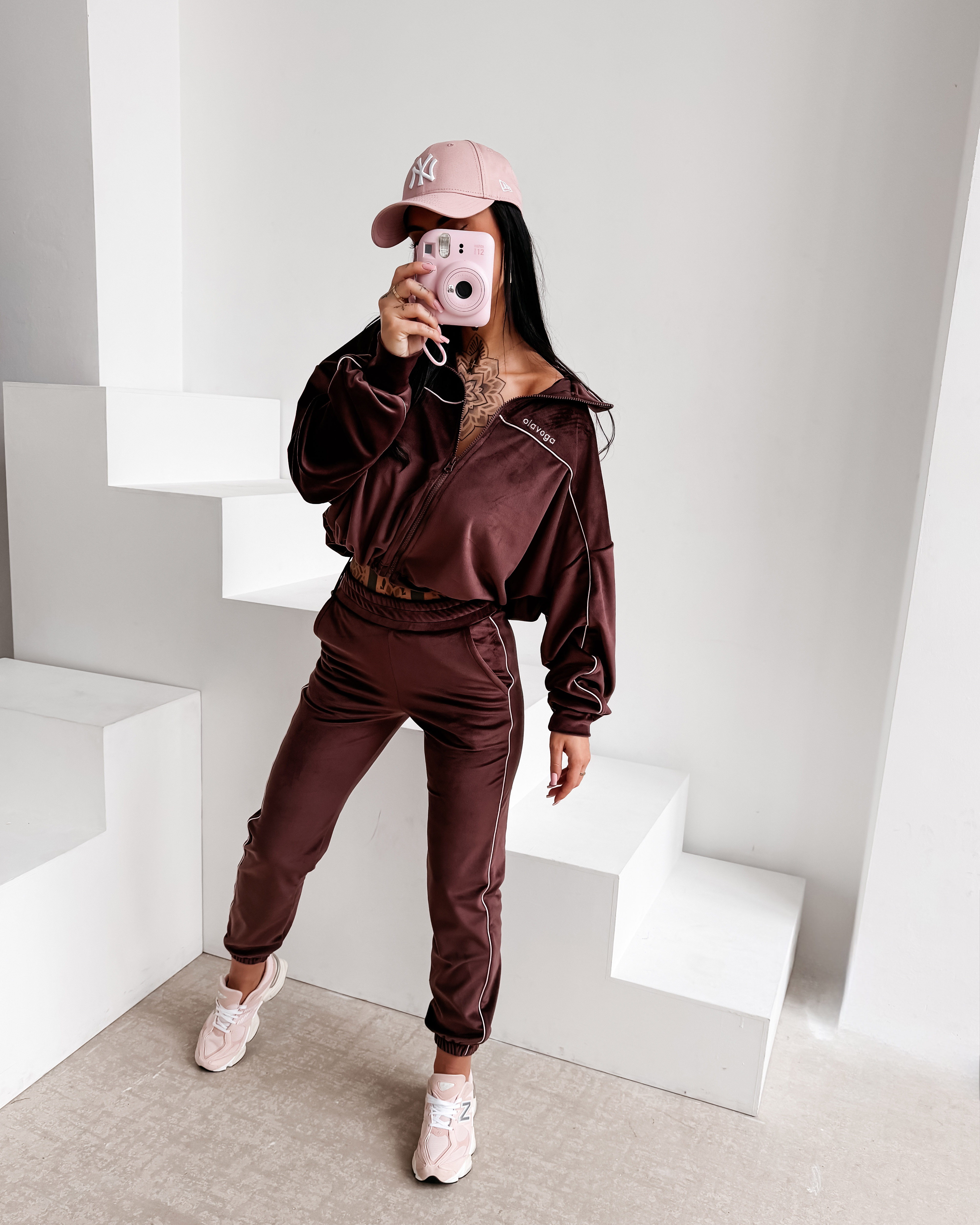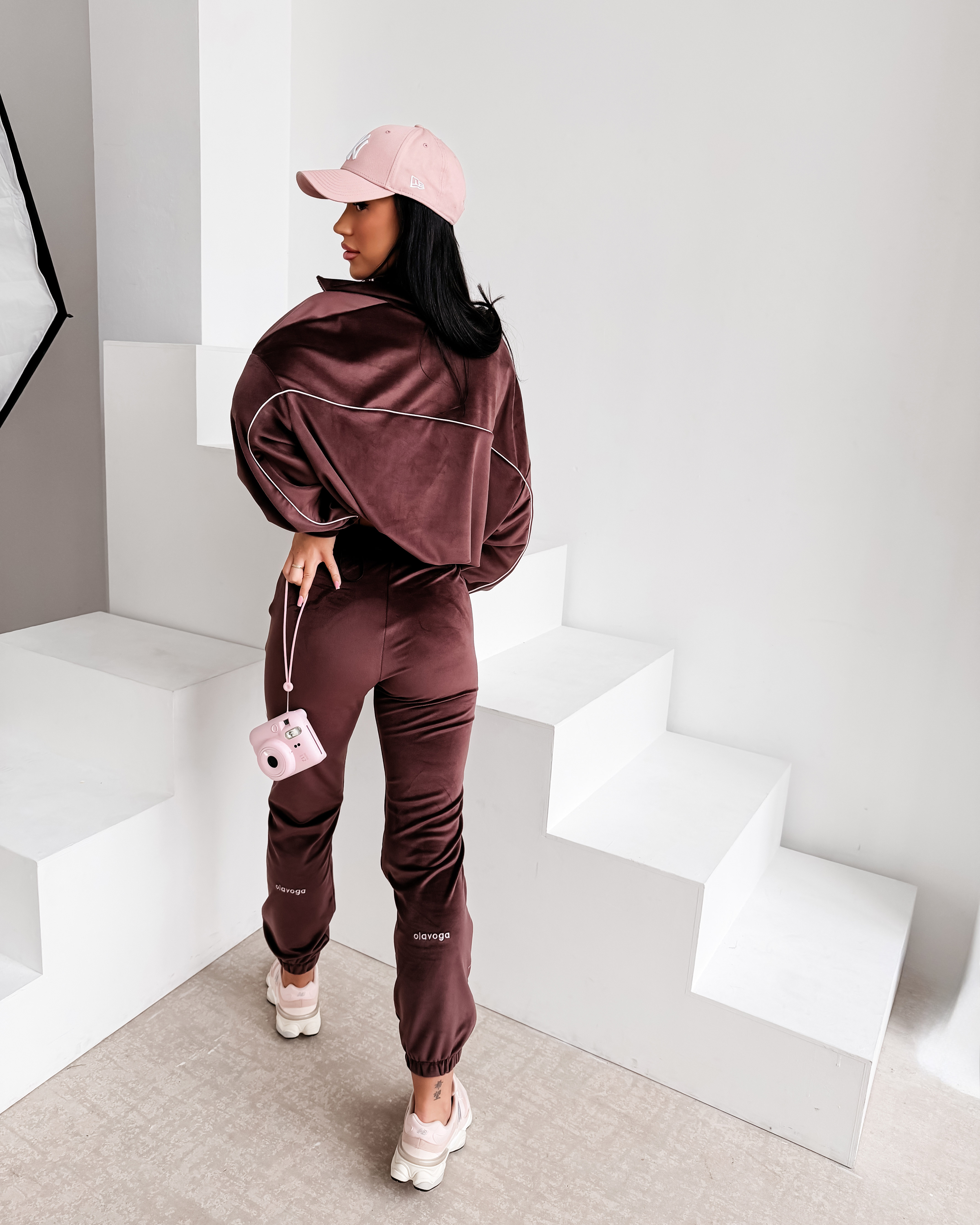Komplet dresowy wykonany z miękkiej, przyjemnej w dotyku tkaniny. Bluza zapinana na suwak z delikatnymi kontrastowymi przeszyciami i minimalistycznym logo marki OLAVOGA tworzy spójną całość ze spodniami o wygodnym kroju. Ważne aspekty: bluza zapinana na suwak, subtelne kontrastowe lamówki podkreślające linię sylwetki, minimalistyczne logo OLAVOGA na bluzie, spodnie z elastycznym pasem, miękka, komfortowa tkanina, praktyczne kieszenie po bokach, nogawki zakończone ściągaczami.