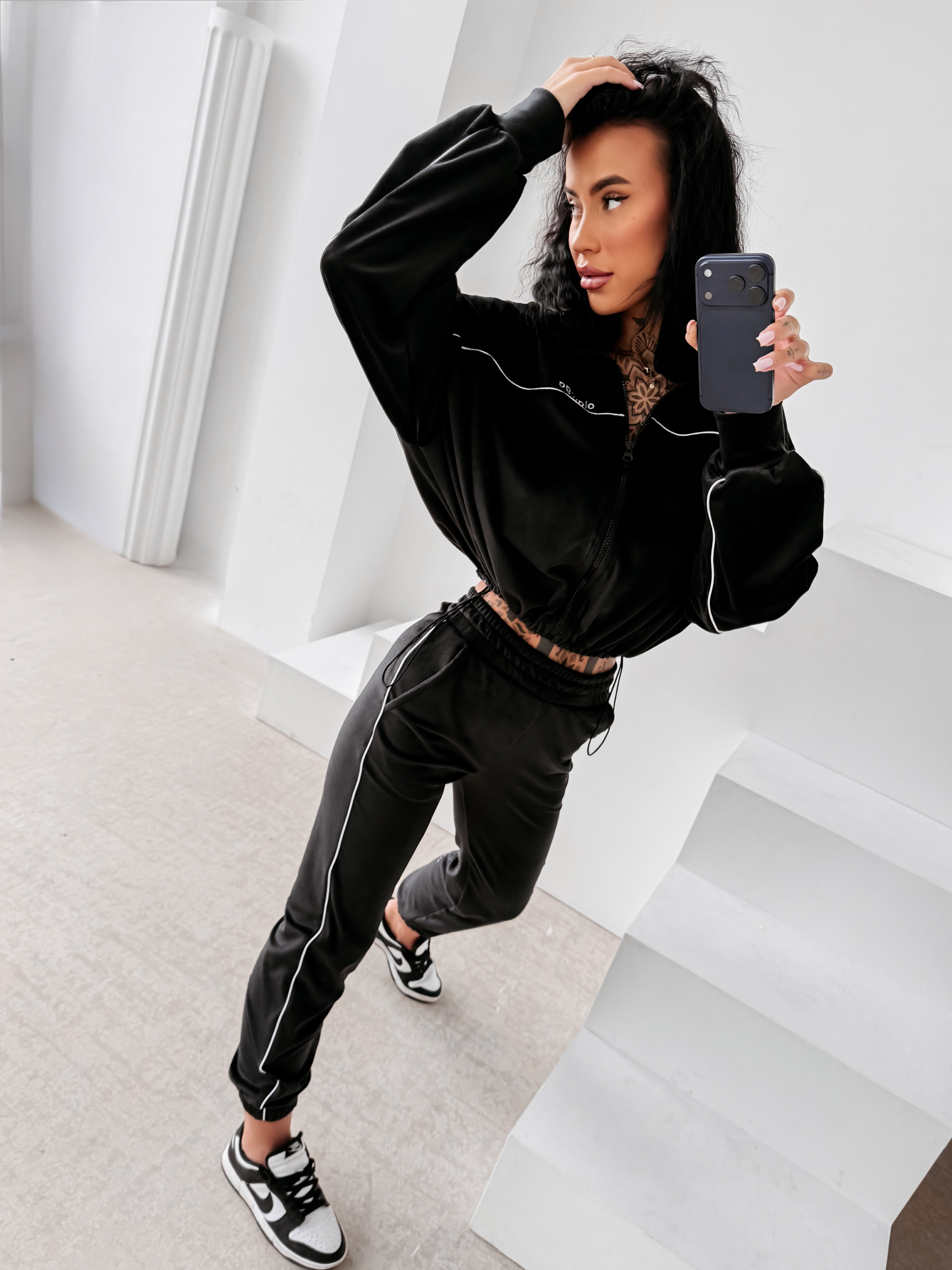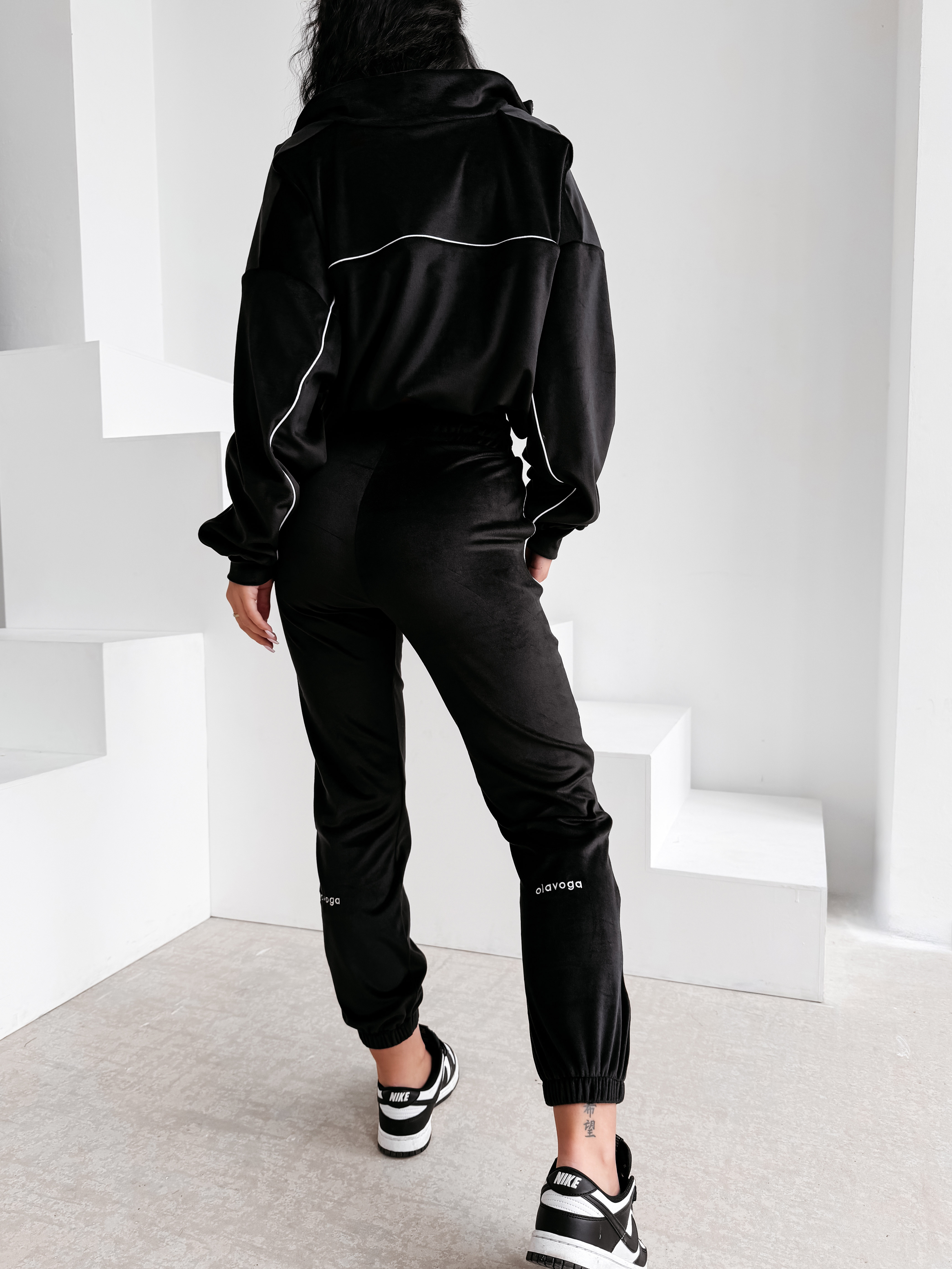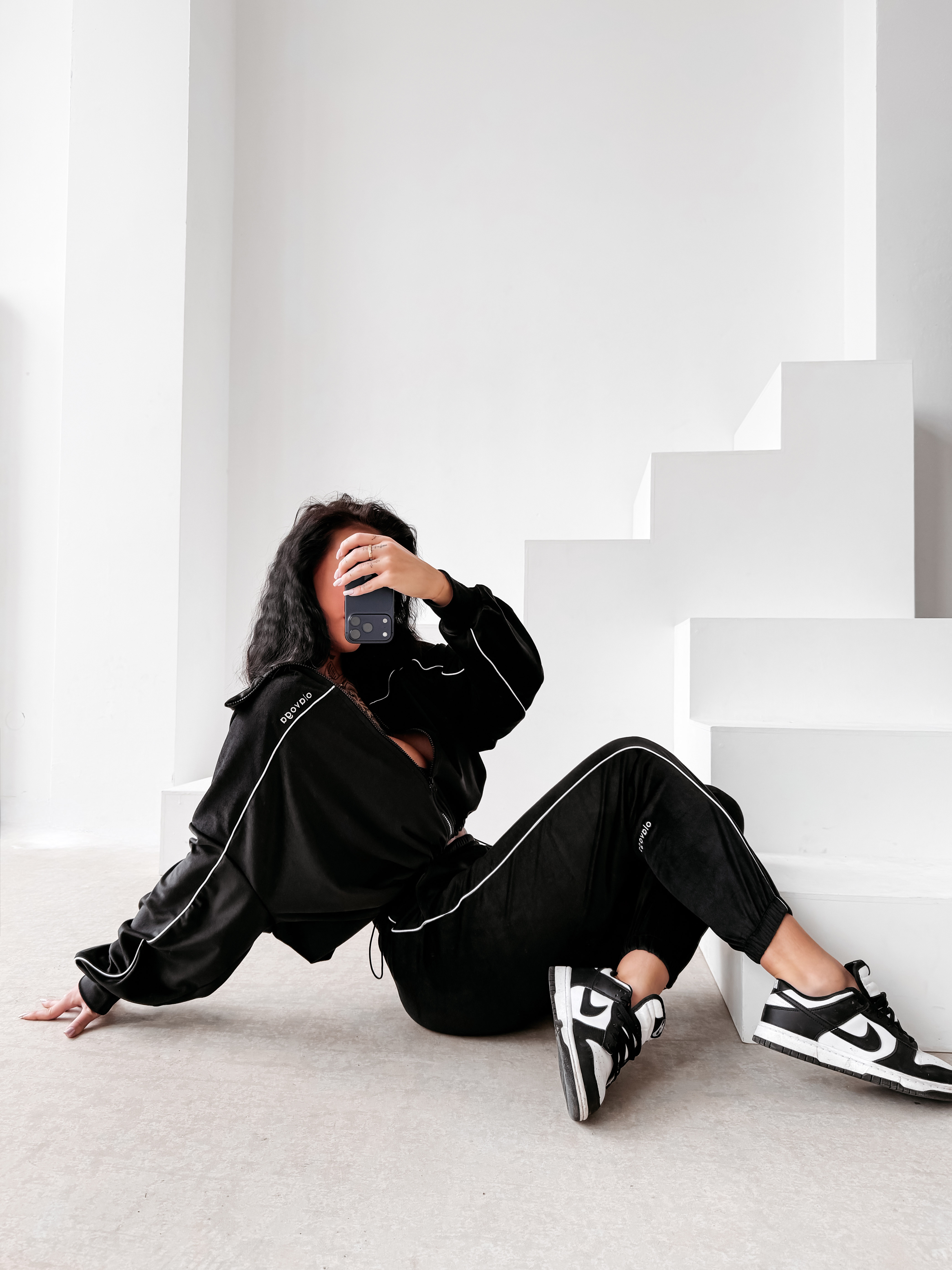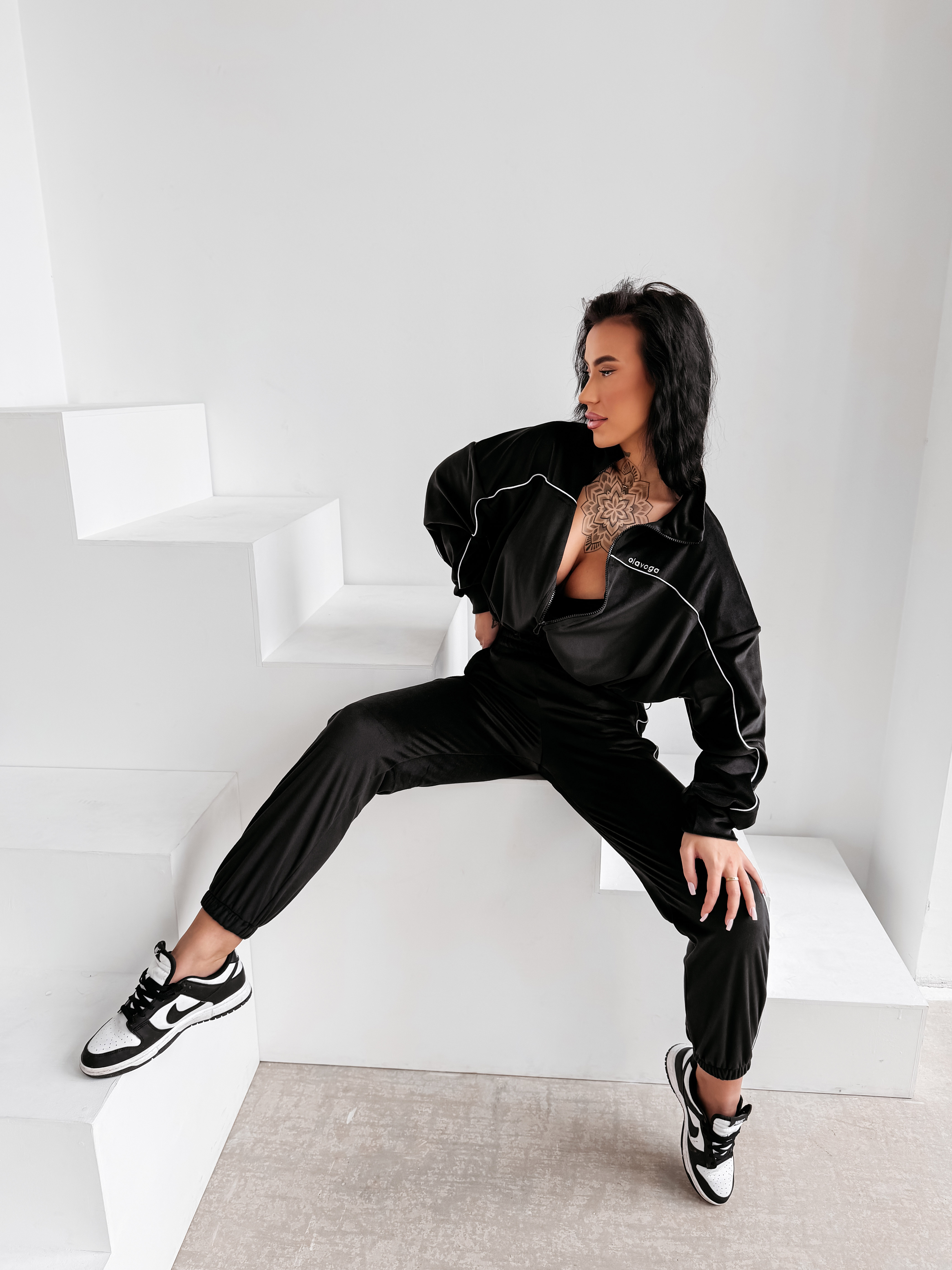 Komplet dresowy wykonany z miękkiej, przyjemnej w dotyku tkaniny. Bluza zapinana na suwak z delikatnymi kontrastowymi przeszyciami i minimalistycznym logo marki OLAVOGA tworzy spójną całość ze spodniami o wygodnym kroju. Ważne aspekty: bluza zapinana na suwak, subtelne kontrastowe lamówki podkreślające linię sylwetki, minimalistyczne logo OLAVOGA na bluzie, spodnie z elastycznym pasem, miękka, komfortowa tkanina, praktyczne kieszenie po bokach, nogawki zakończone ściągaczami.