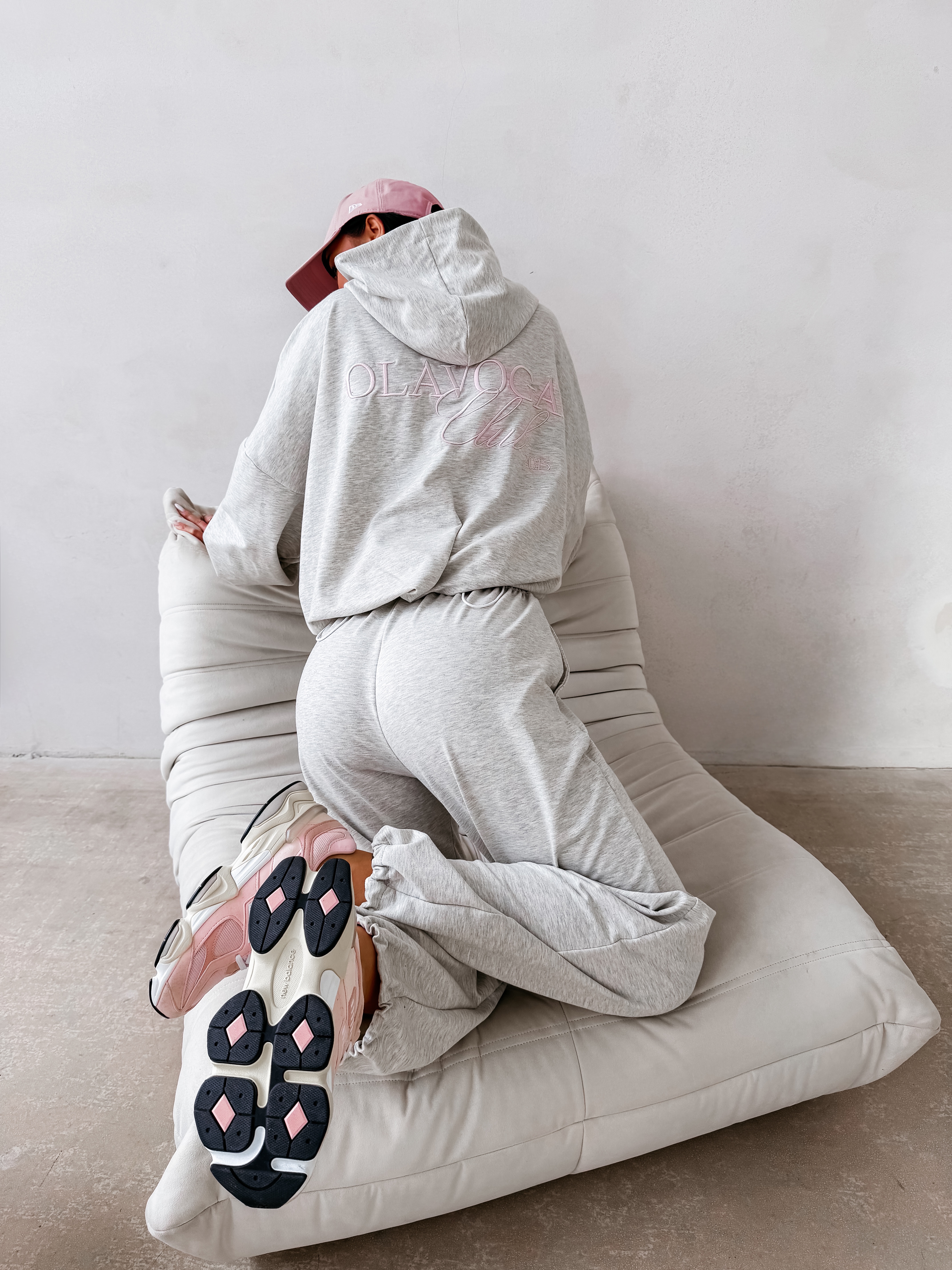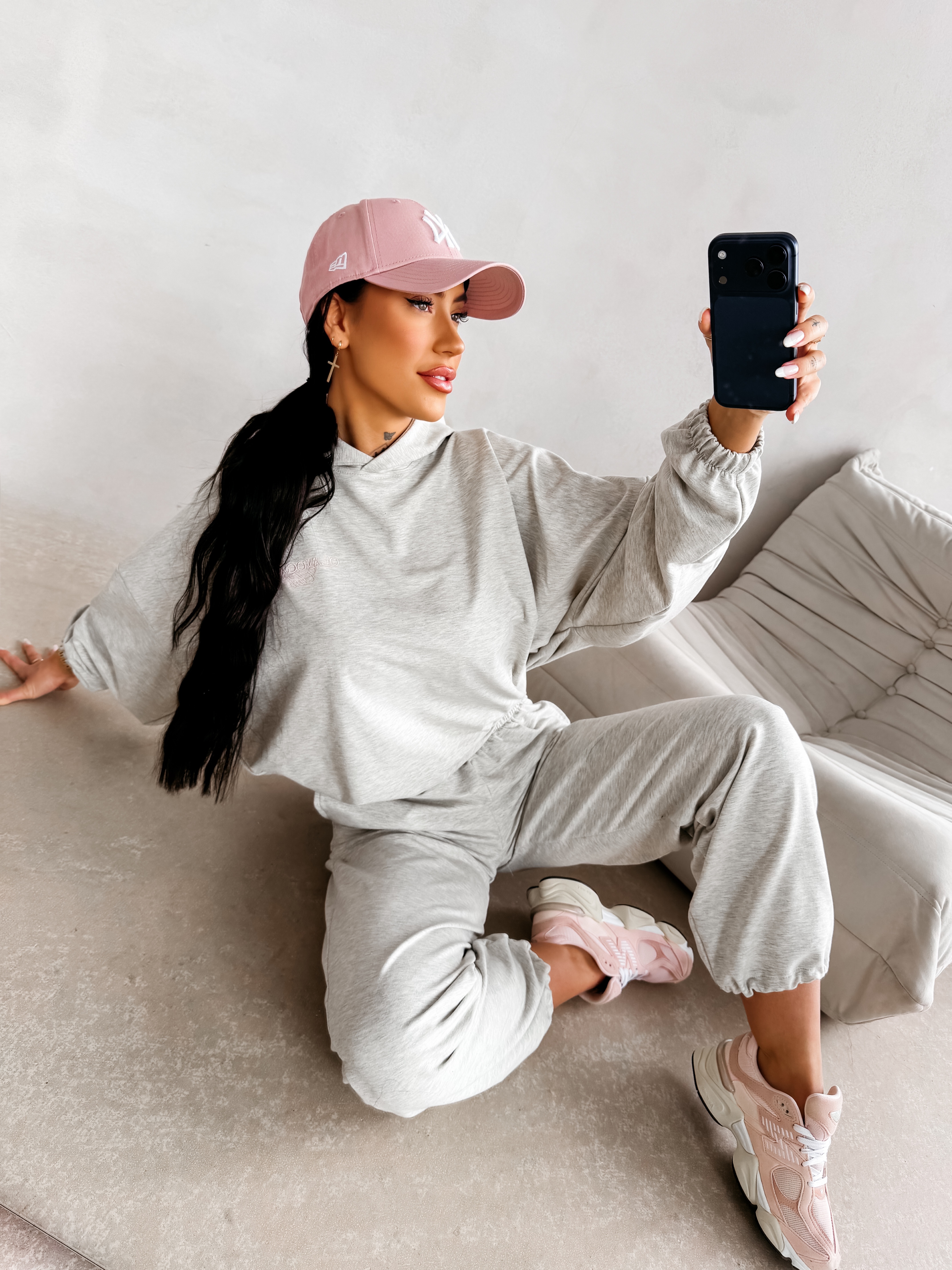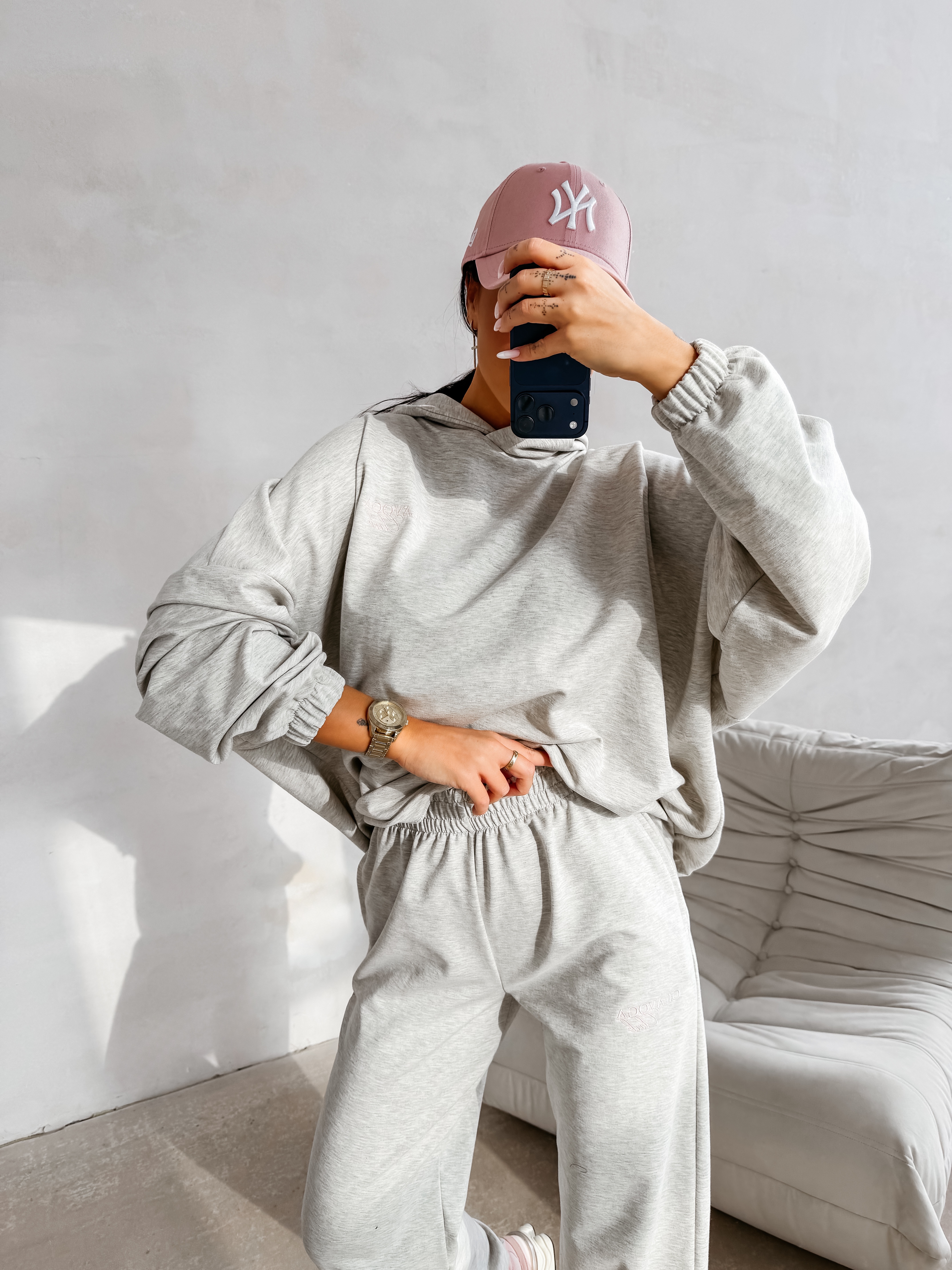 Komplet dresowy o swobodnym, komfortowym fasonie, składający się z bluzy z kapturem oraz spodni z elastycznym pasem. Wykonany z miękkiej, przyjemnej w dotyku dzianiny, zapewniającej wygodę na co dzień. Bluza ozdobiona subtelnym logowaniem oraz efektownymi haftami i nadrukami z motywem ust i napisem OLAVOGA Club, spodnie z delikatnym logo. Ważne aspekty: swobodny krój, kaptur, miękka dzianina, elastyczny pas, hafty i nadruki z motywem ust, logowanie OLAVOGA, casual-sportowy styl.