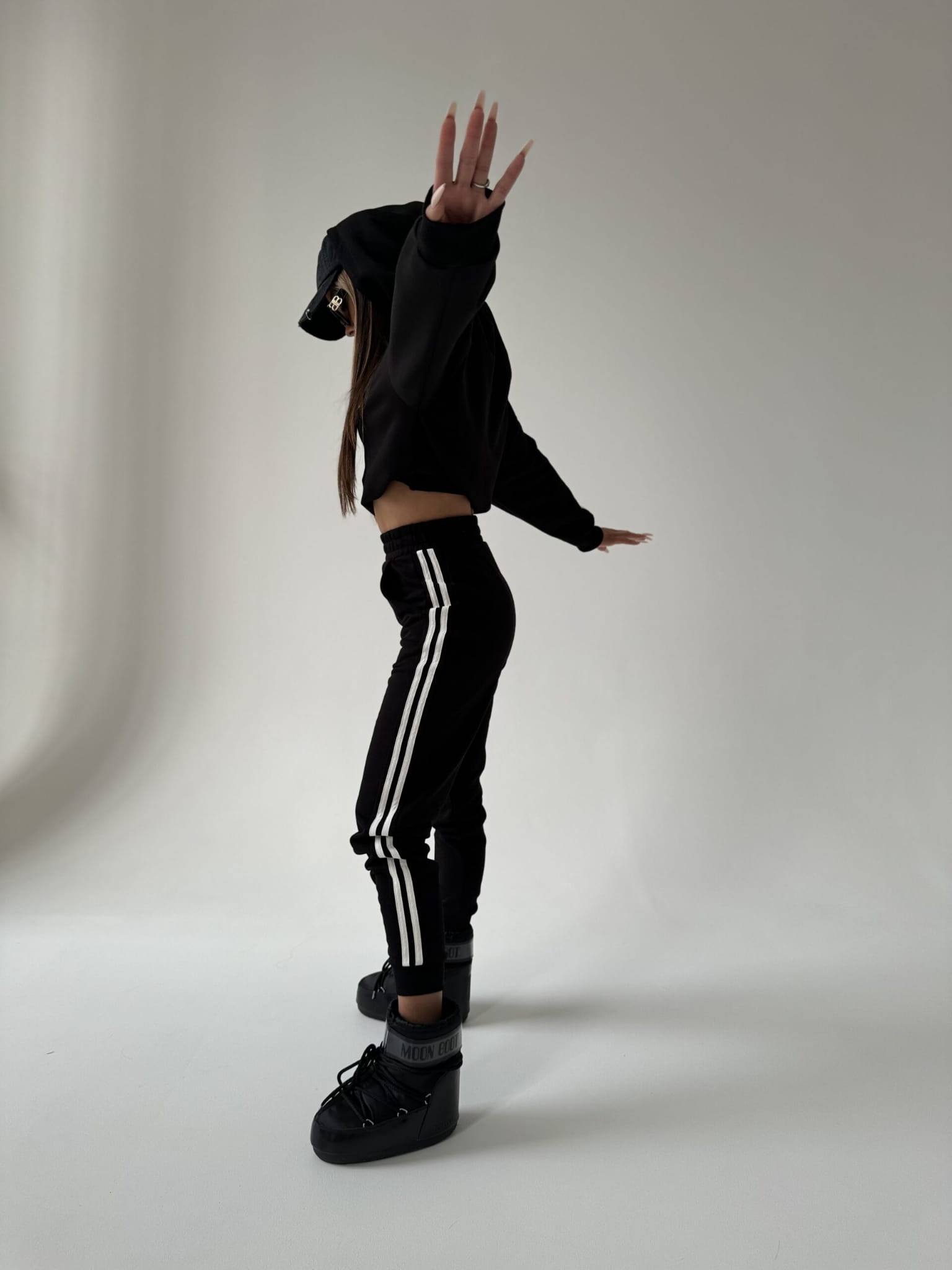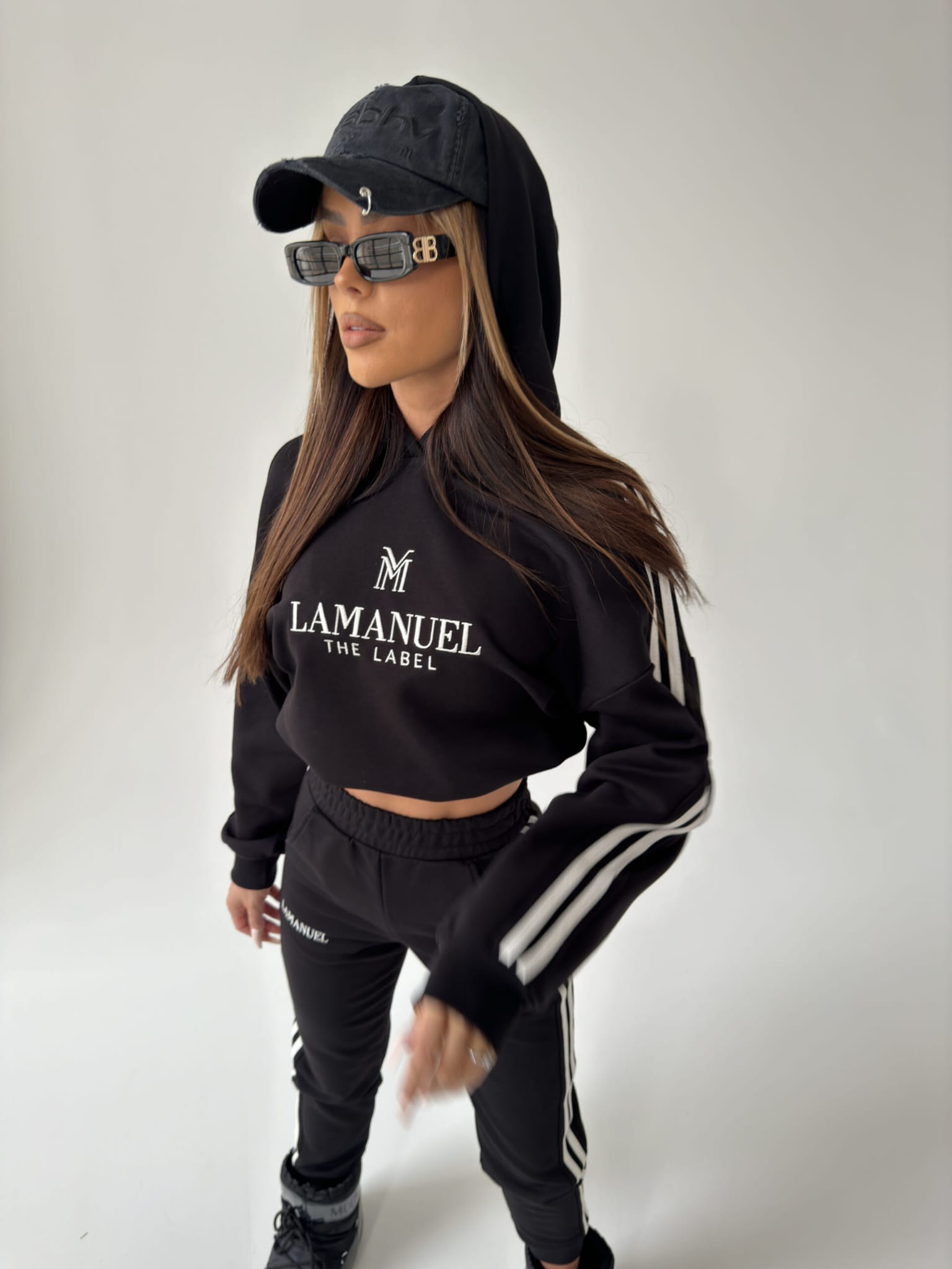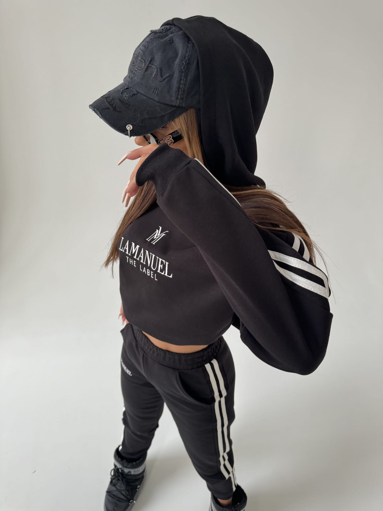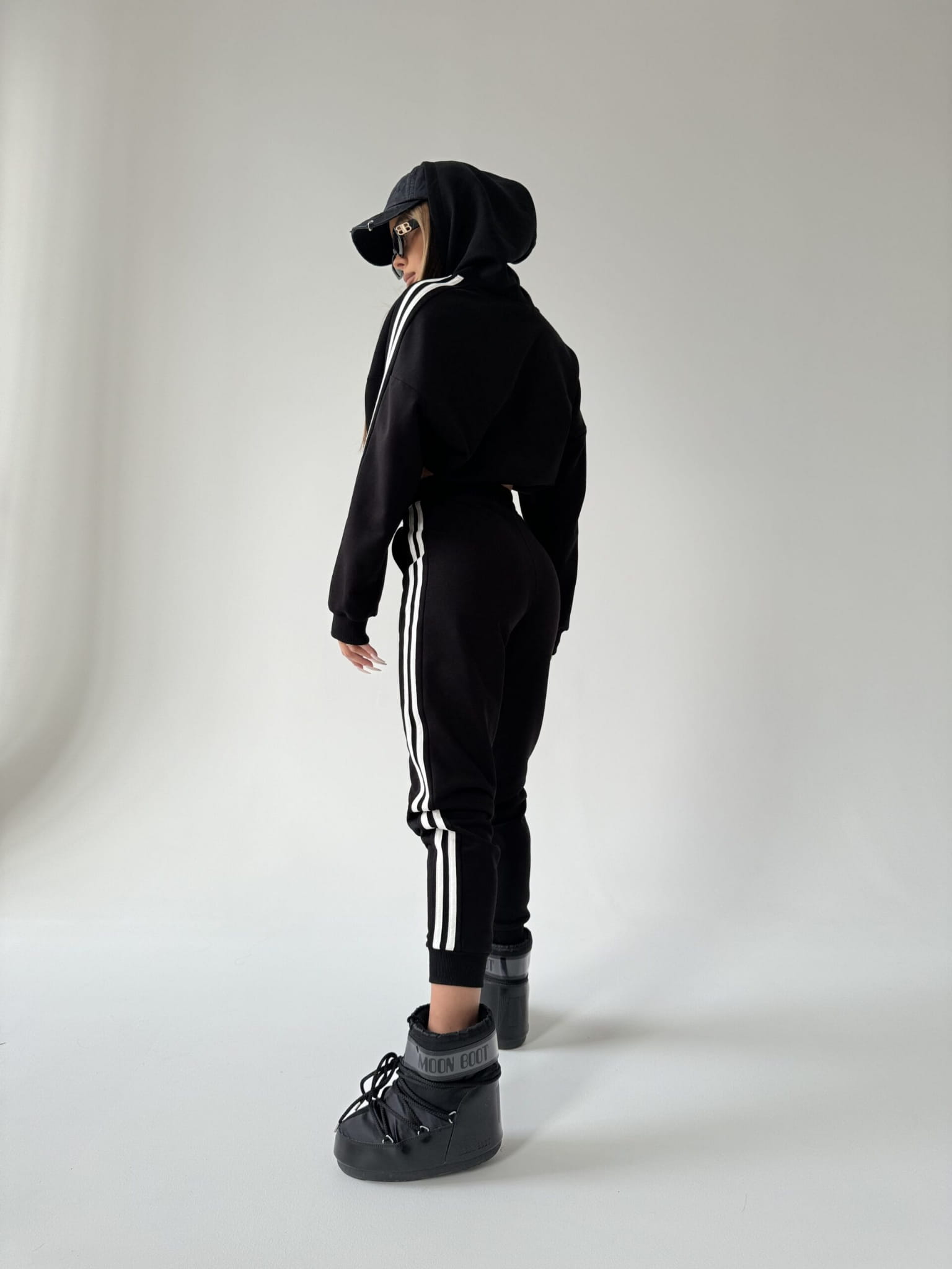 Odkryj nowy wymiar stylu z naszym niepowtarzalnym kompletu damskim, stworzonym z myślą o współczesnych trendach i niepowtarzalnym designie. Komplet składa się z bluzy z kapturem oraz spodni z podwyższonym stanem z gumą w pasie.. Wykonana z wysokiej jakości miękkiego materiału, bluza damska prezentuje się nie tylko stylowo, ale również zapewnia wyjątkowy komfort noszenia. Zarówno spodnie jak i bluzę zdobią białe lampasy po bokach, nadając całemu zestawowi dynamicznego charakteru. Wykonany z wysokiej jakości miękkiego materiału. Nasza definicja komfortu na co dzień!