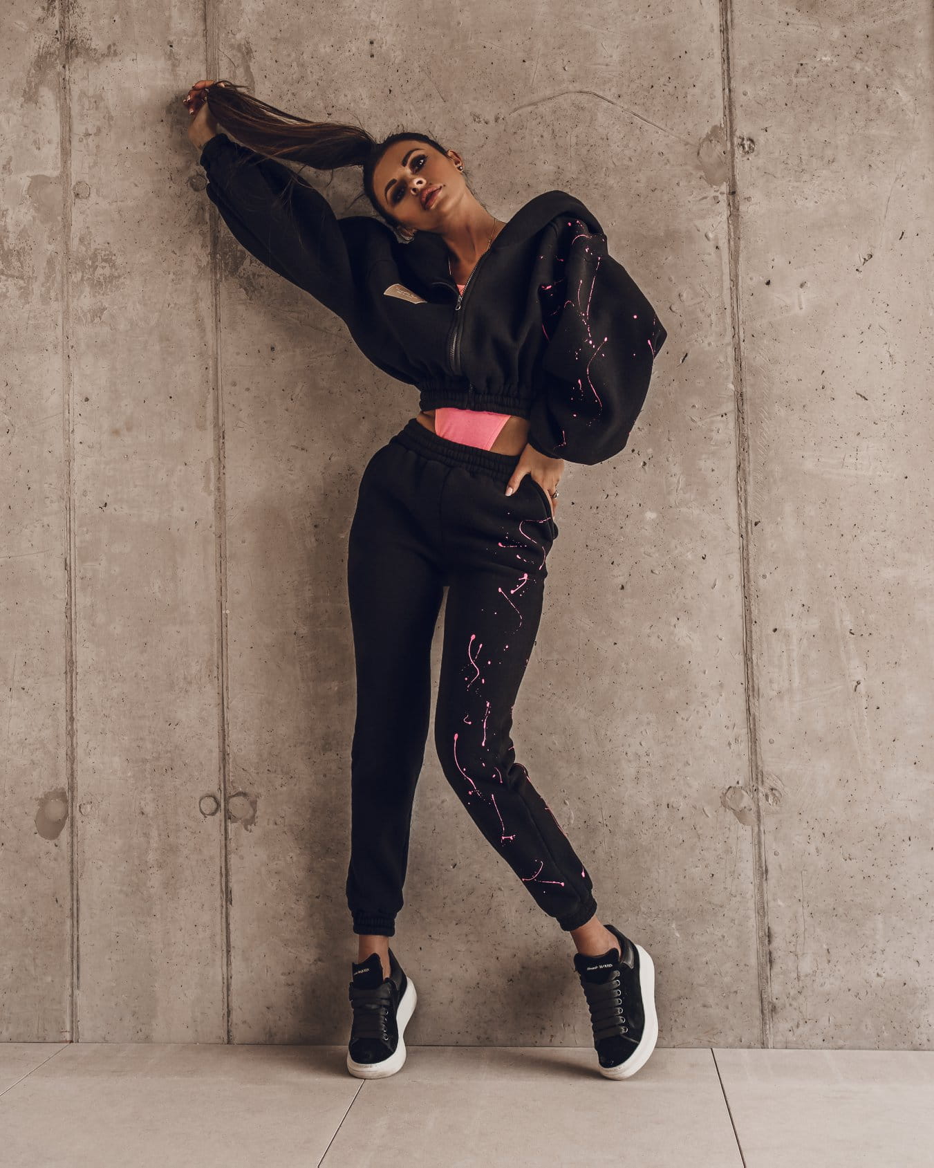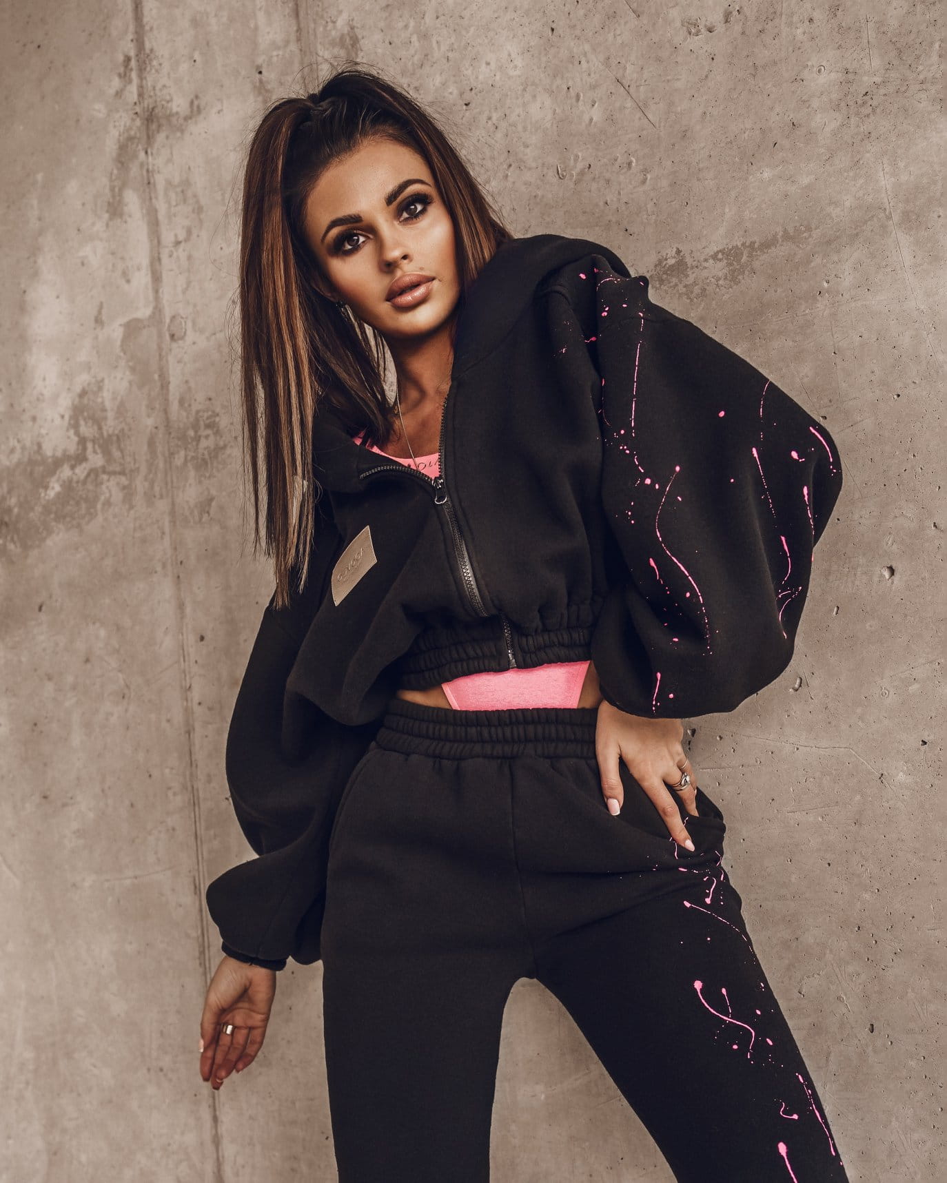 KOMPLET LOOSE CZARNY NEON RÓŻ