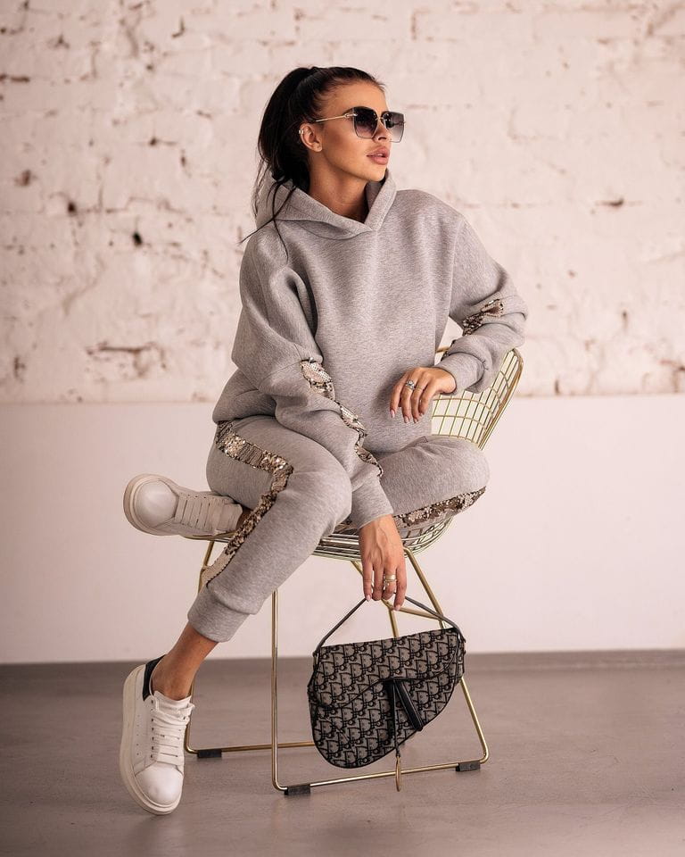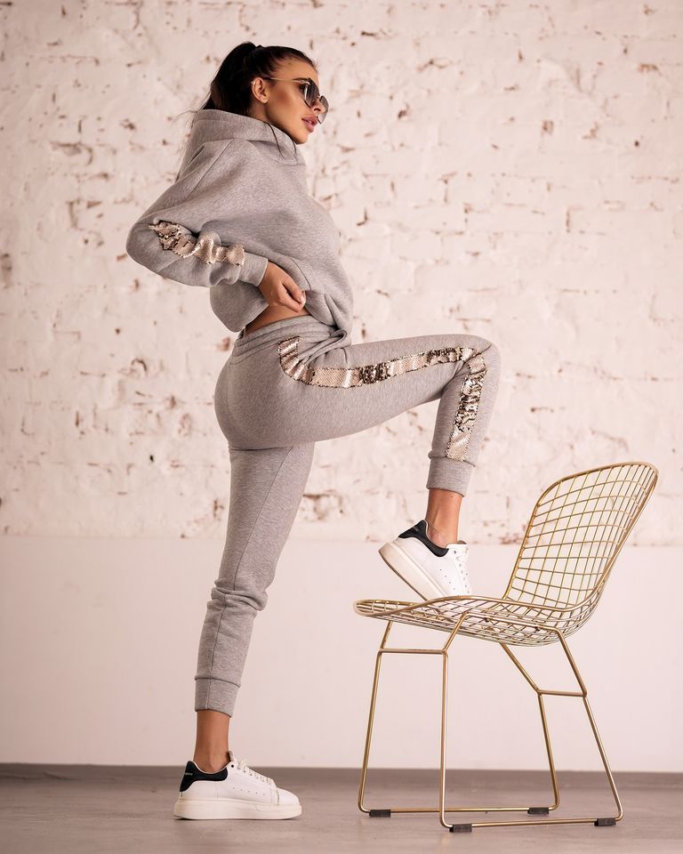 KOMPLET SEQUIN STRIPES SZARY