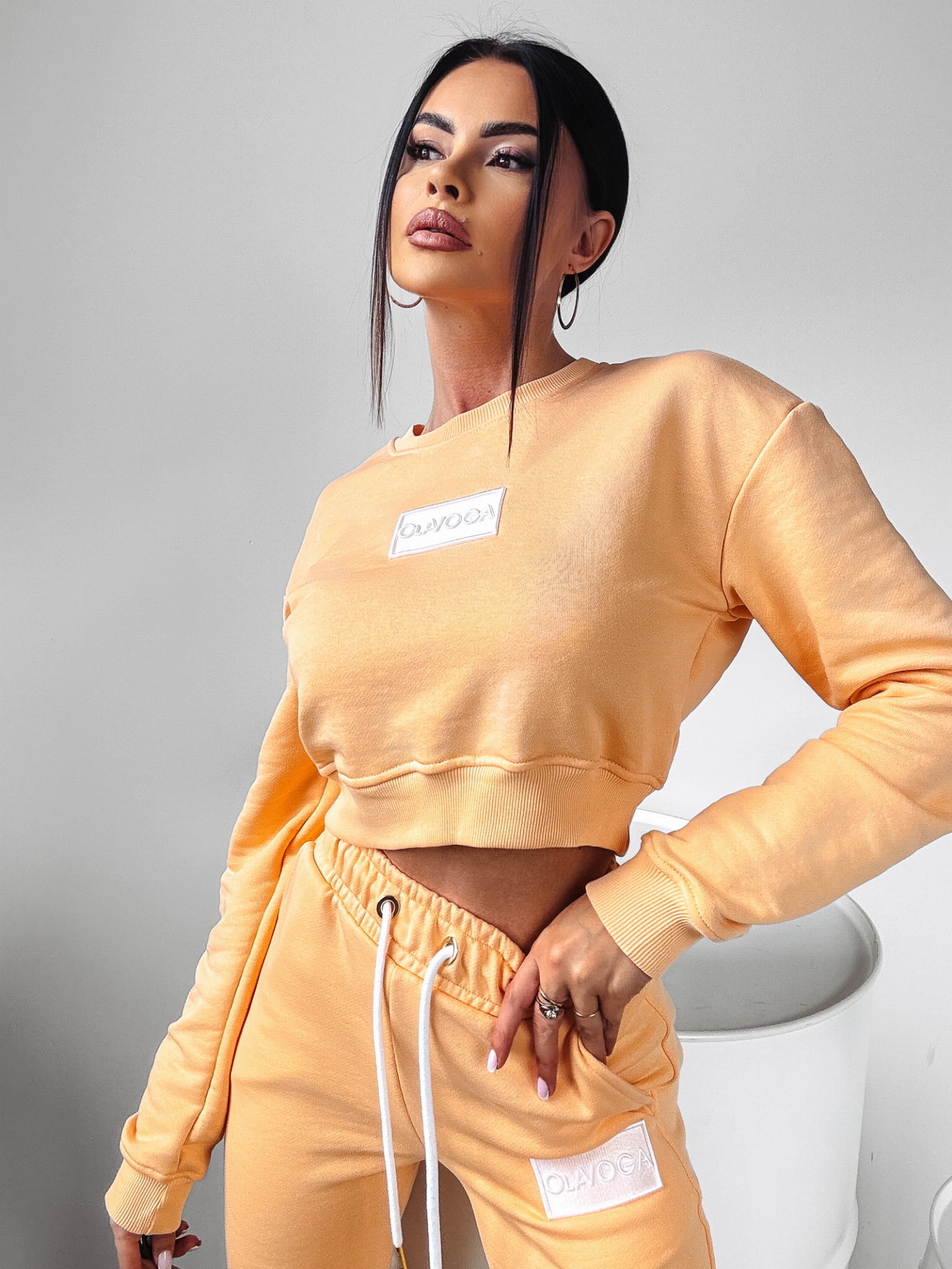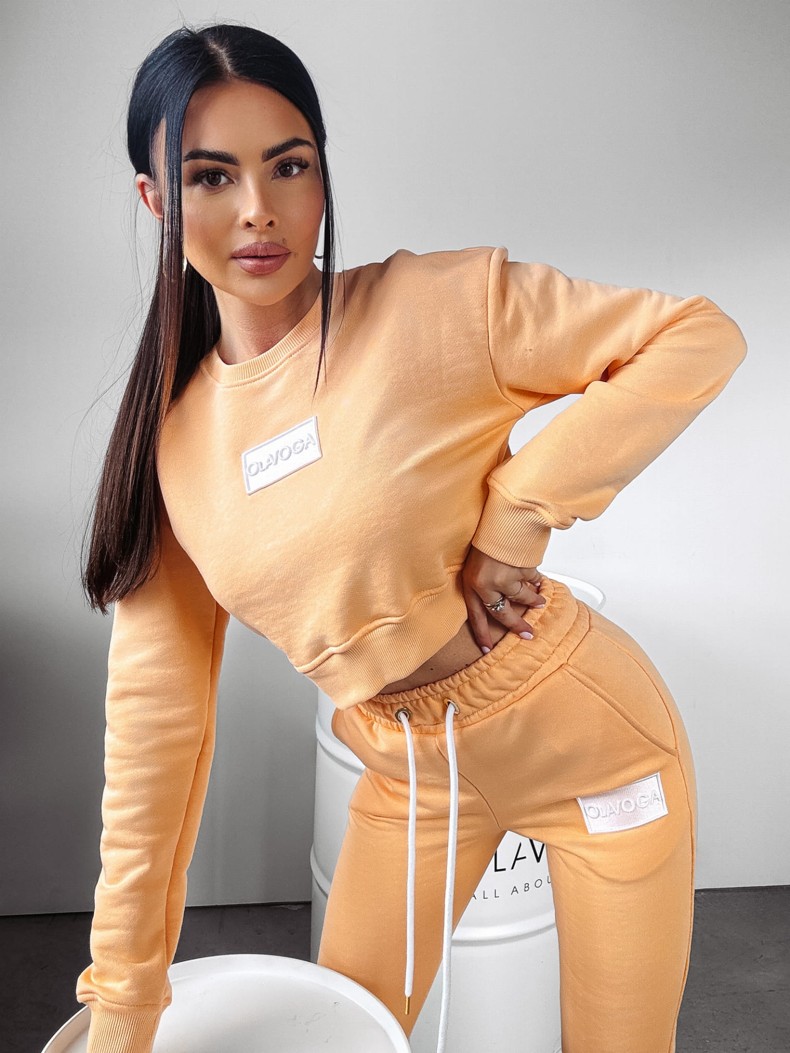 Komplet damski uszyty z wysokiej jakości materiału dresowego. Góra - bluza typu crewneck z naszywką z haftem OLAVOGA na przodzie. Bluza i spodnie zakończone ściągaczem. Regulacja poprzez sznurki. Na nogawce ta sama naszywka.