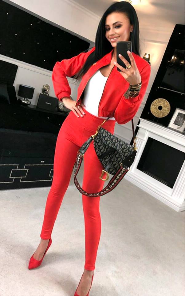 Piękny komplet w kolorze czerwonym.