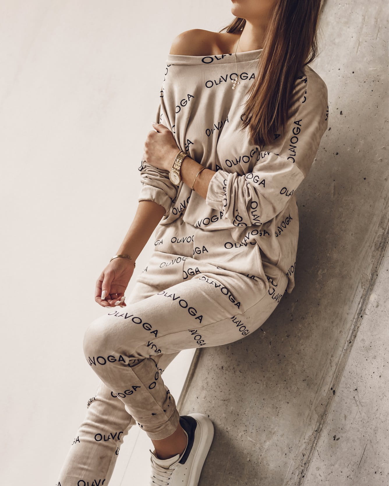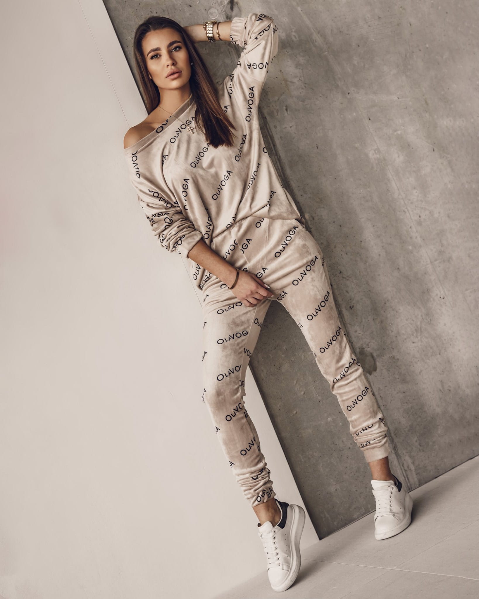 KOMPLET VELOR LOGO BEŻOWY