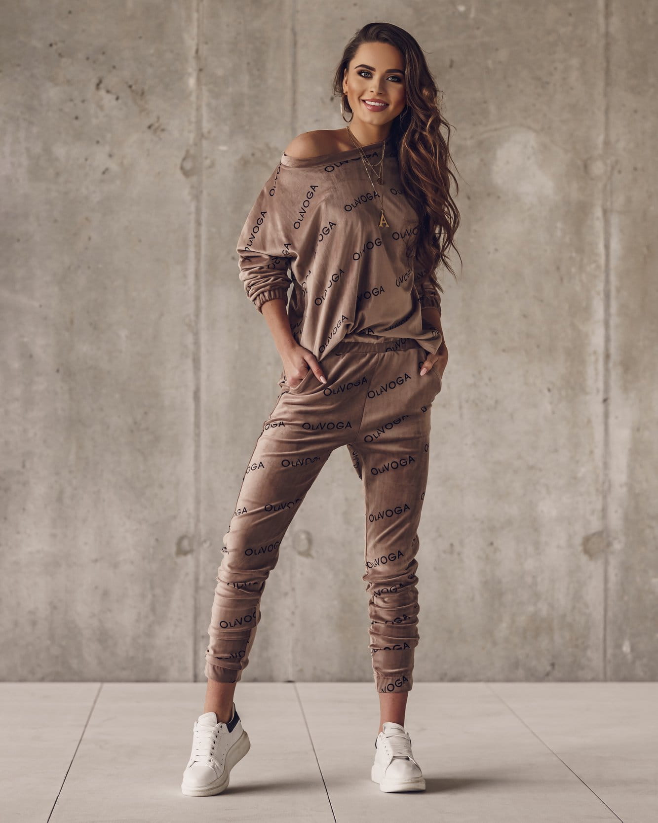 KOMPLET VELOR LOGO CIEMNY BEŻ