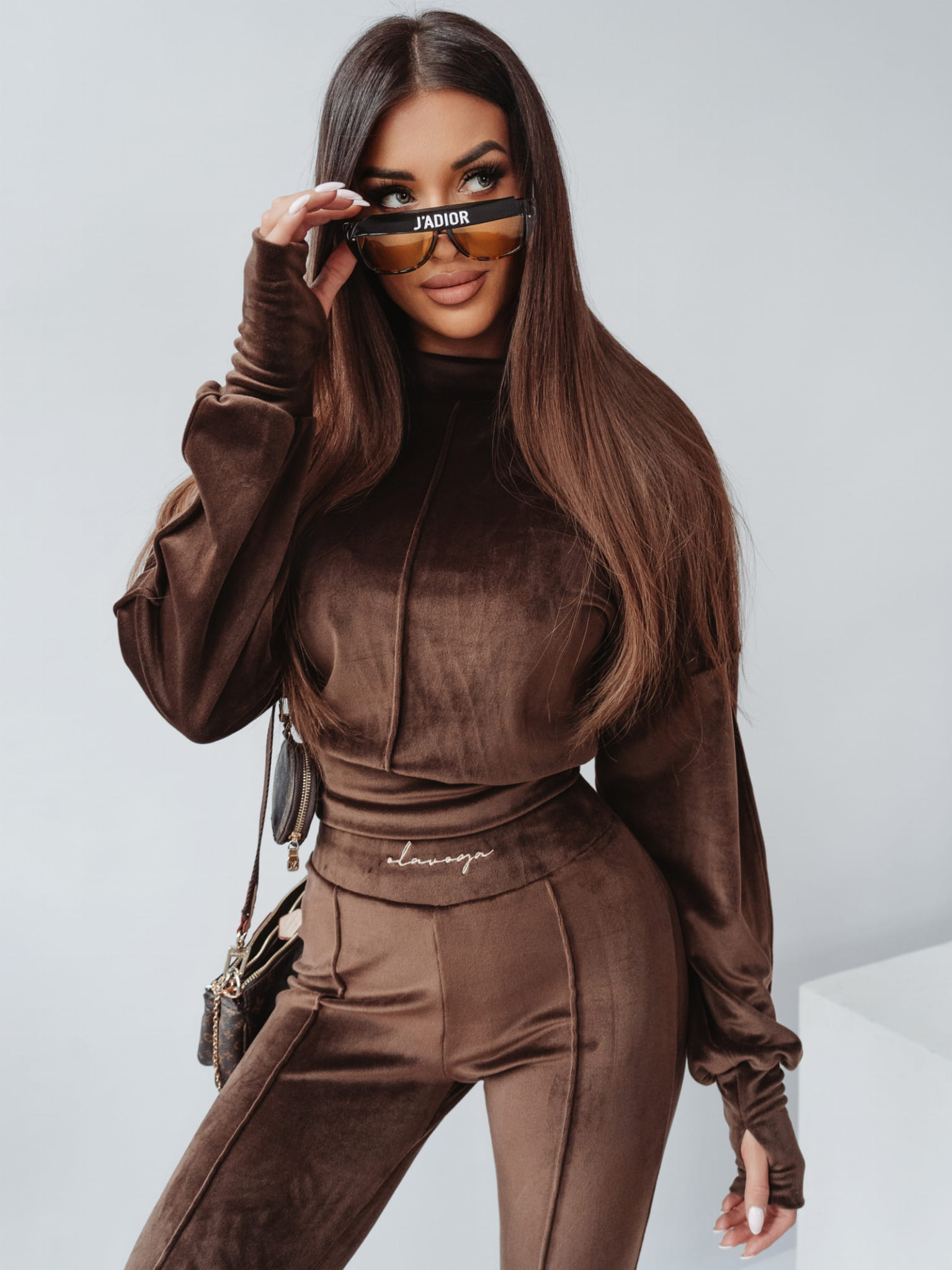 KOMPLET VELVET MISTRESS CZEKOLADOWY