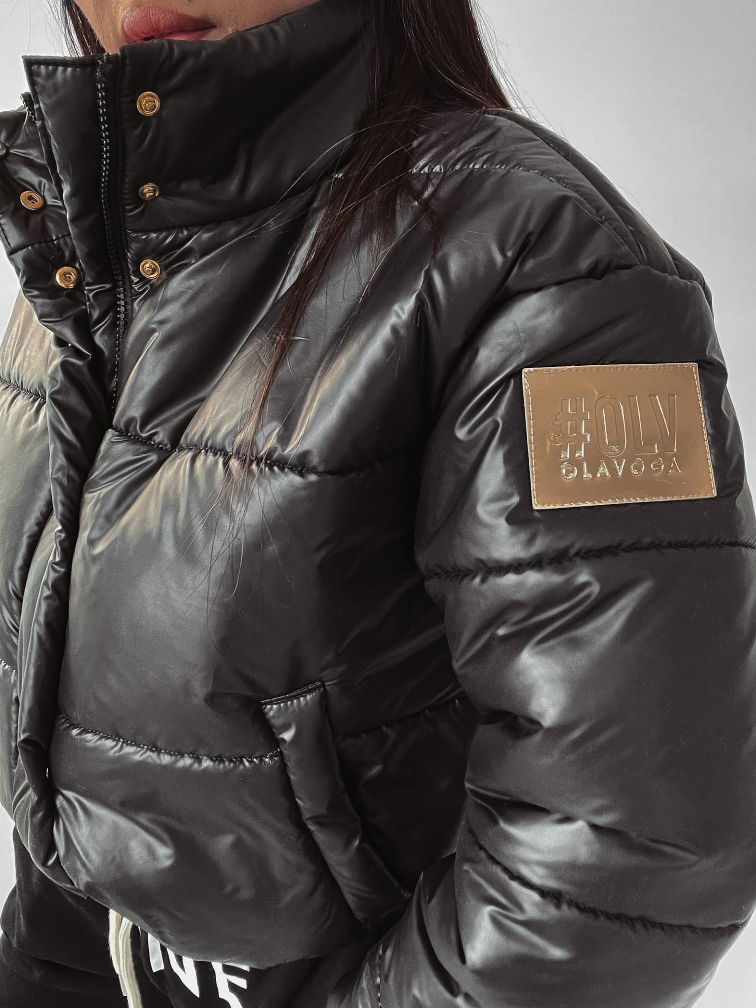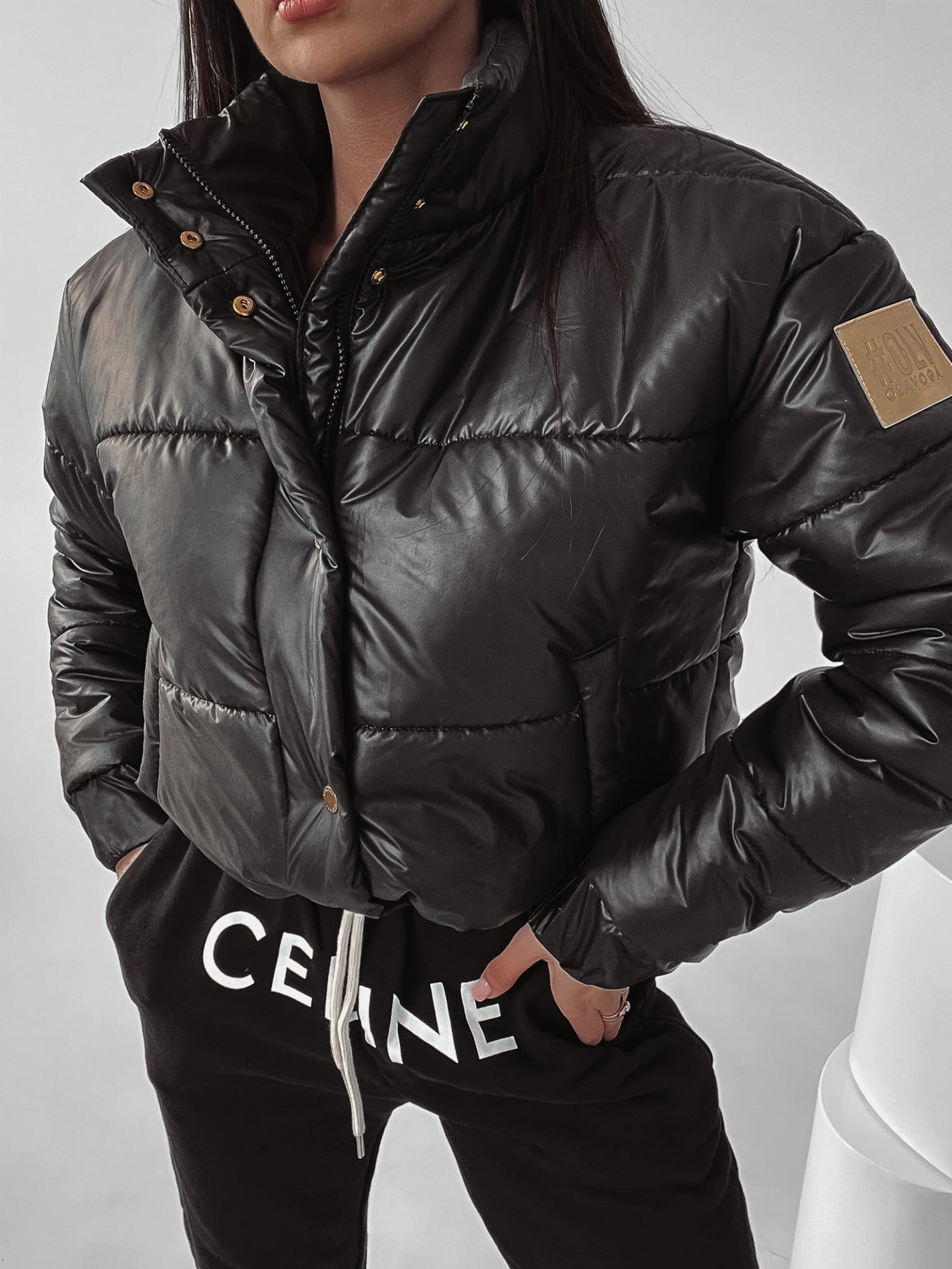 Pikowana, sportowa kurtka z kołnierzem typu stójka. Zapinana na suwak i ozdobne, złote napy. Na ramieniu naszyta przykuwająca oko złota naszywka.