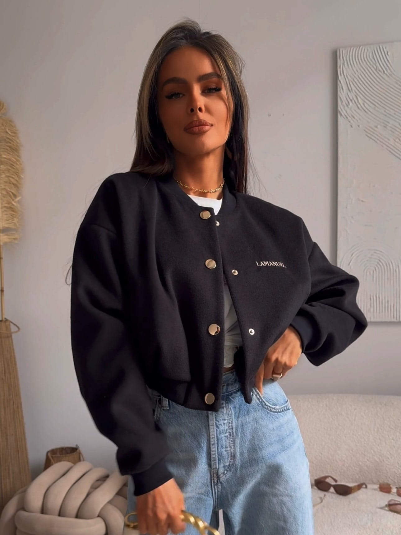Stylowa kurtka bomber o krótkim kroju to idealne połączenie klasyki i nowoczesności. Wykonana z wysokiej jakości materiału, zapewnia komfort noszenia i doskonałe dopasowanie do sylwetki.
