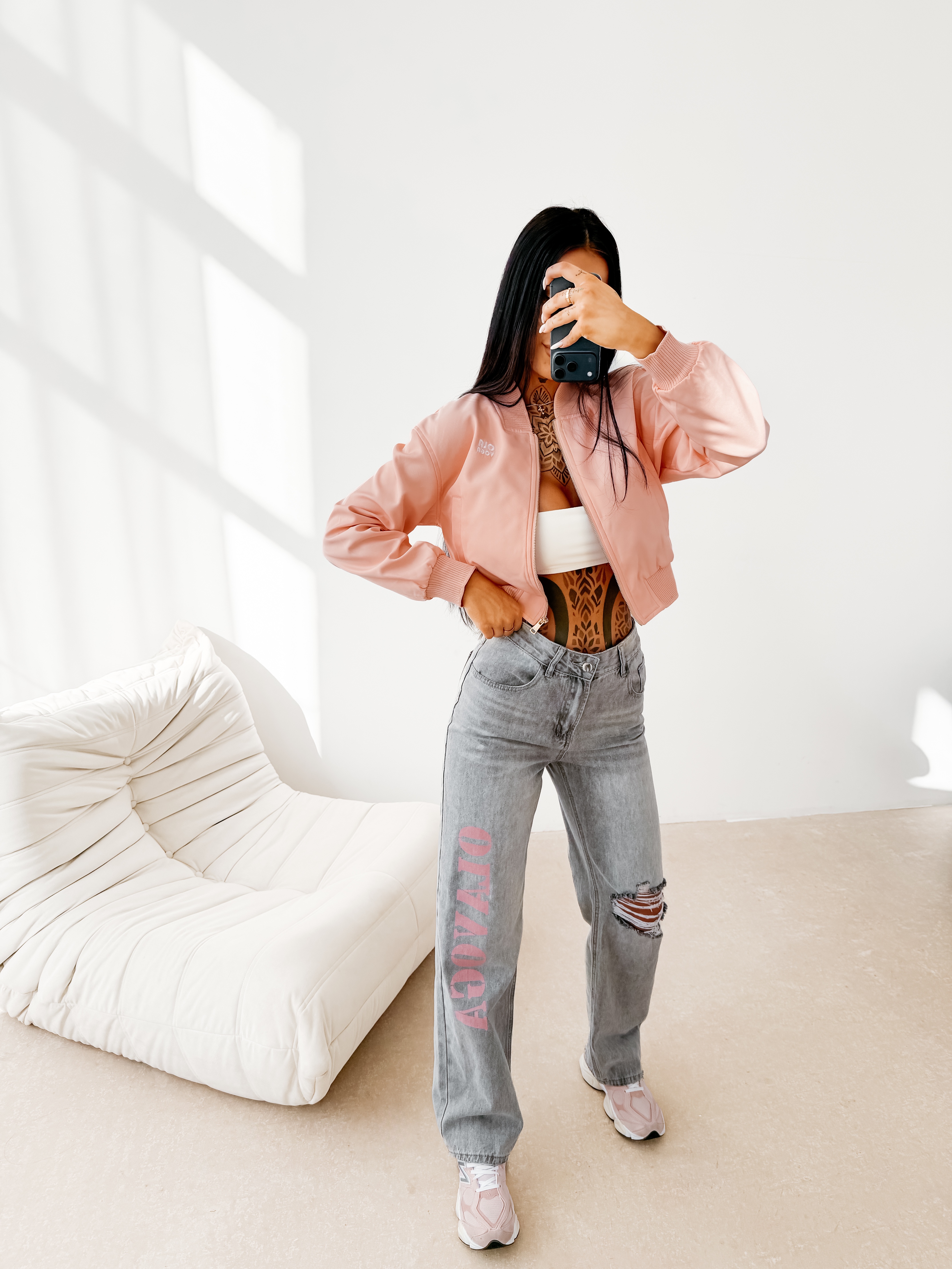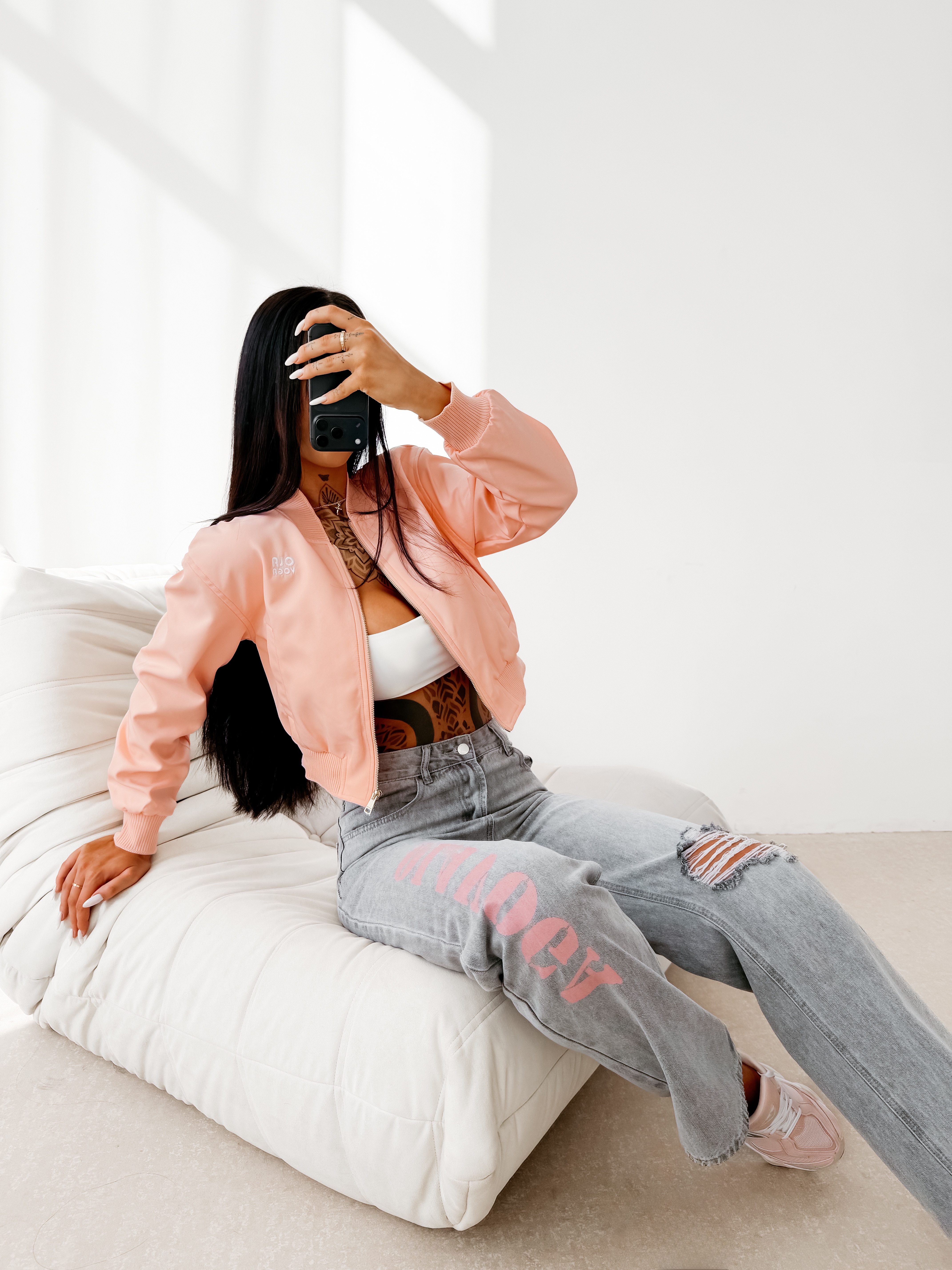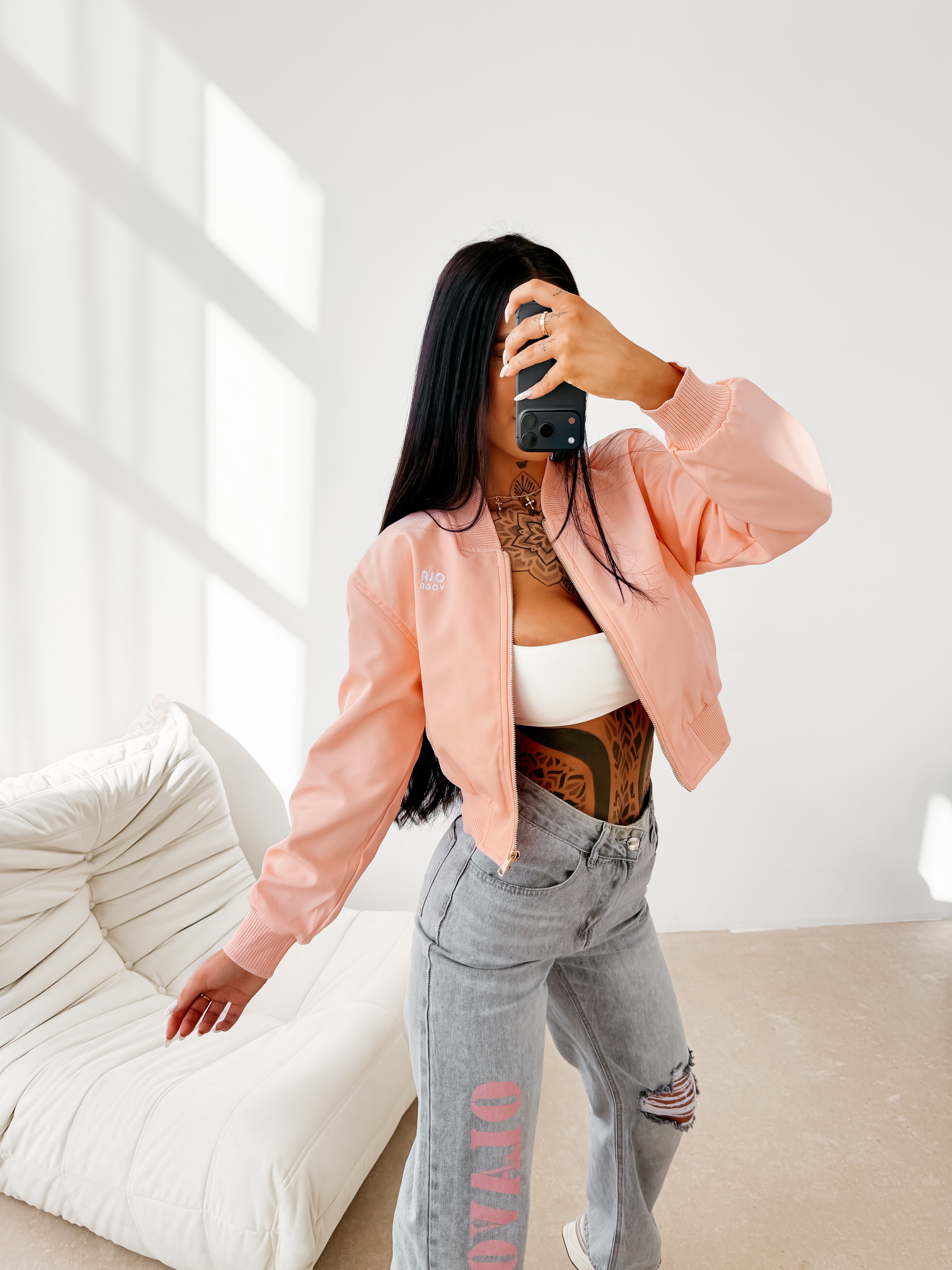 Bomberkowy krój - na podszewce - gładki lekko połyskujący materiał - zapinana na metalowy złoty suwak z logowanym pullerem - ściągacze przy rękawach, dole i przy stójce - subtelne haftowane logo na przodzie - cięte kieszenie z wypustkami na przodzie