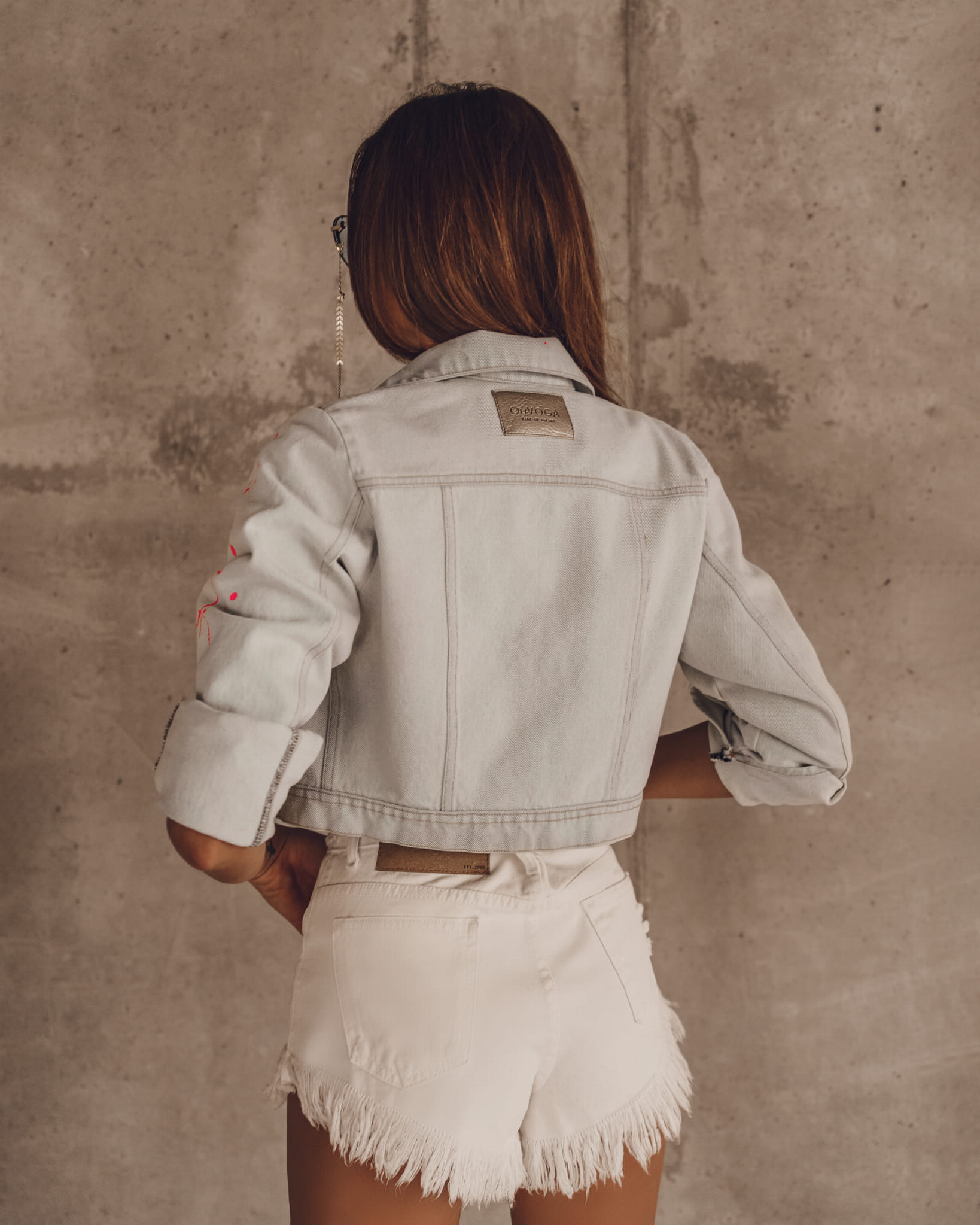 KURTKA DENIM SPLASHED NEON RÓŻ