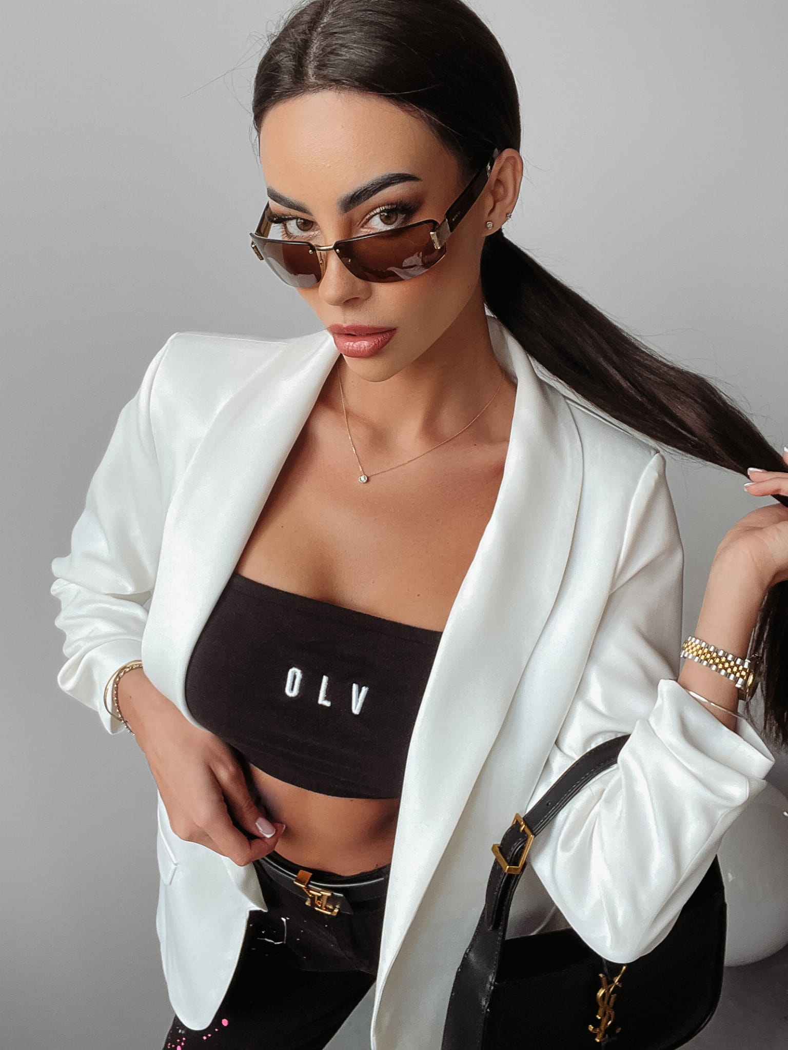Gładka, prosta marynarka – model o luźnym kroju z marszczonymi rękawami. Model uszyty na podszewce z dbałością o każdy detal. Sportowa elegancja w minimalistycznym wydaniu.