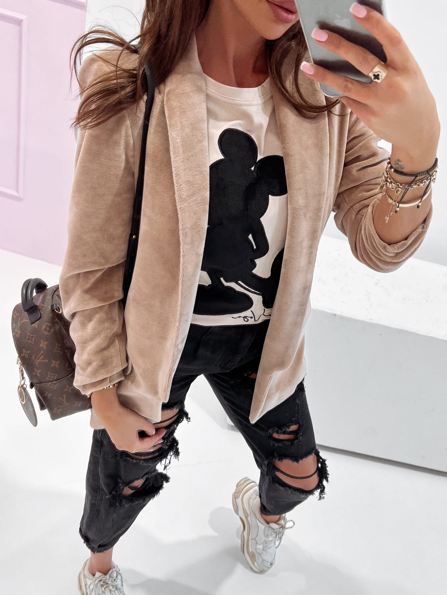 Prosta klasyczna marynarka „CLASSY” wykonana z weluru. Uniwersalny krój, w połączeniu z nietuzinkowym materiałem tworzą bardzo ciekawą całość. Dostępna zarówno w klasycznych, jak i energetycznych kolorach.