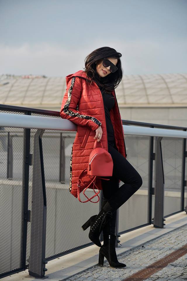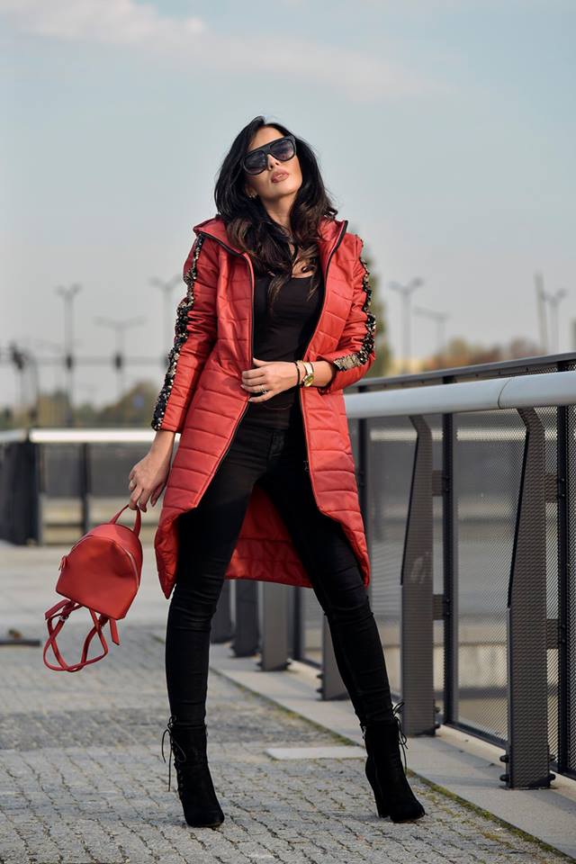PŁASZCZ NEW CEKIN LEATHER CZERWONY