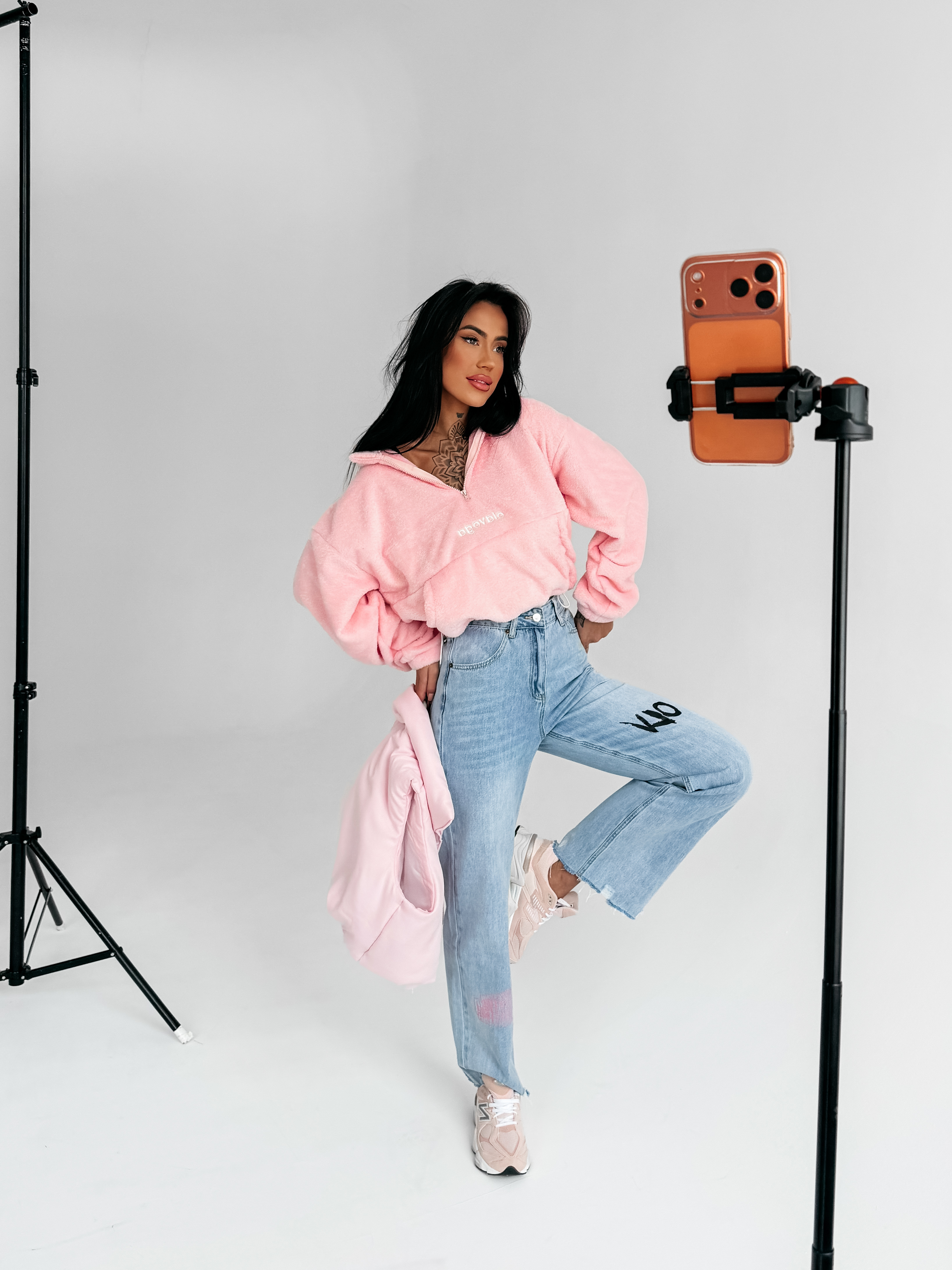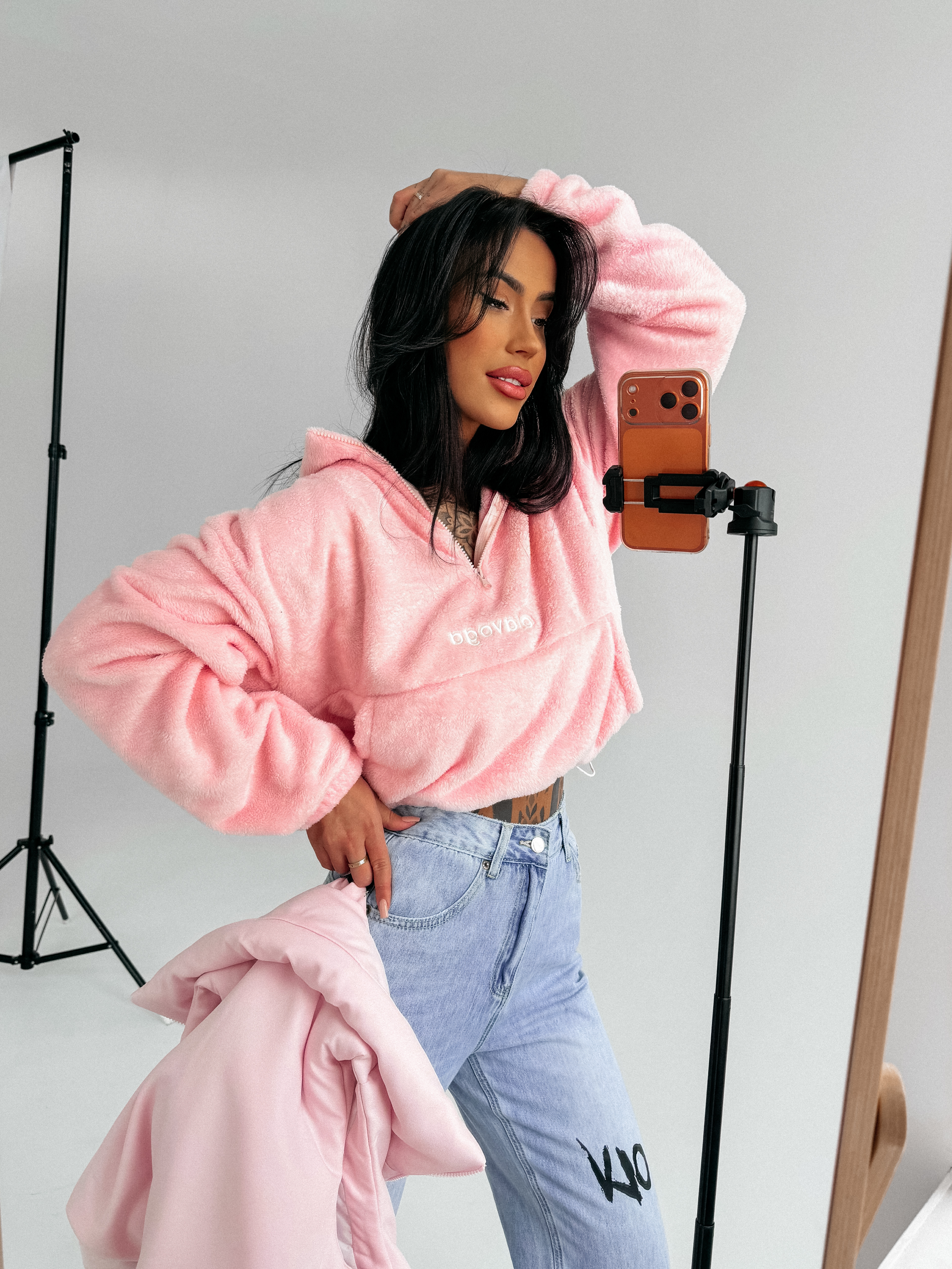 Casualowa bluza bez kaptura, typu fleece z krótkim zamkiem to. Model wykonany z wyjątkowo miękkiego, puszystego materiału typu teddy. Klasyczny, lekko skrócony krój. Stójka z krótkim zamkiem umożliwia regulację dekoltu. Na przodzie subtelne, haftowane logo marki OLAVOGA. Praktyczna kieszeń typu kangurka. Rękawy oraz dół wykończone elastycznymi ściągaczami.