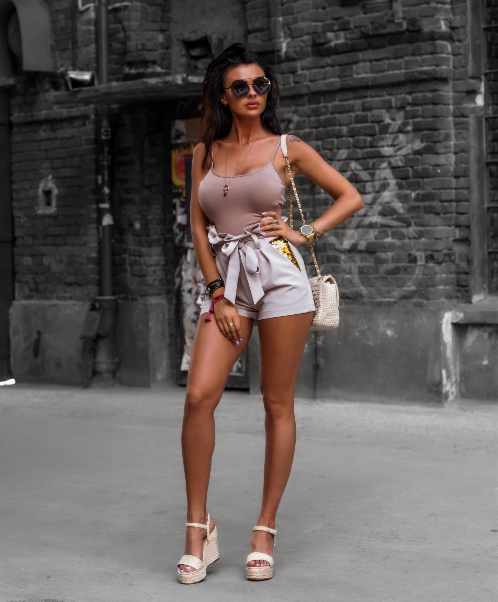 SPODENKI SEQUINS BEŻOWE