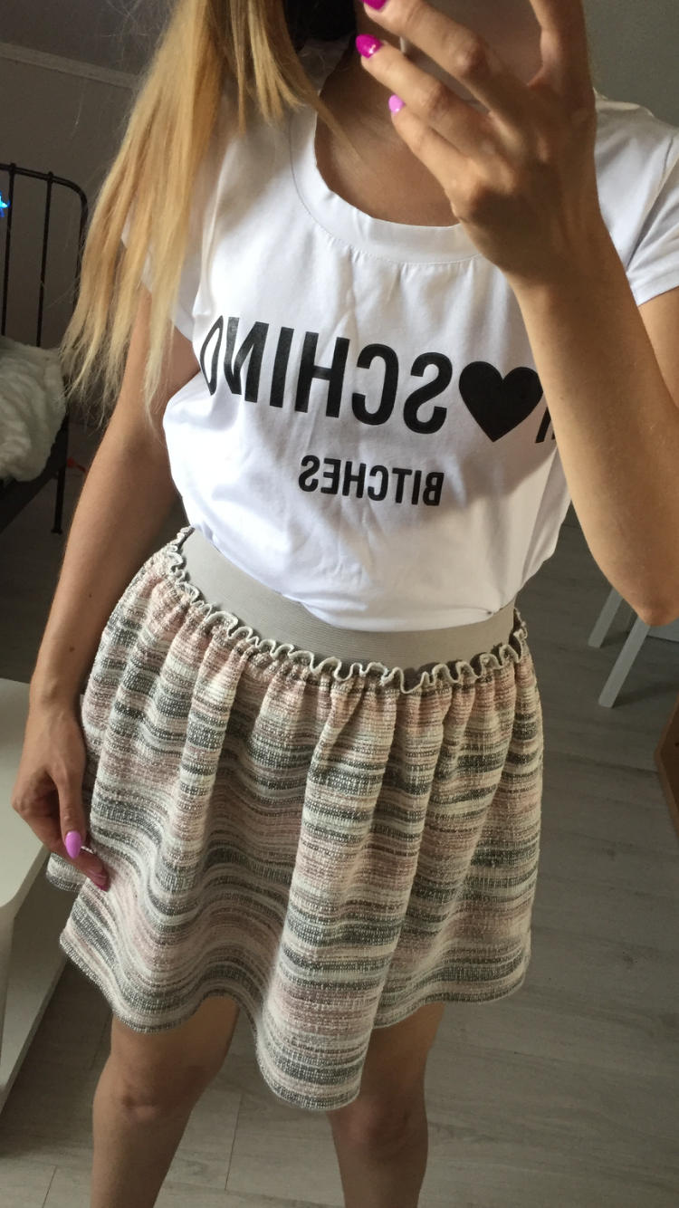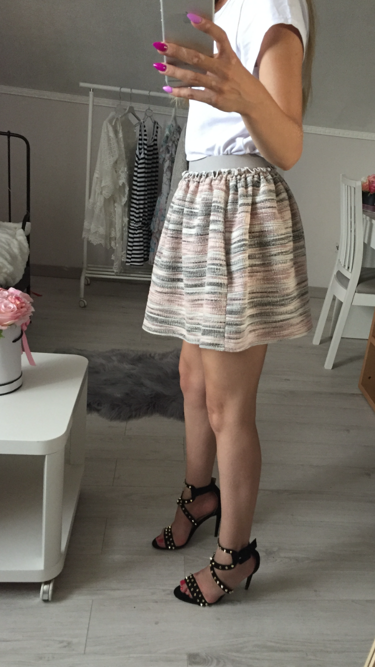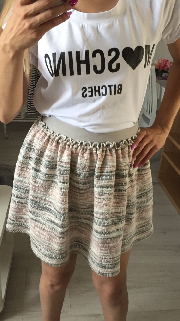 W pasie gumka. Spódnica posiada boczne kieszenie.