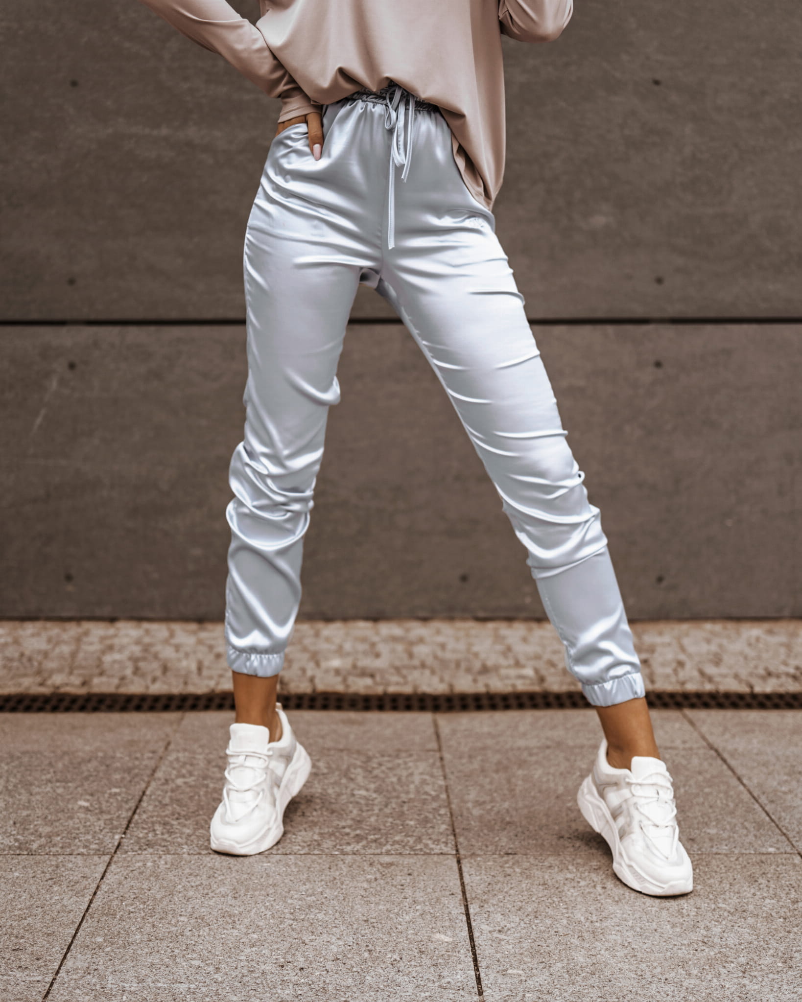 SPODNIE COMFORTABLE SATIN SREBRNY