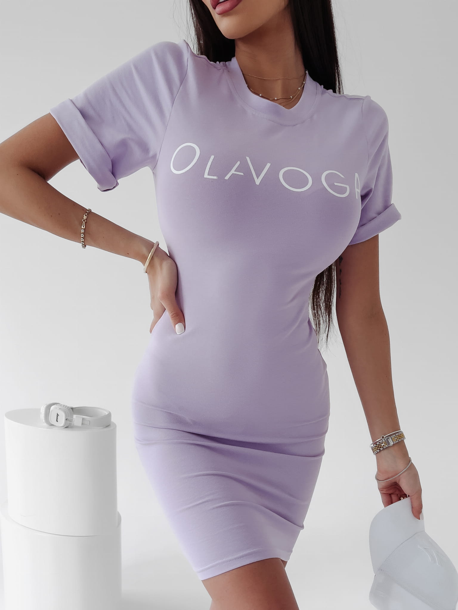 Sportowa, swobodna sukienka uszyta z miękkiej, bawełnianej dzianiny. Wyjątkowo wygodny, prosty krój, dekolt ze ściągaczem, bez podszewki. Na przodzie biały nadruk logo OLAVOGA.