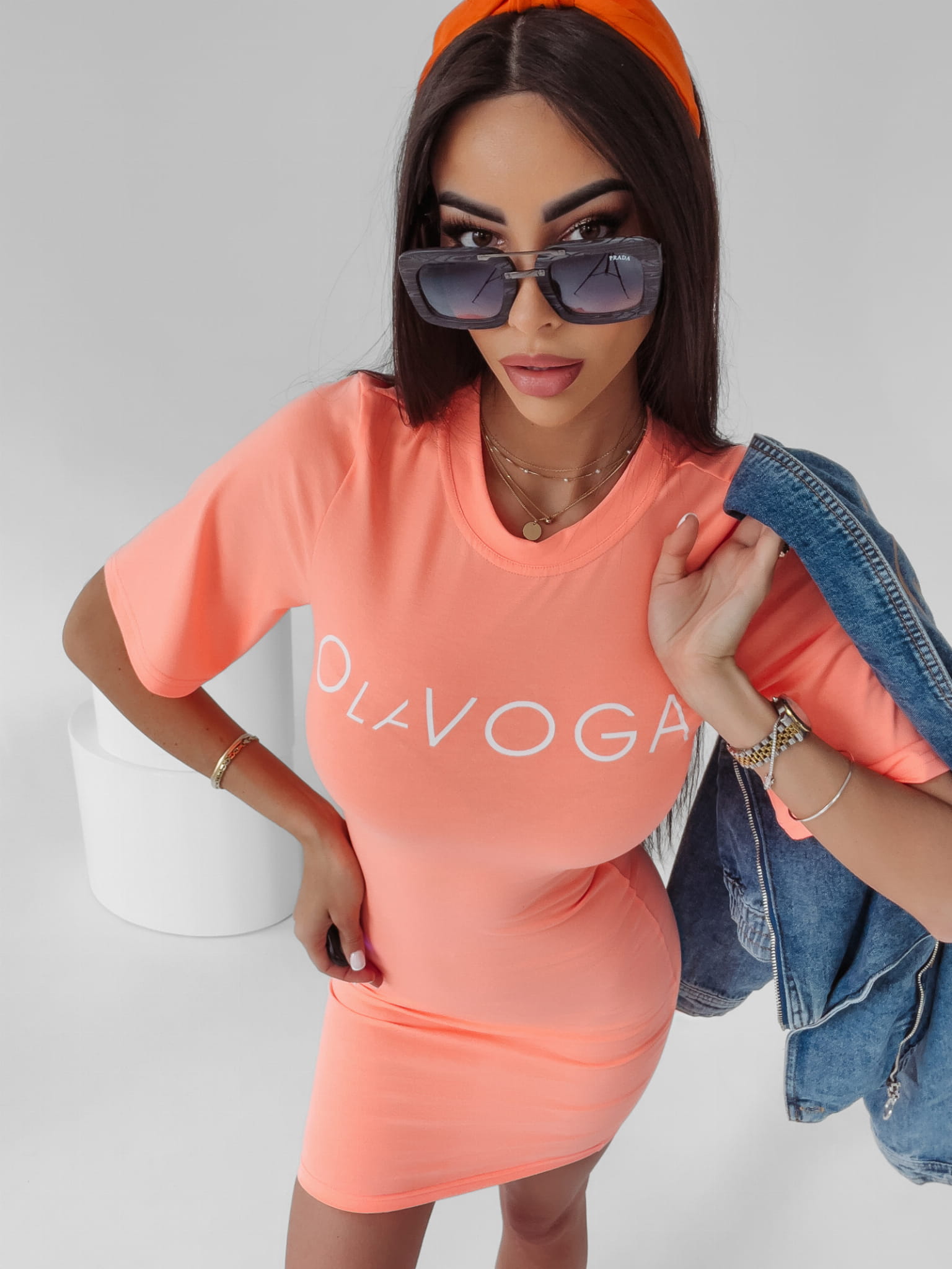 Sportowa, swobodna sukienka uszyta z miękkiej, bawełnianej dzianiny. Wyjątkowo wygodny, prosty krój, dekolt ze ściągaczem, bez podszewki. Na przodzie biały nadruk logo OLAVOGA.